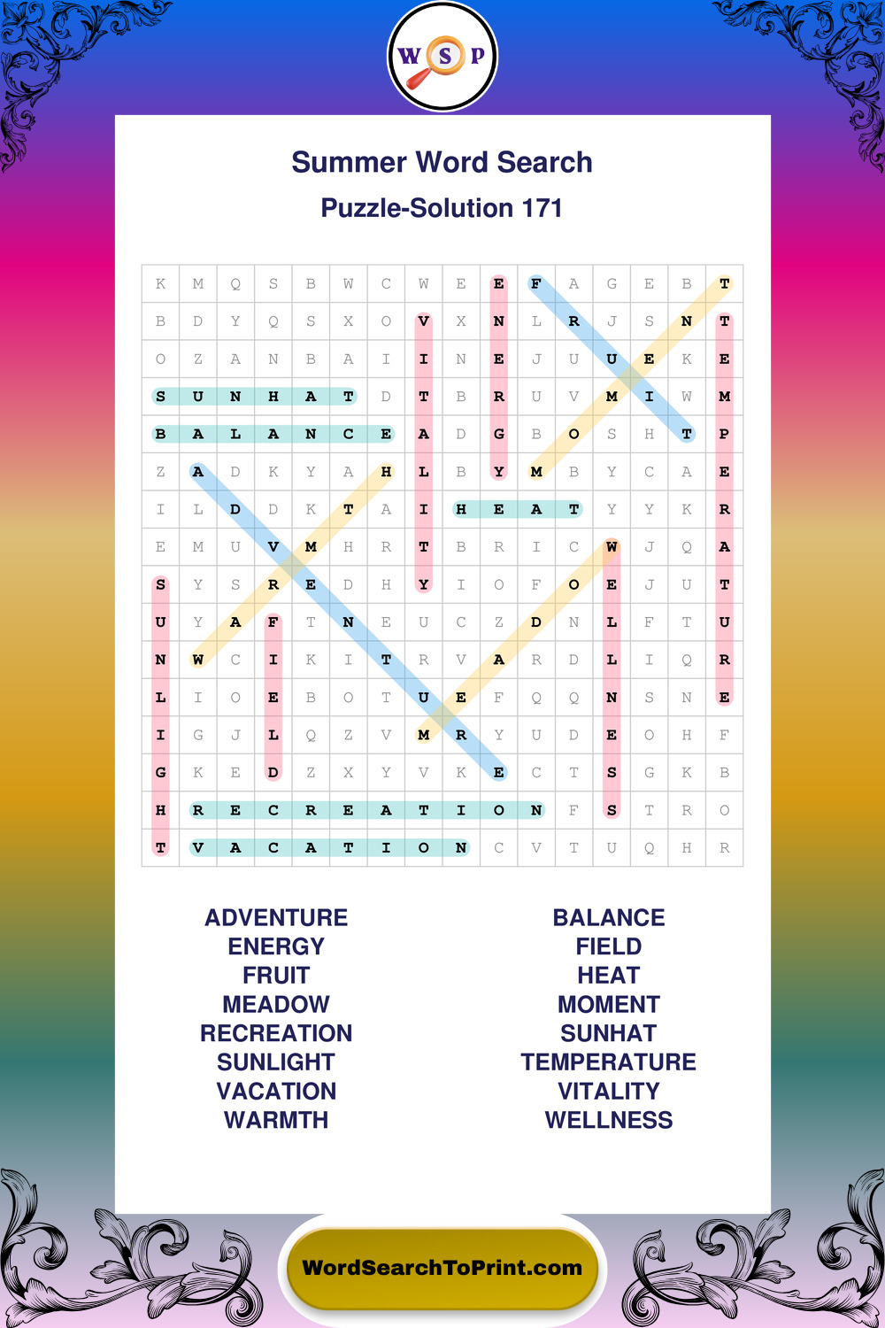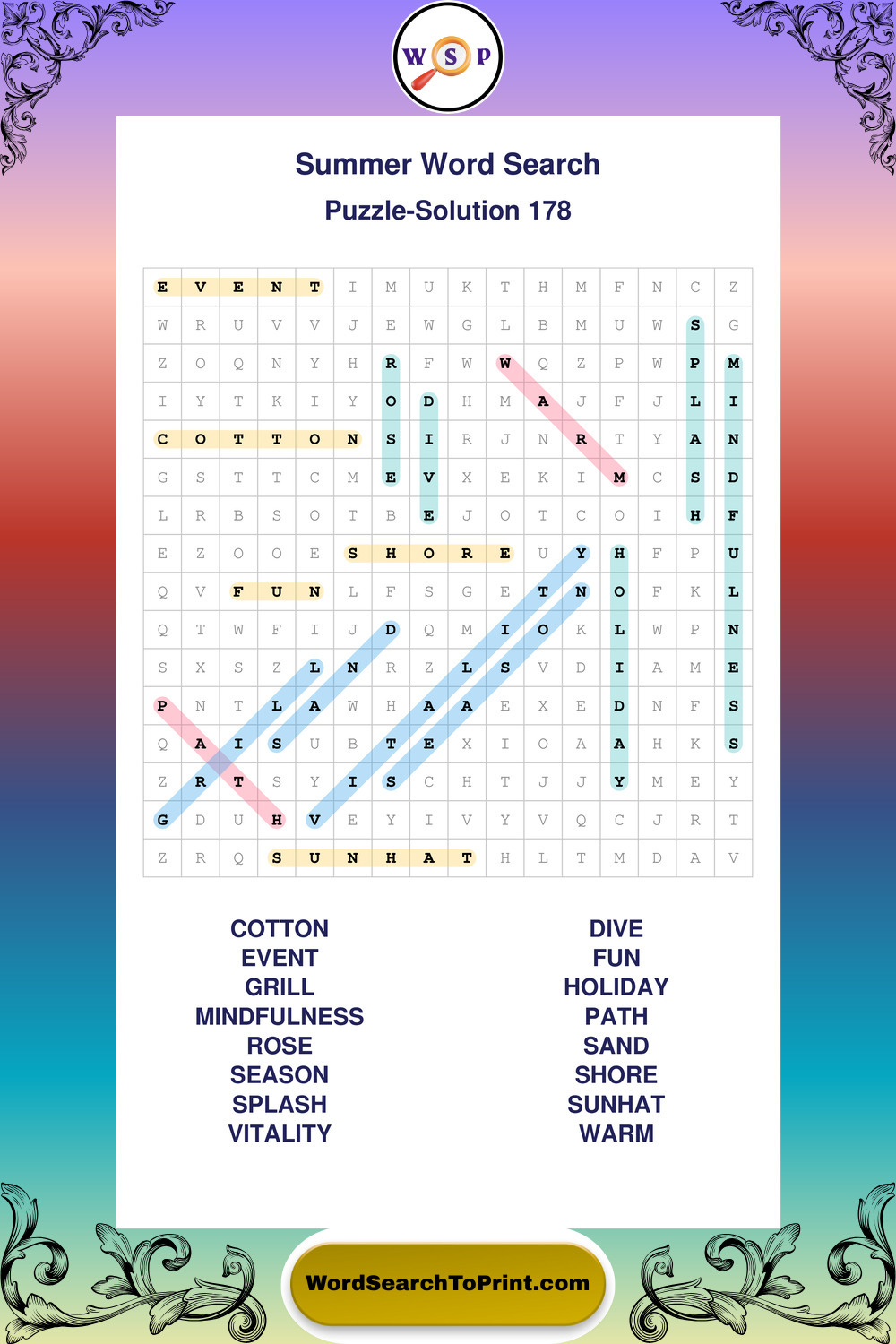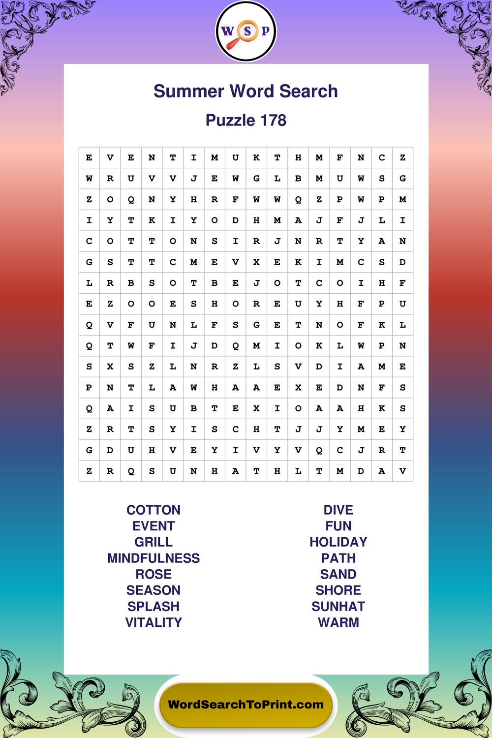 Printable Summer Wordsearch Puzzles