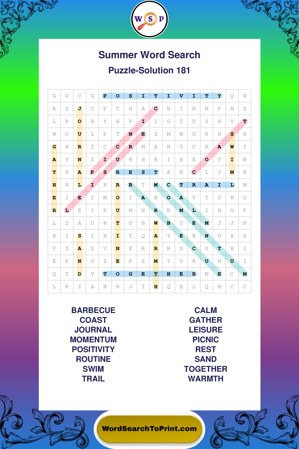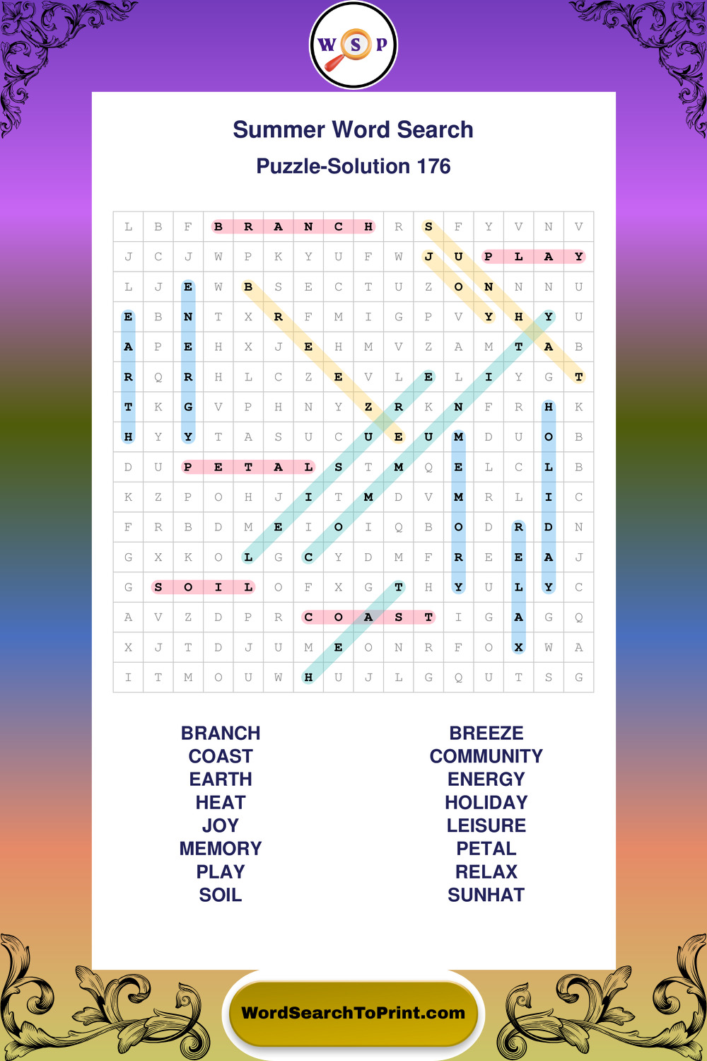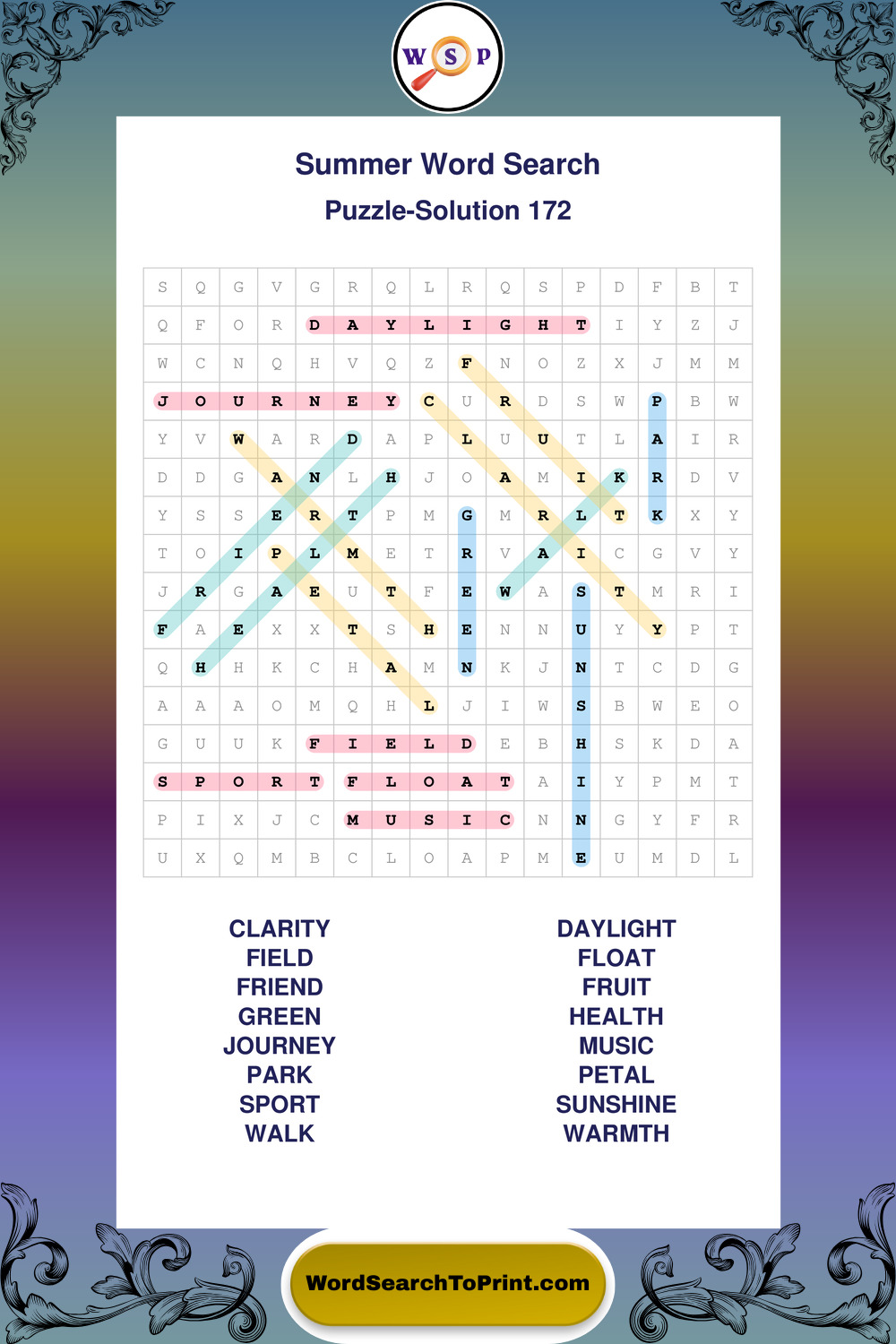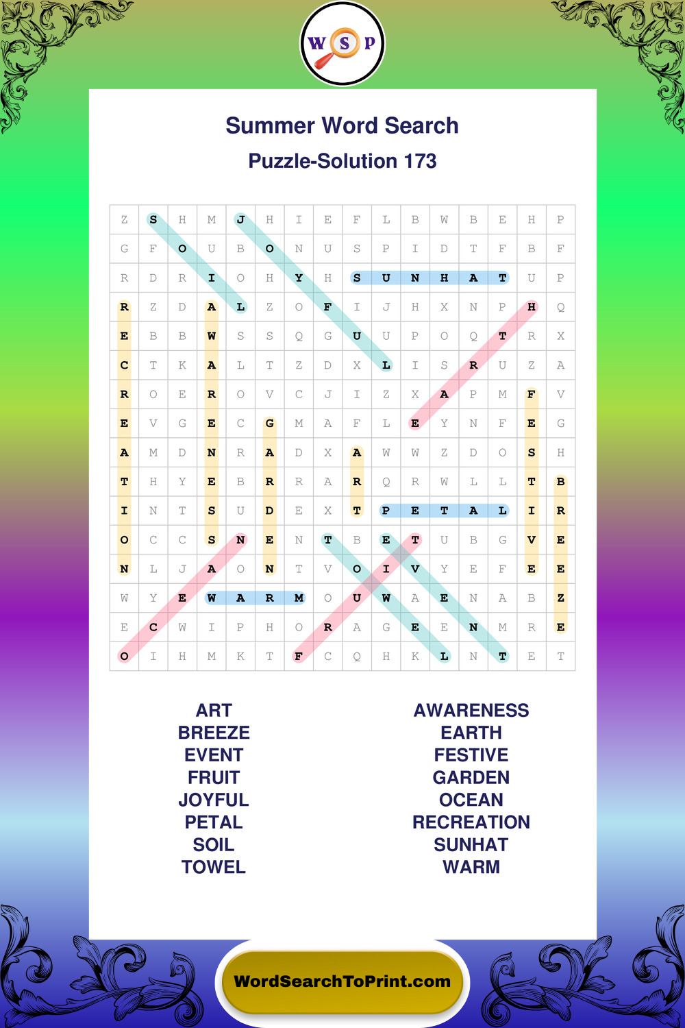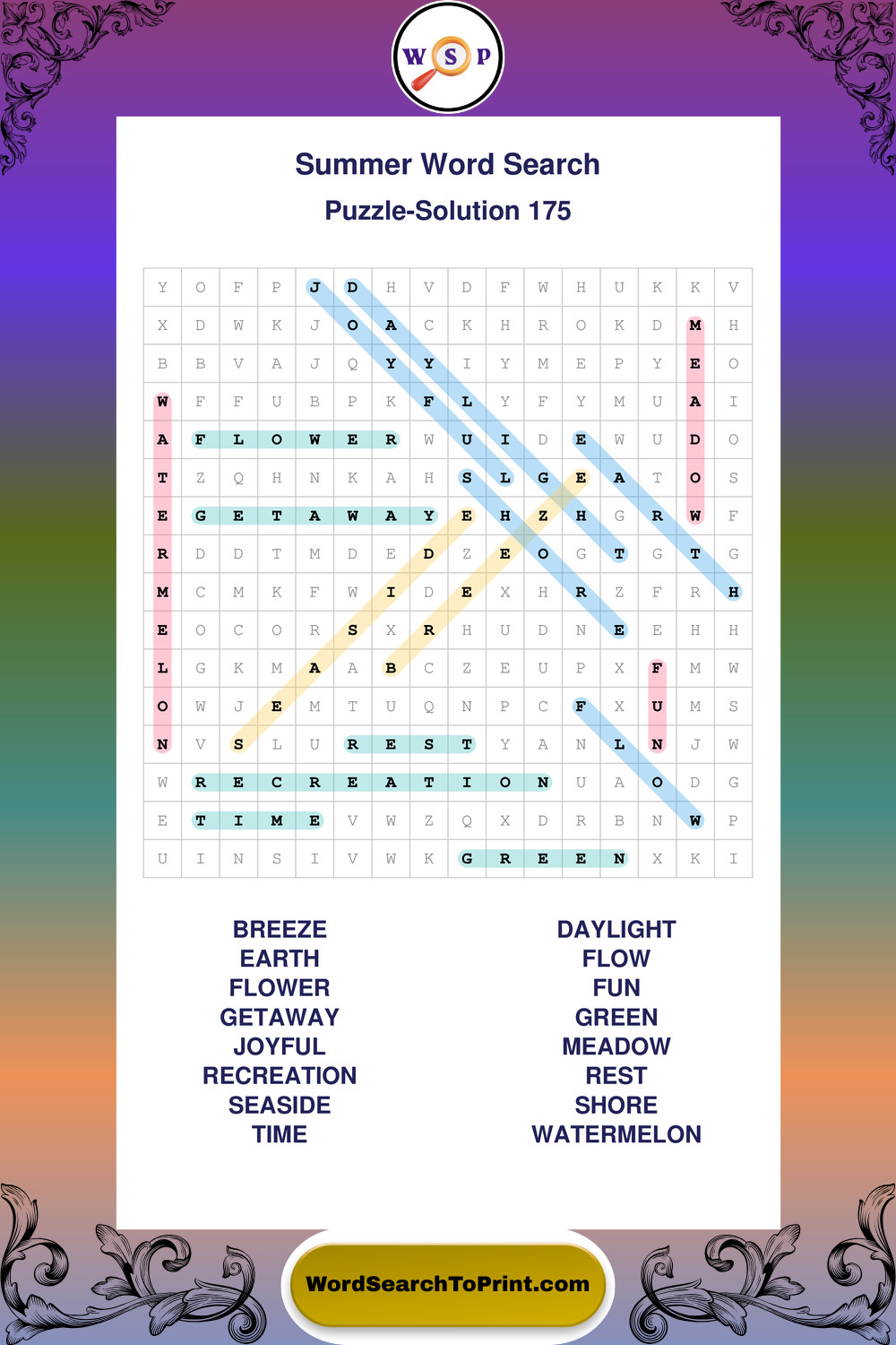 Browse large print Summer wordsearches created to support clear vision, steady concentration, and relaxed solving.