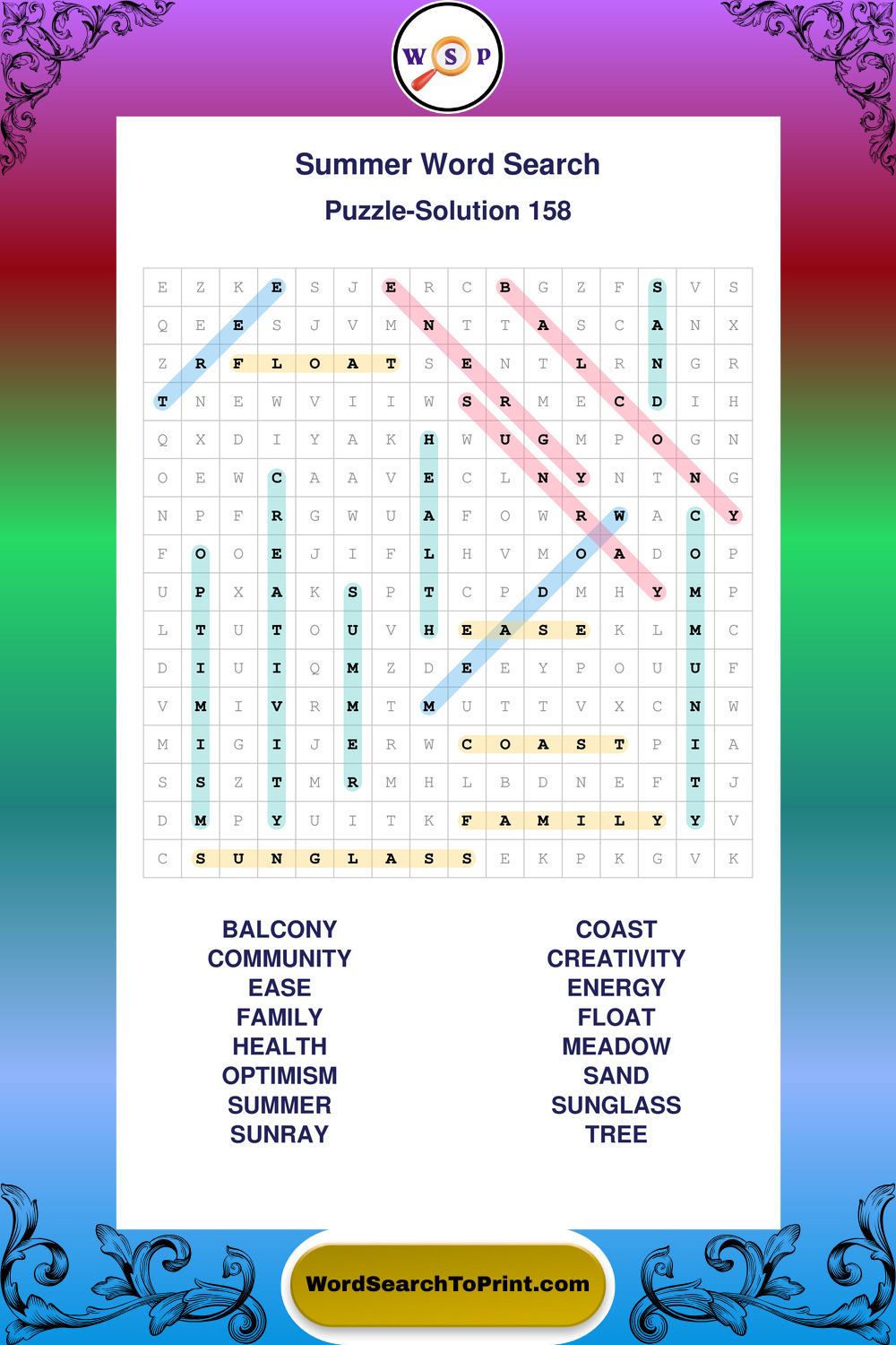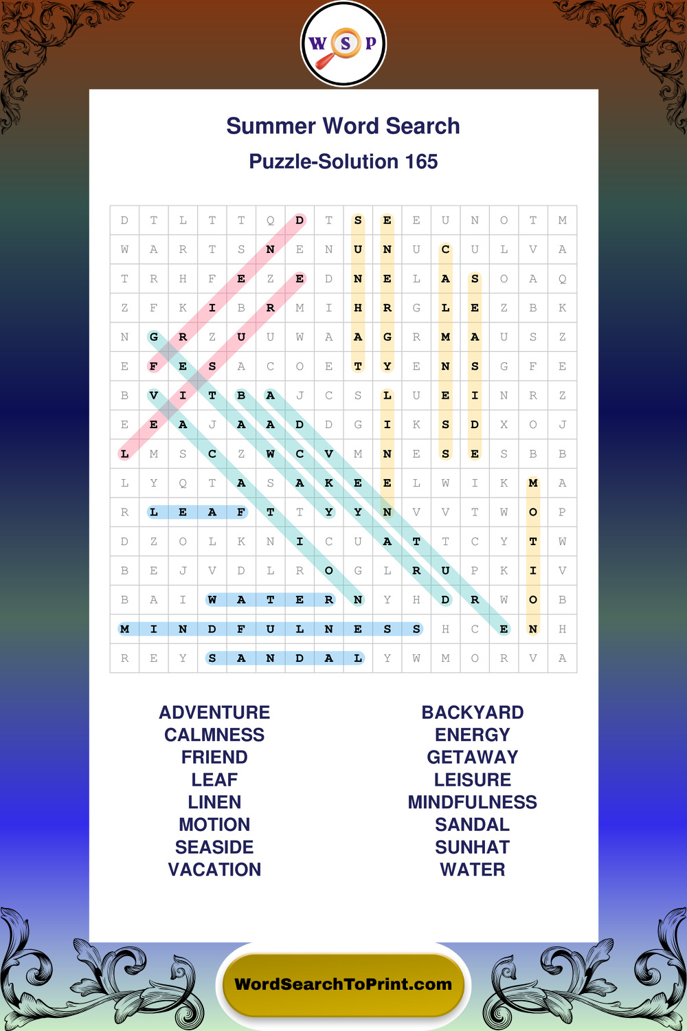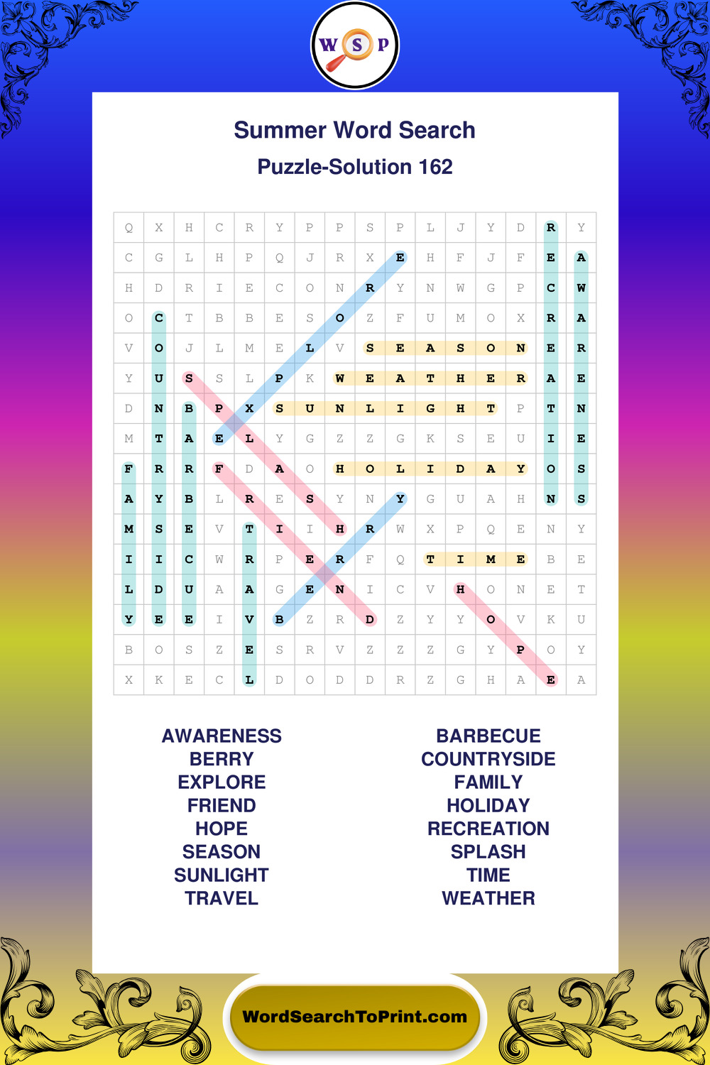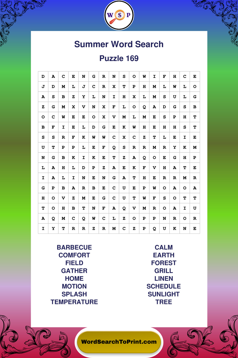 Browse large print Summer wordsearches created to support clear vision, steady concentration, and relaxed solving.
