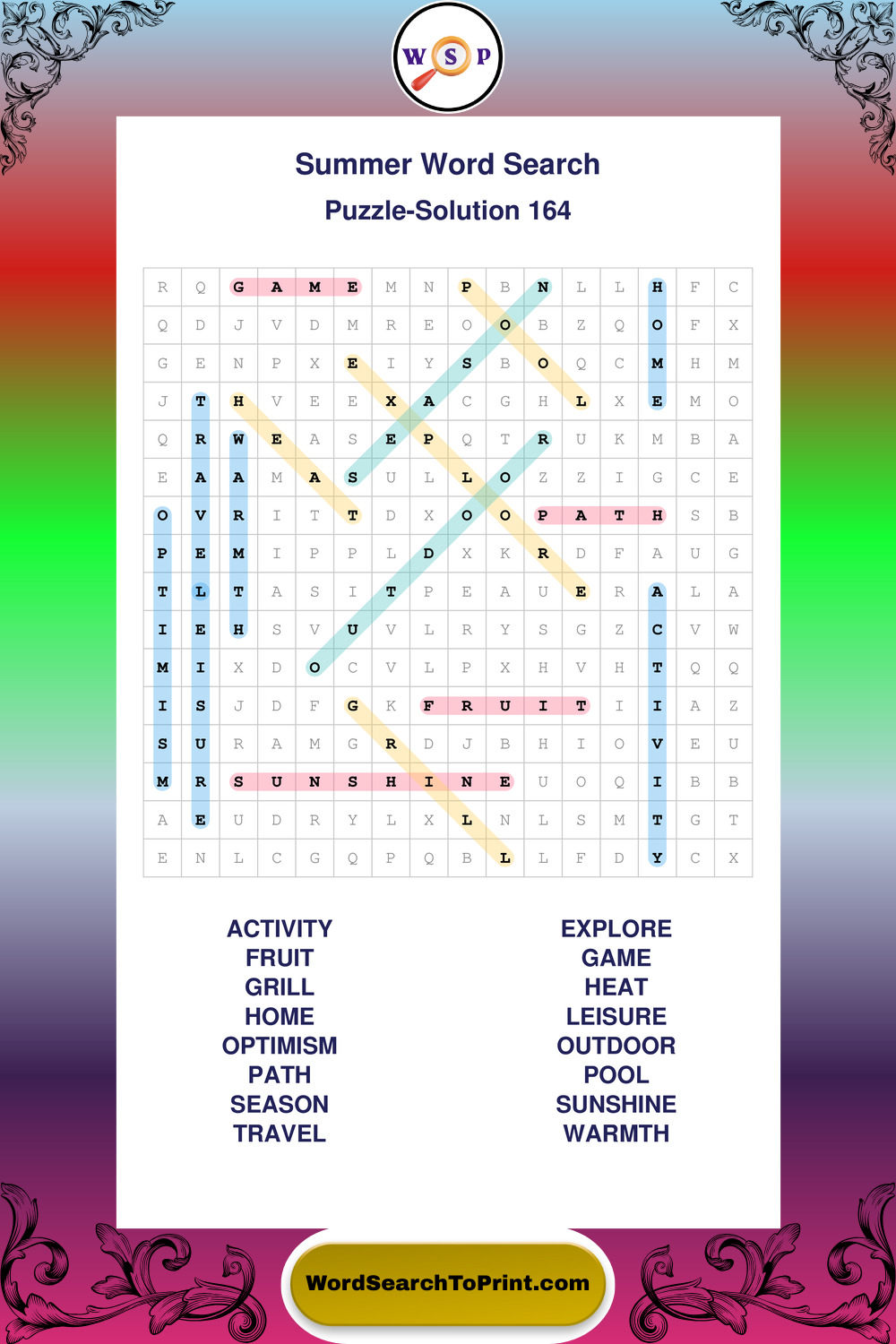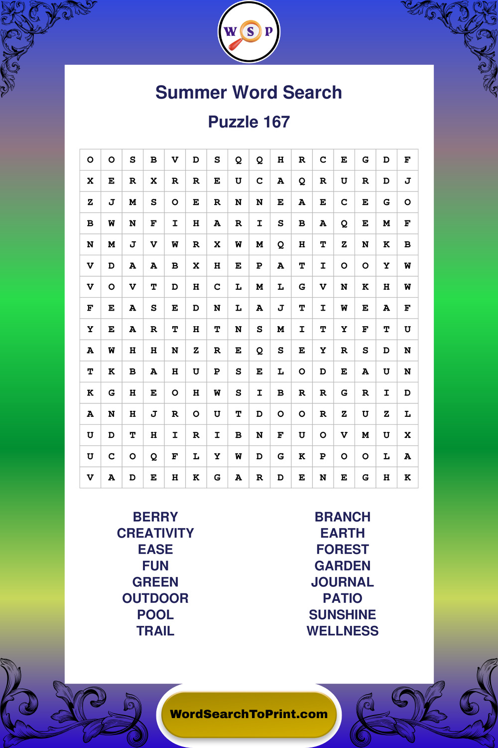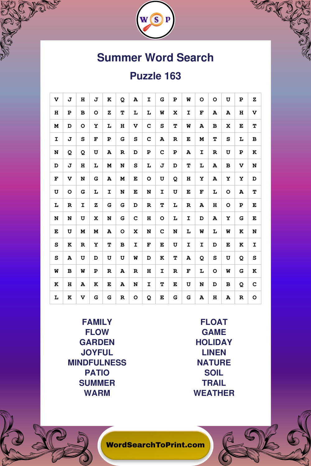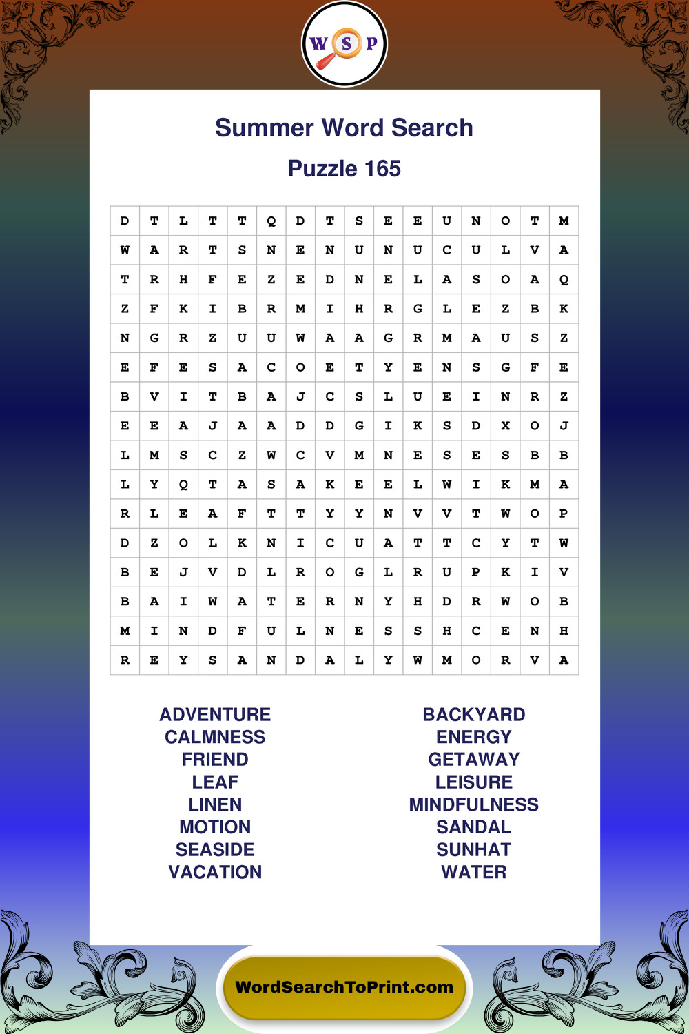 Browse large print Summer wordsearches created to support clear vision, steady concentration, and relaxed solving.