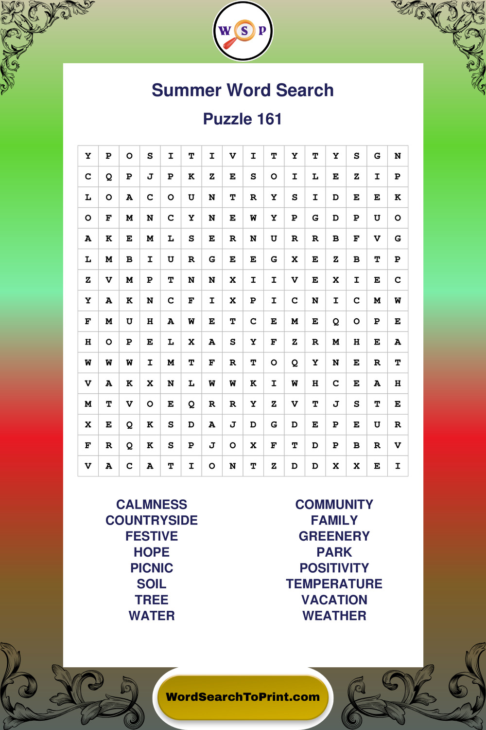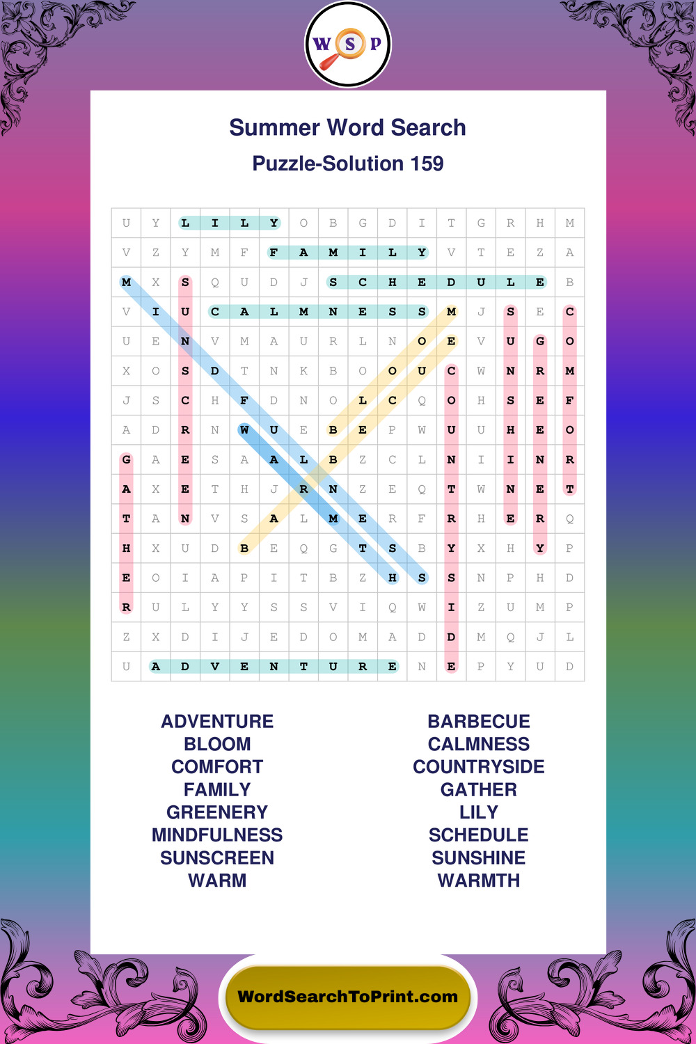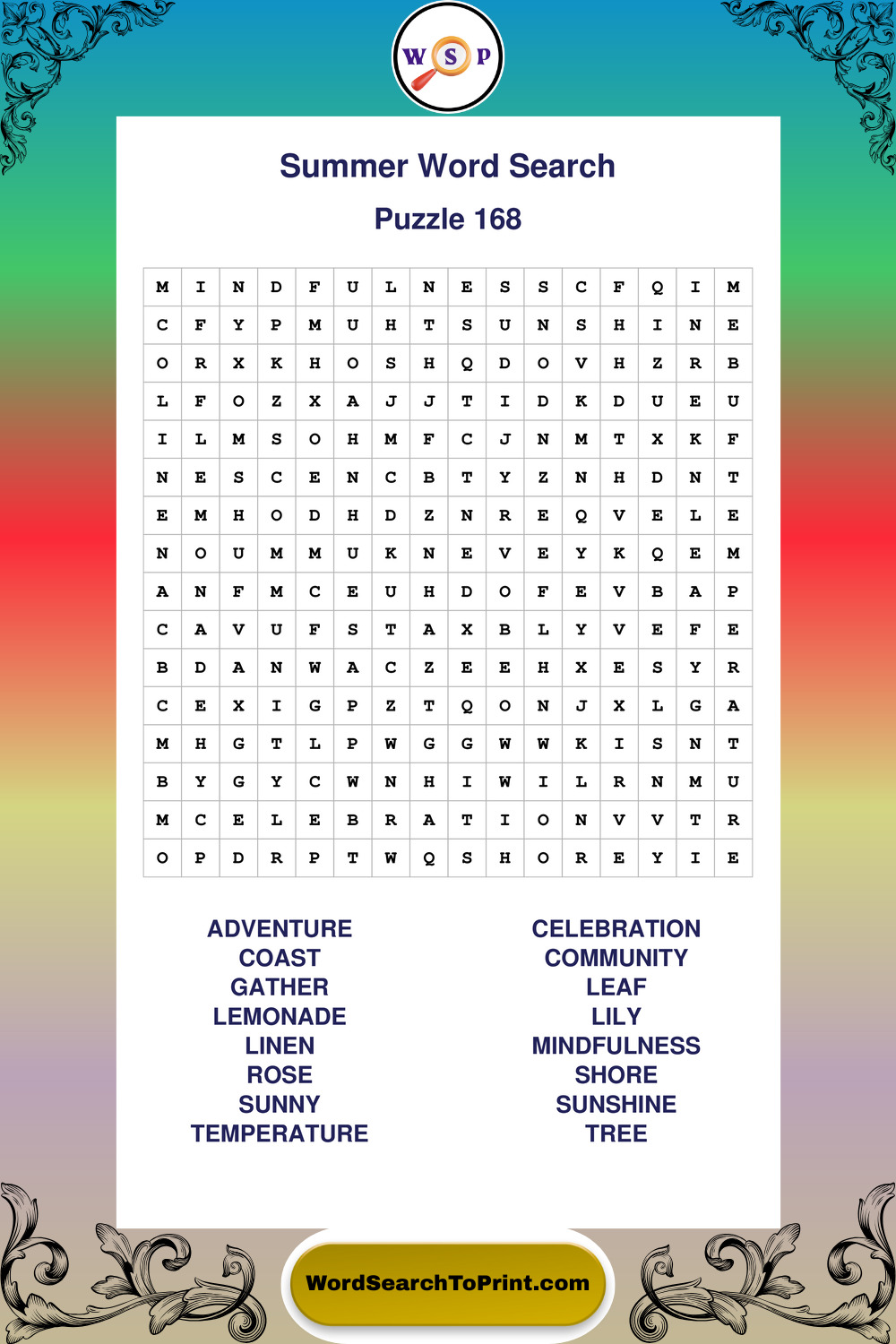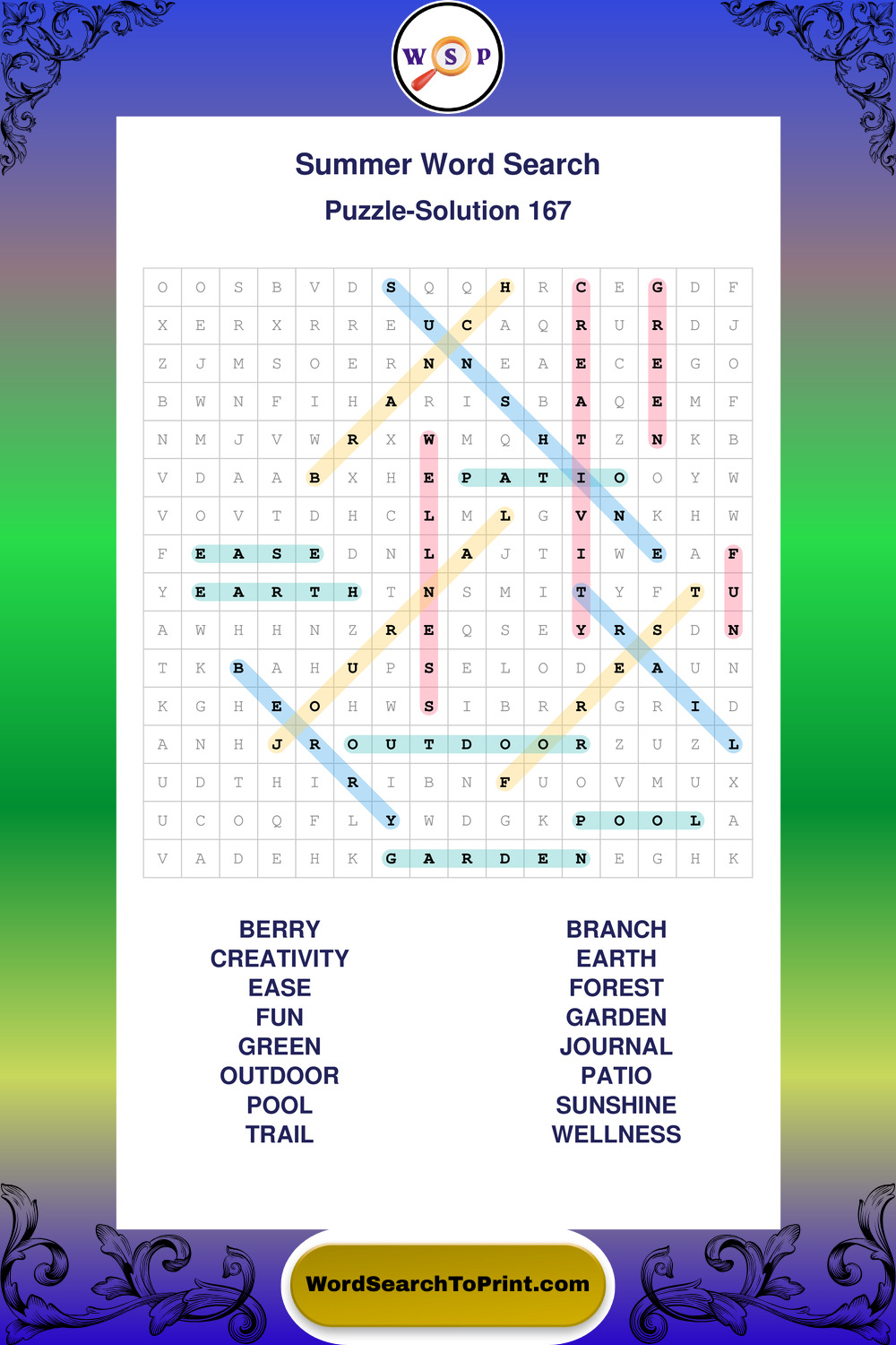 Browse large print Summer wordsearches created to support clear vision, steady concentration, and relaxed solving.