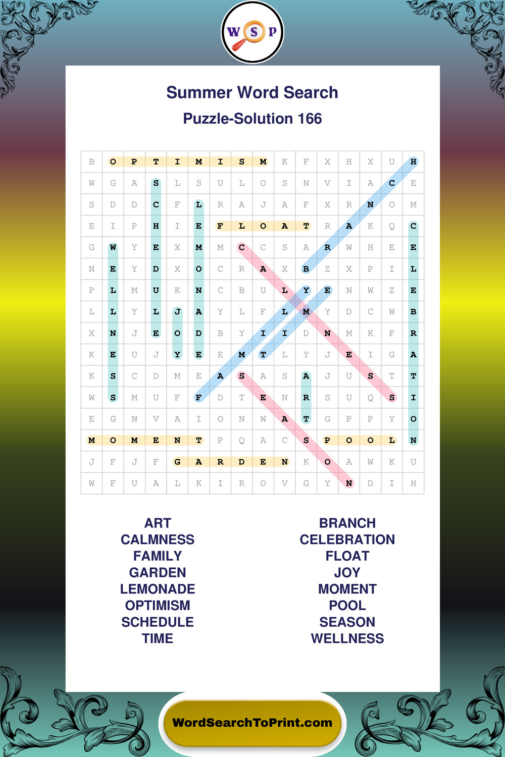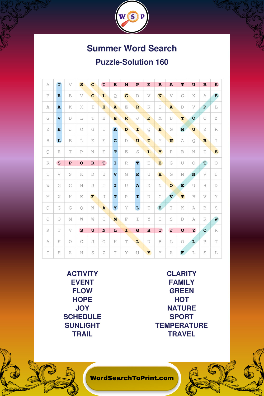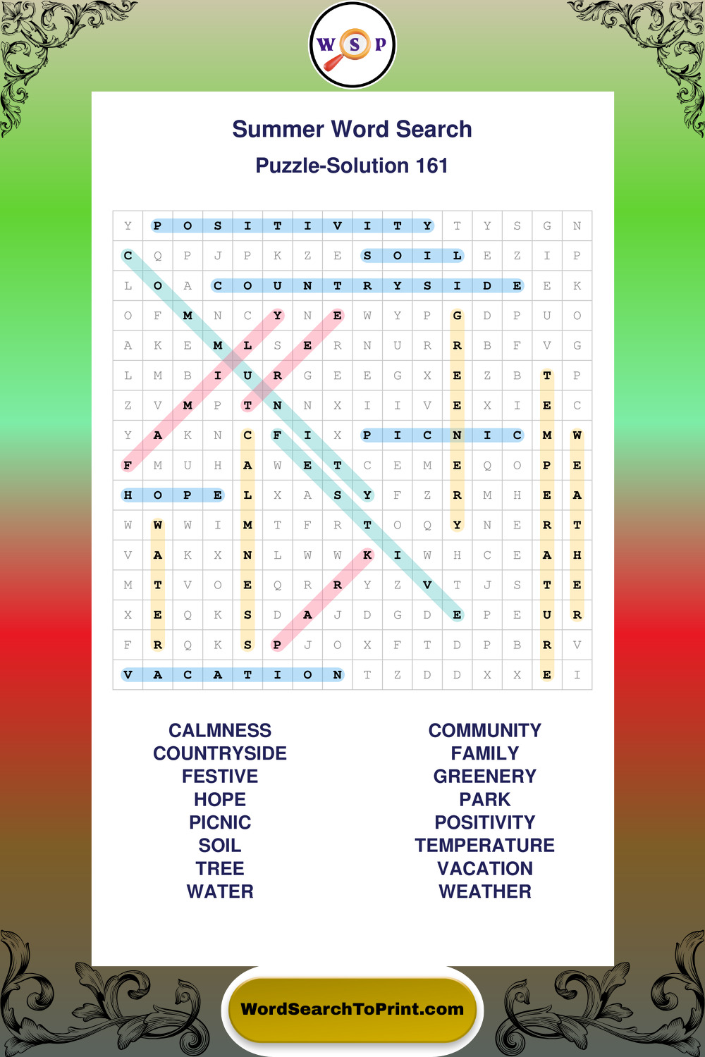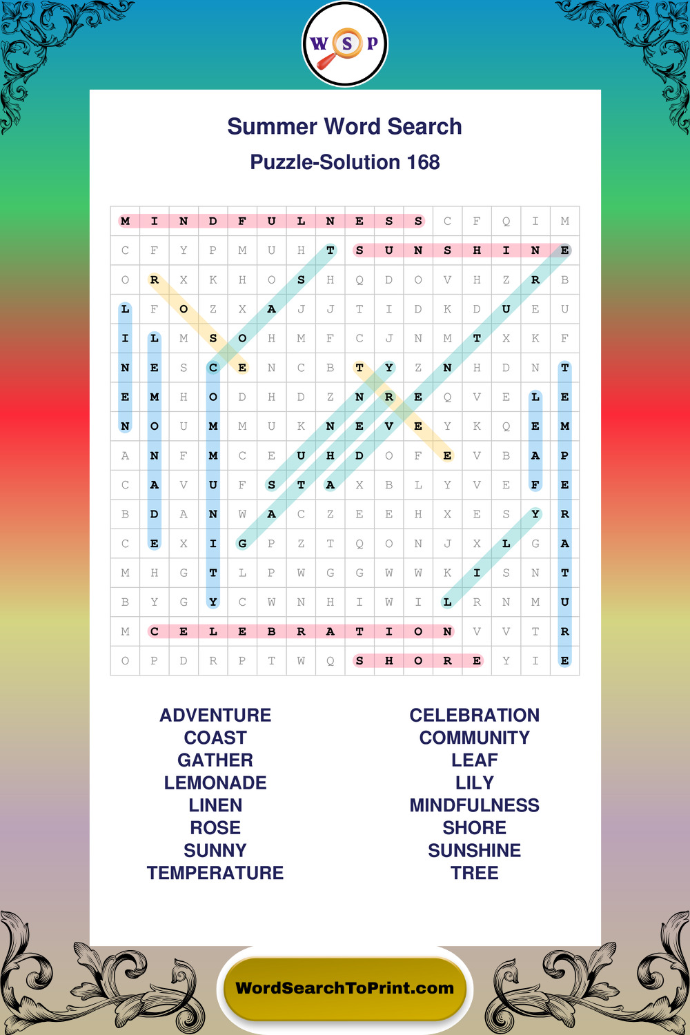 Browse large print Summer wordsearches created to support clear vision, steady concentration, and relaxed solving.