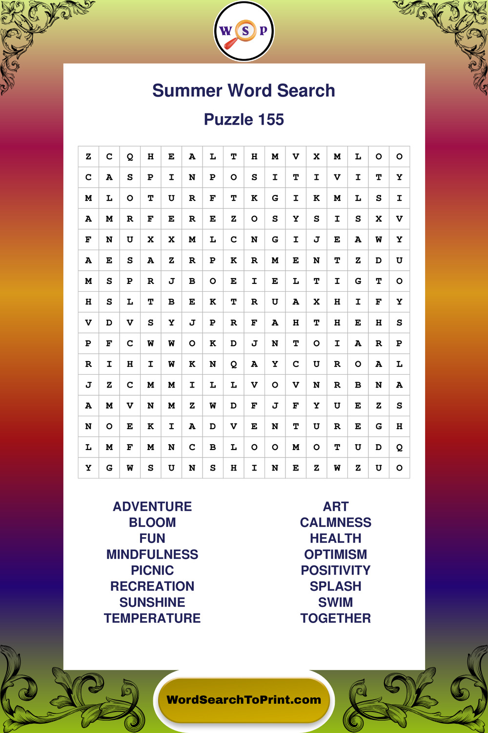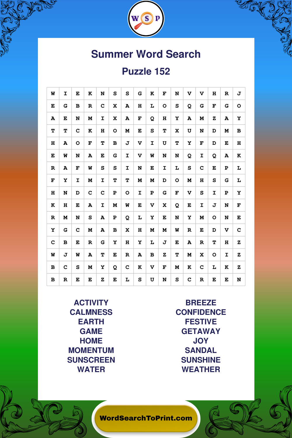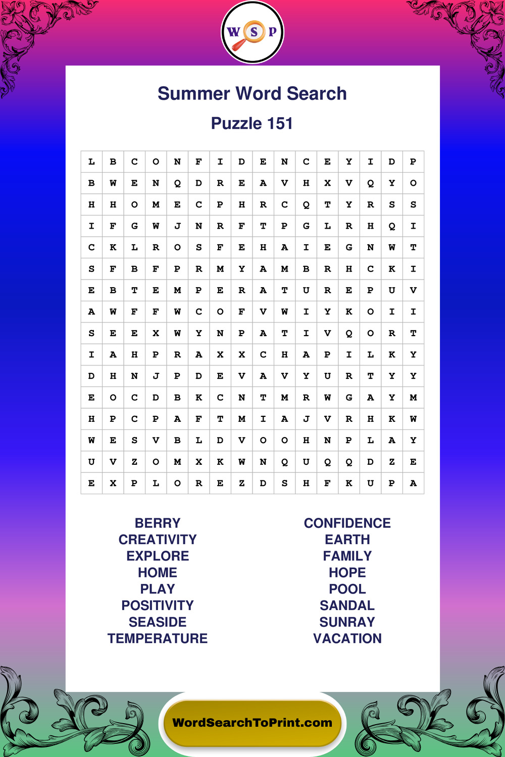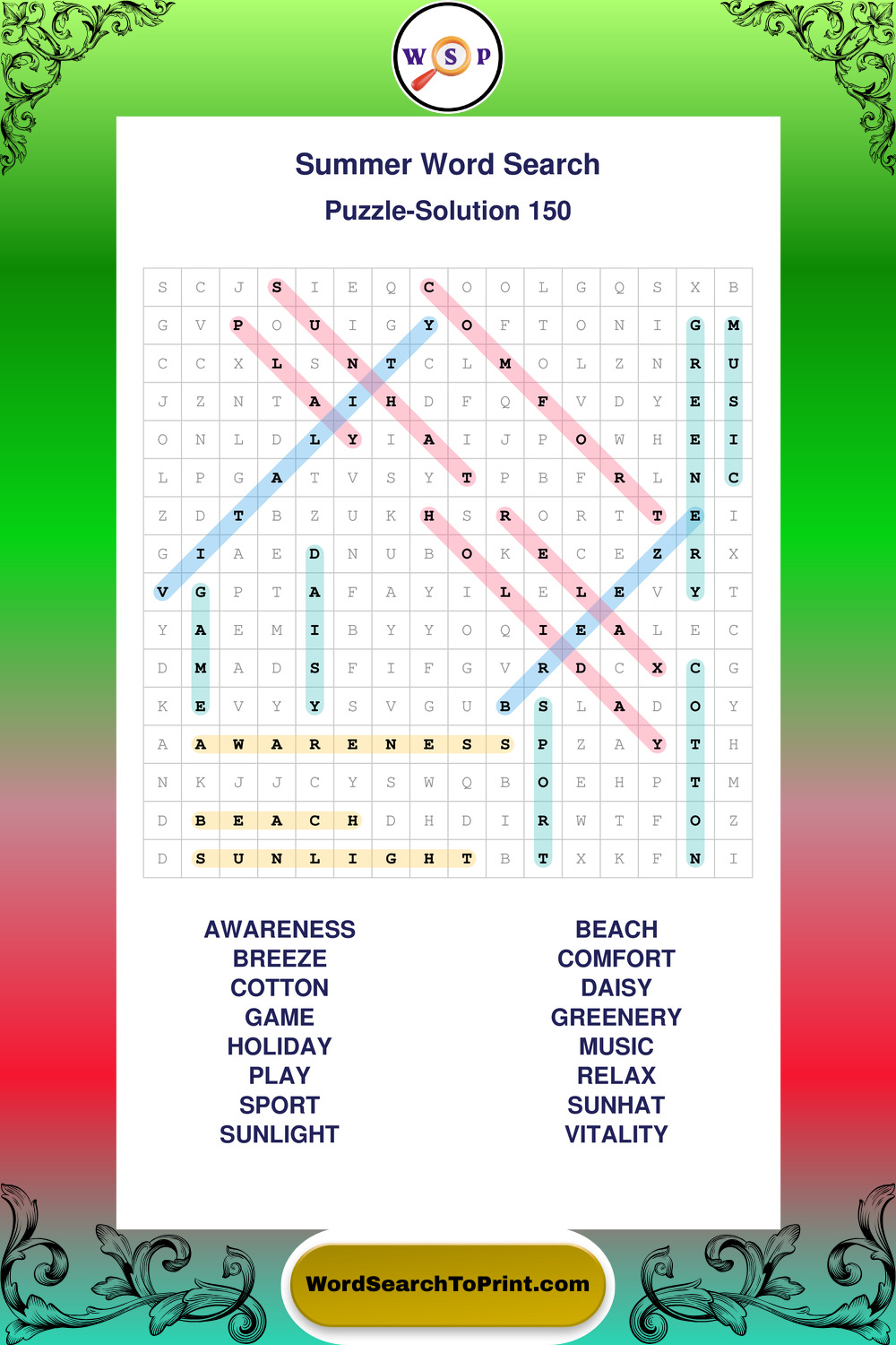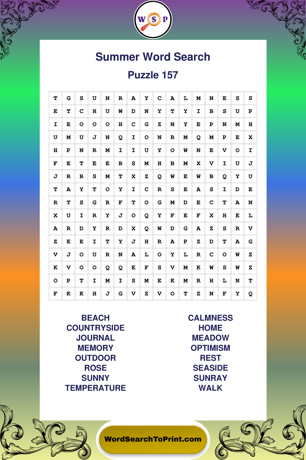 Browse large print Summer wordsearches created to support clear vision, steady concentration, and relaxed solving.