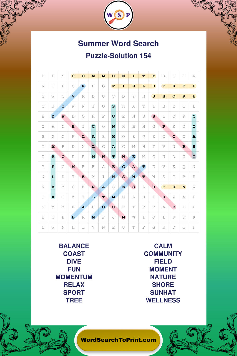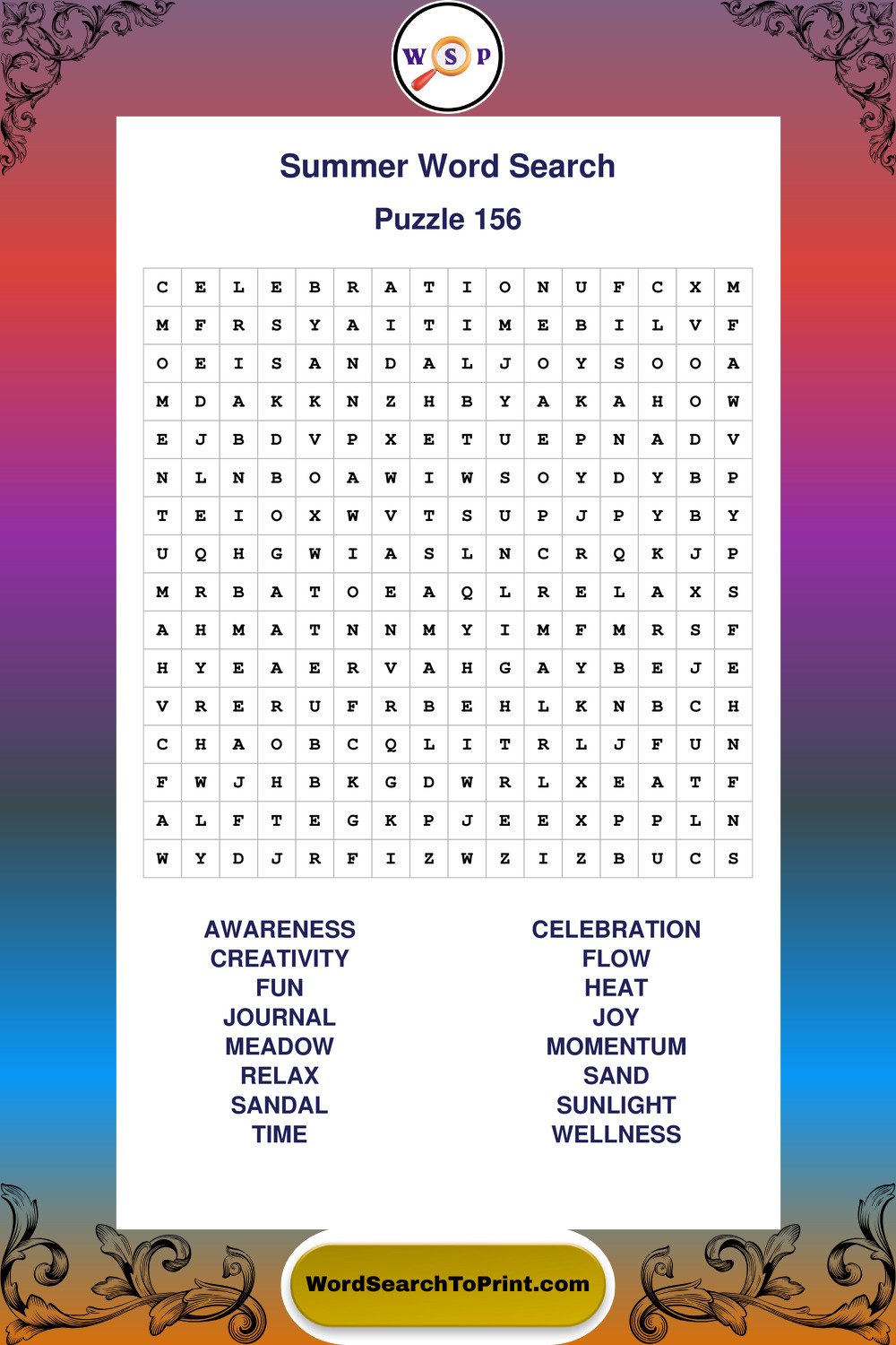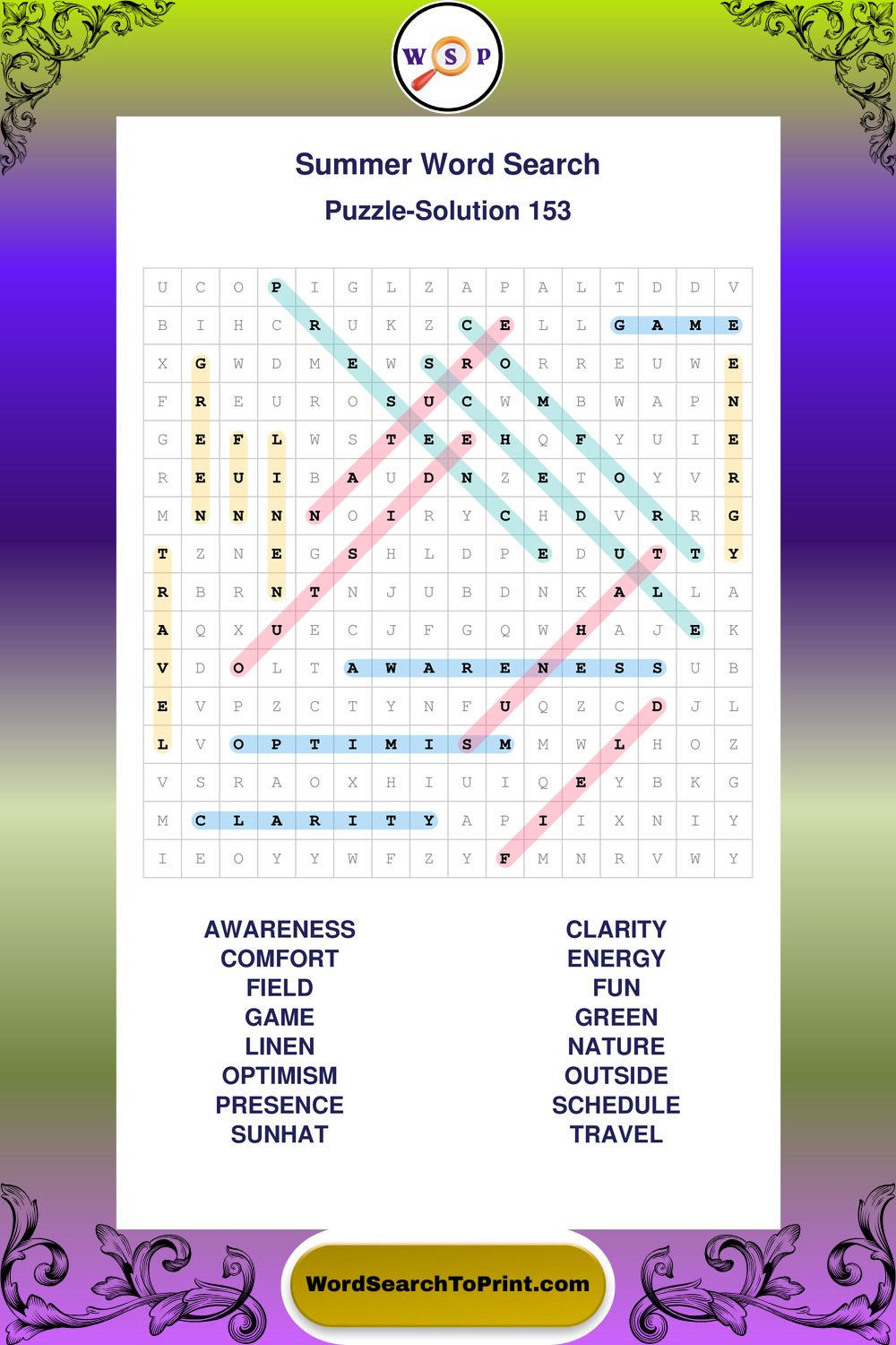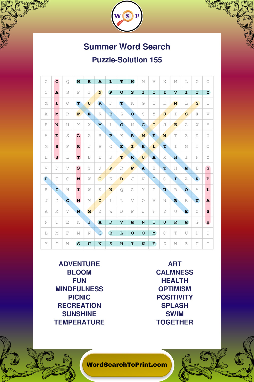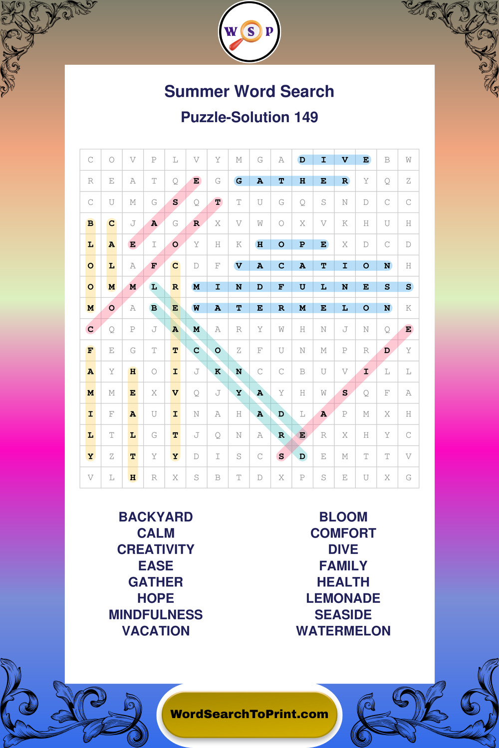 Browse large print Summer wordsearches created to support clear vision, steady concentration, and relaxed solving.