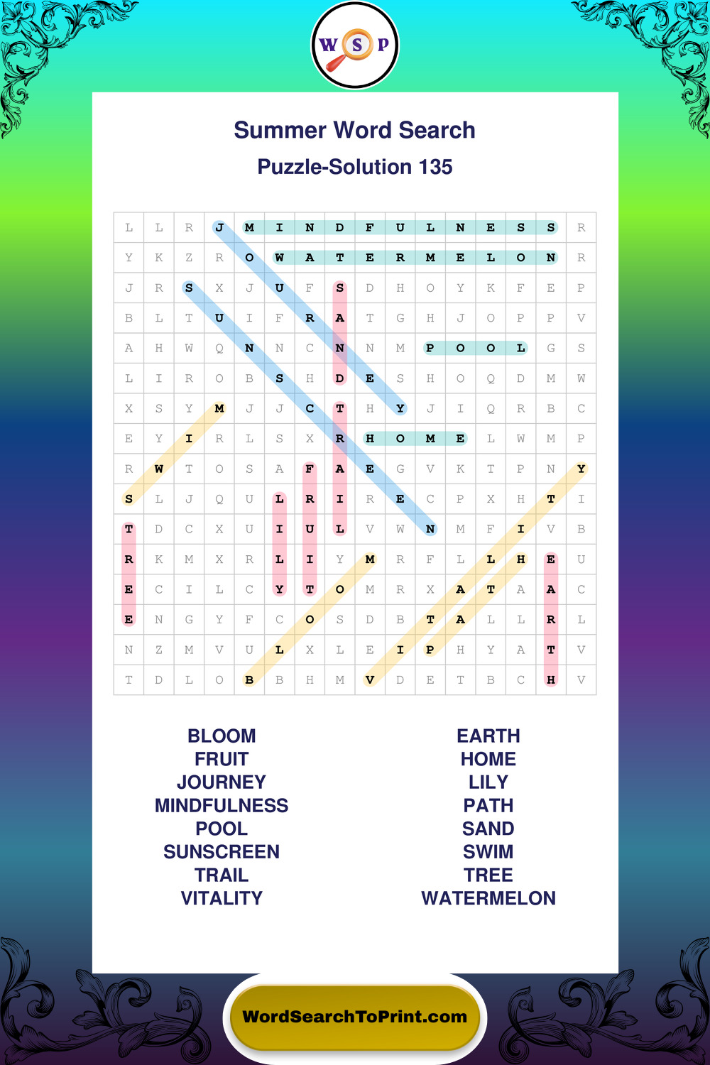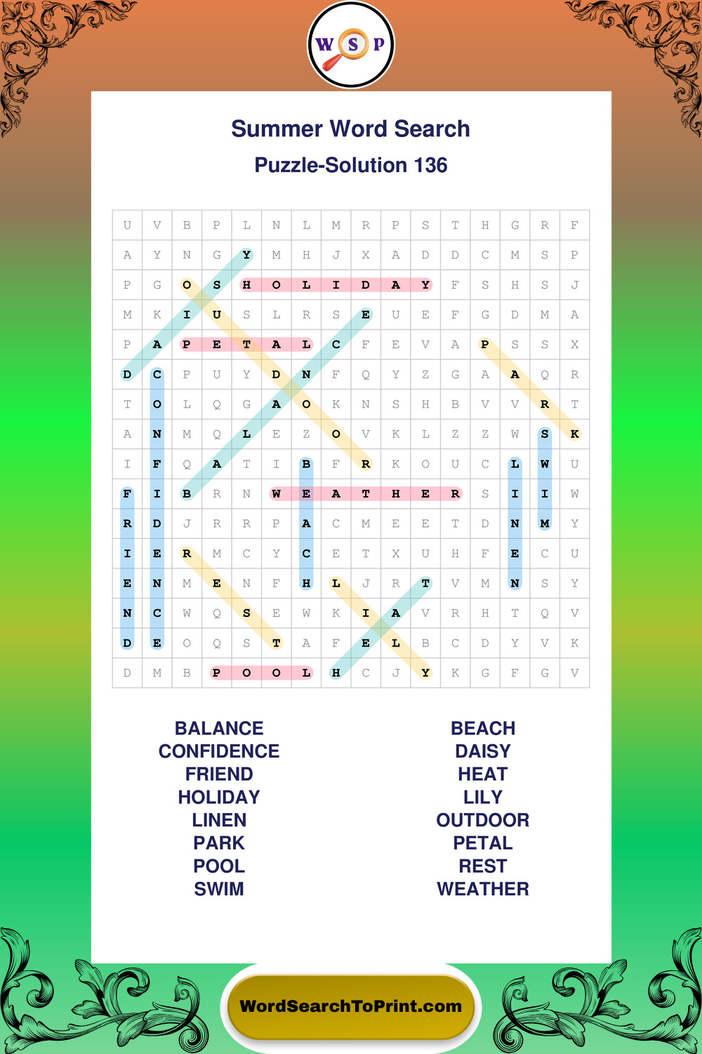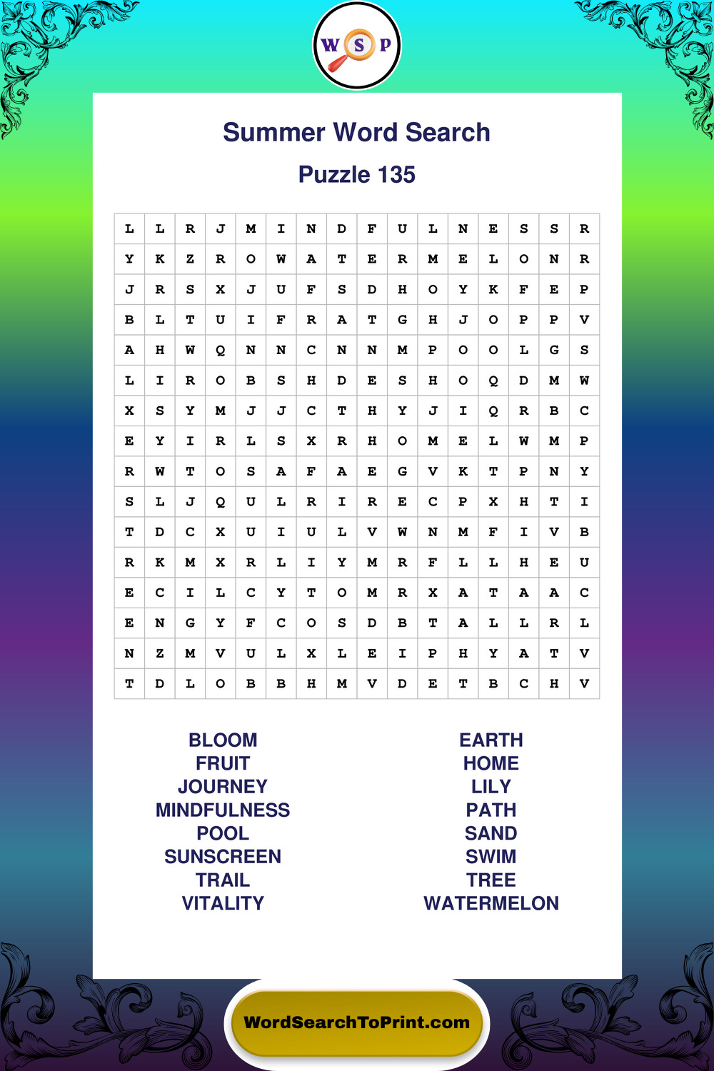 Browse large print Summer wordsearches created to support clear vision, steady concentration, and relaxed solving.