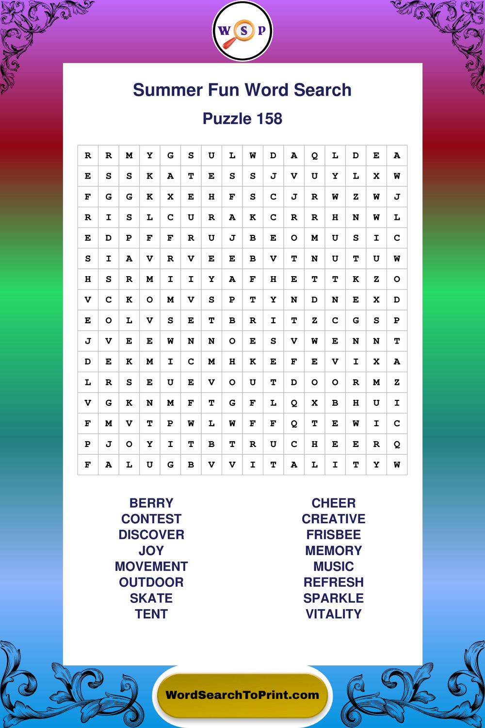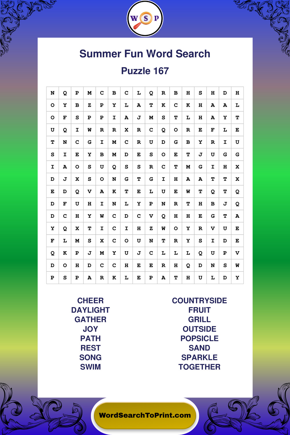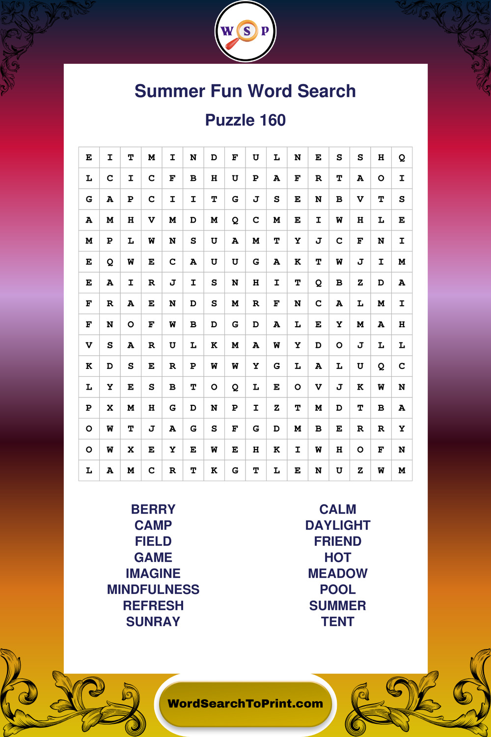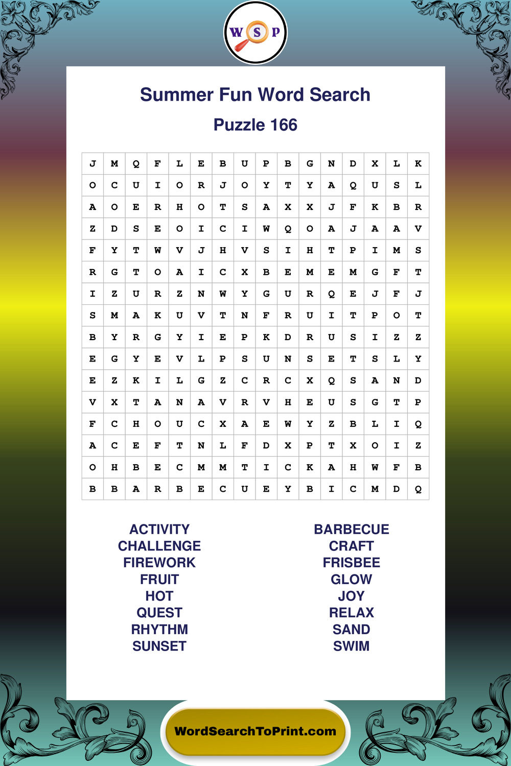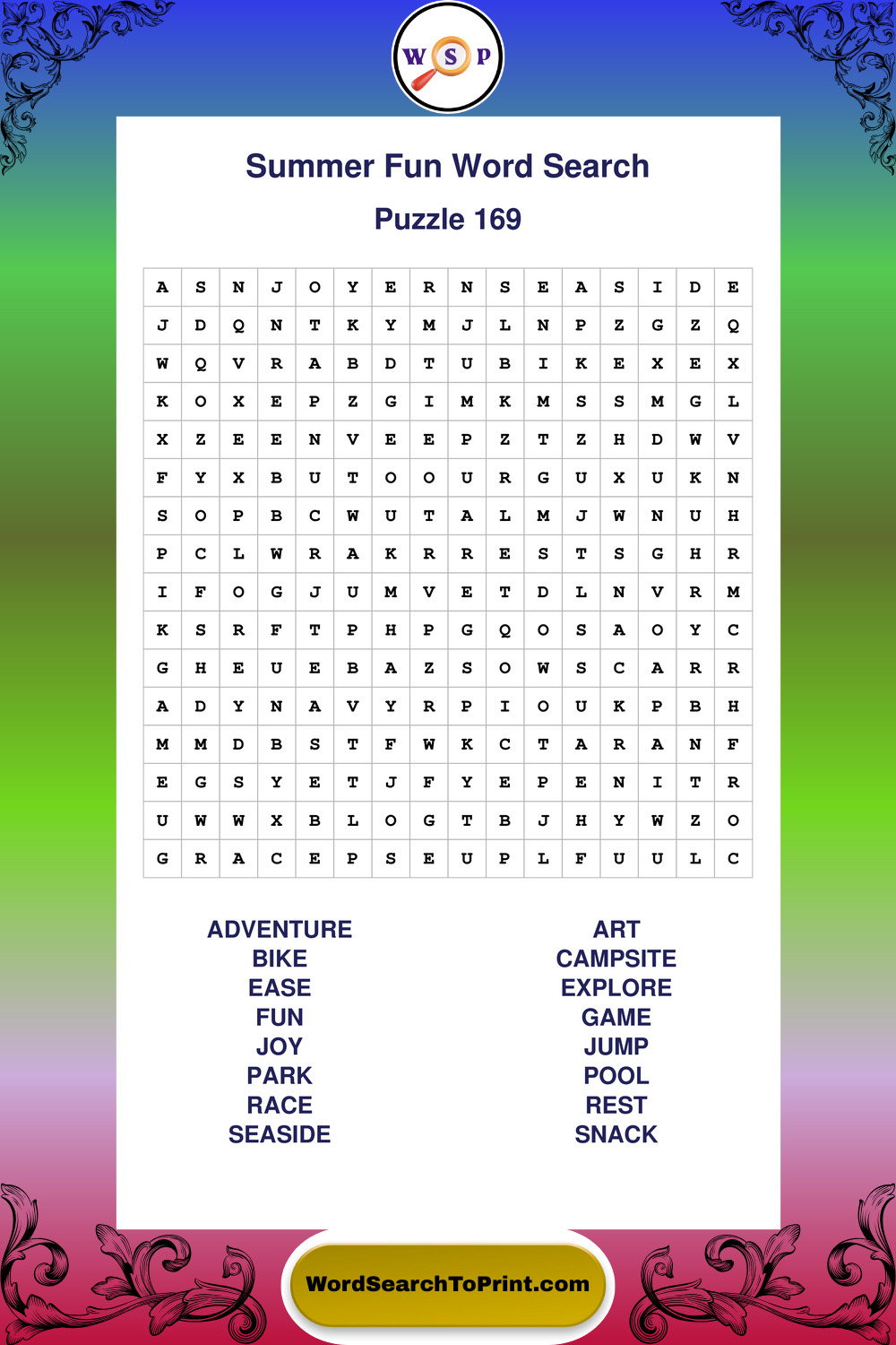 Enjoy large print Summer Fun wordsearches that balance clarity, simplicity, and enjoyable mental activity.