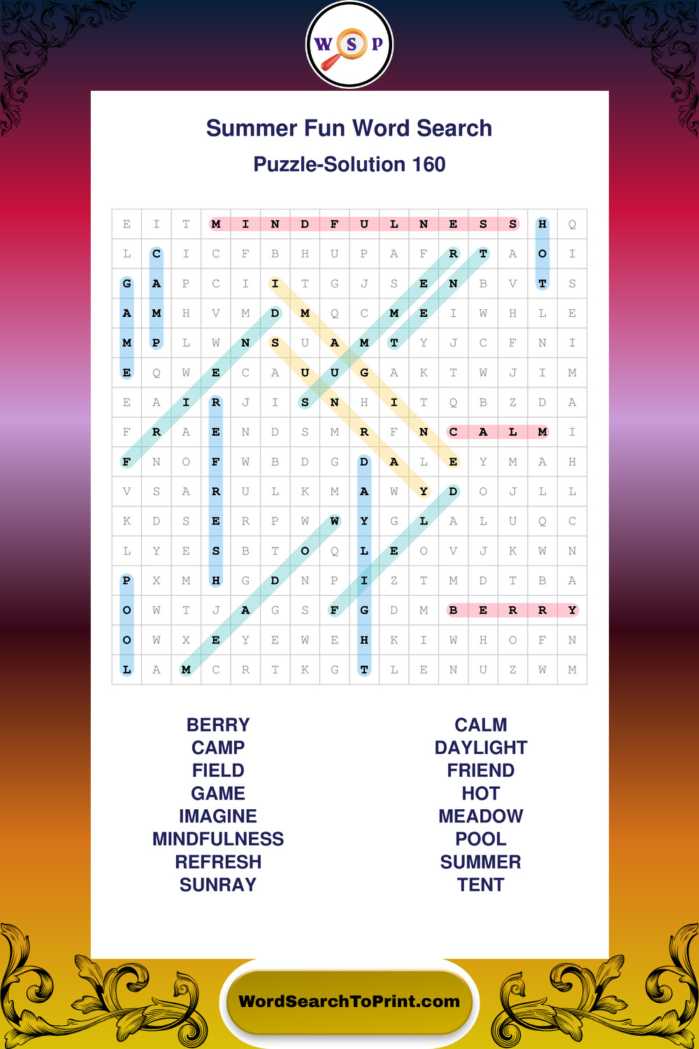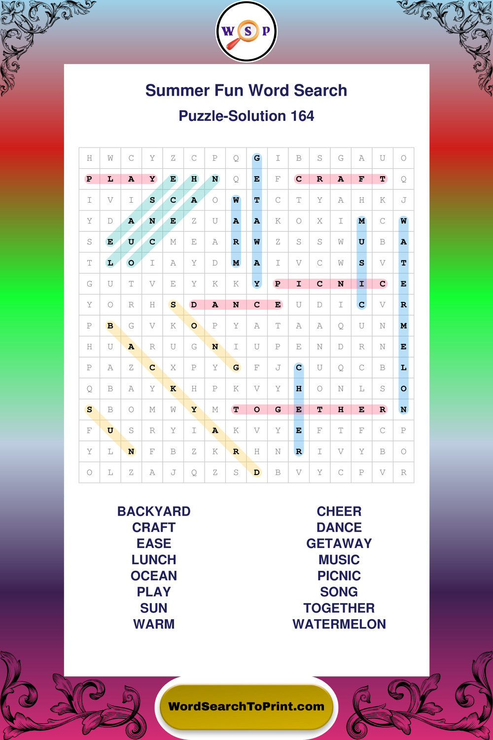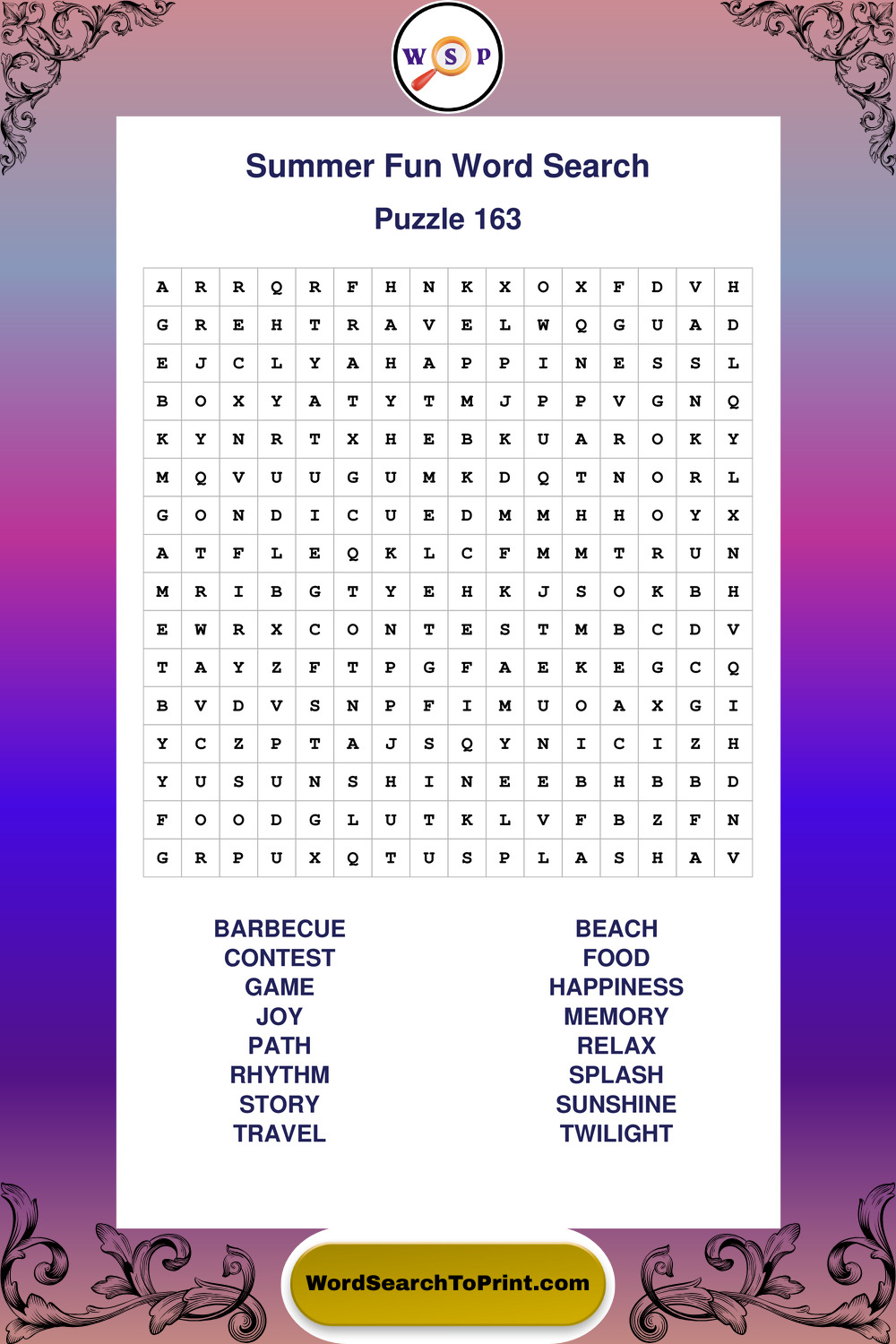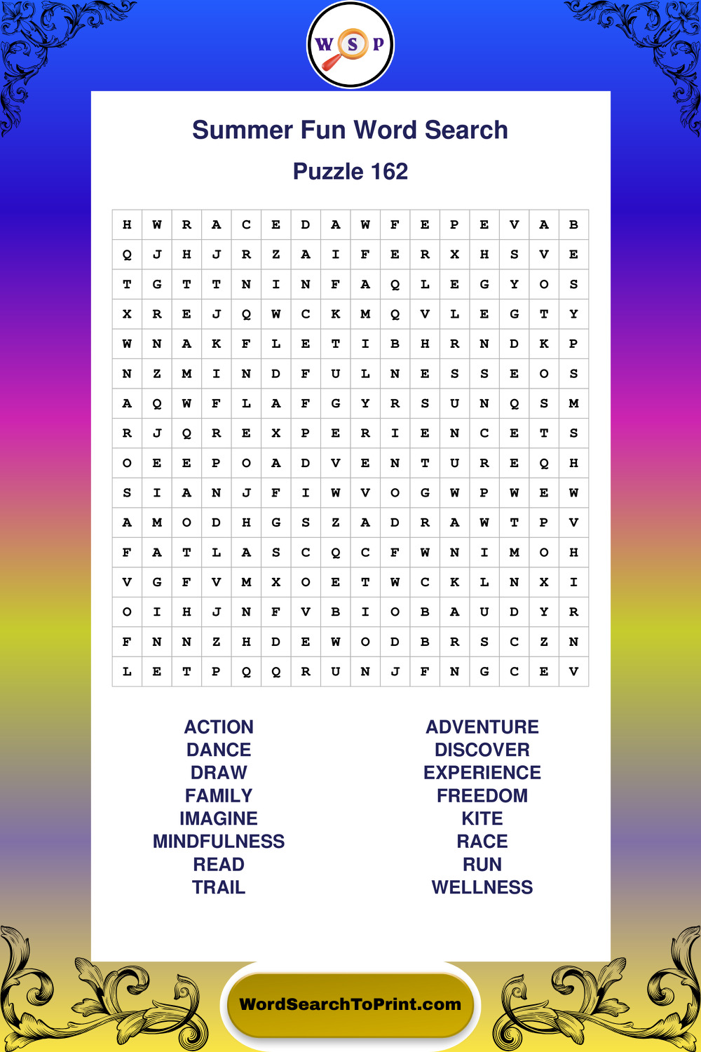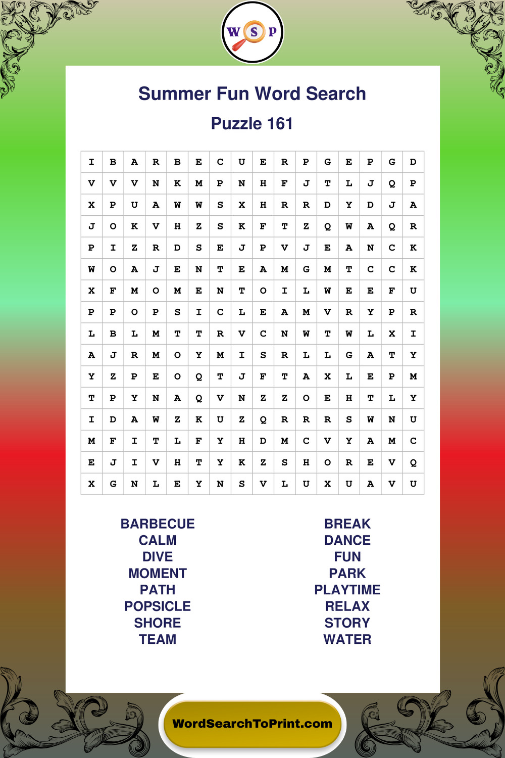 Enjoy large print Summer Fun wordsearches that balance clarity, simplicity, and enjoyable mental activity.