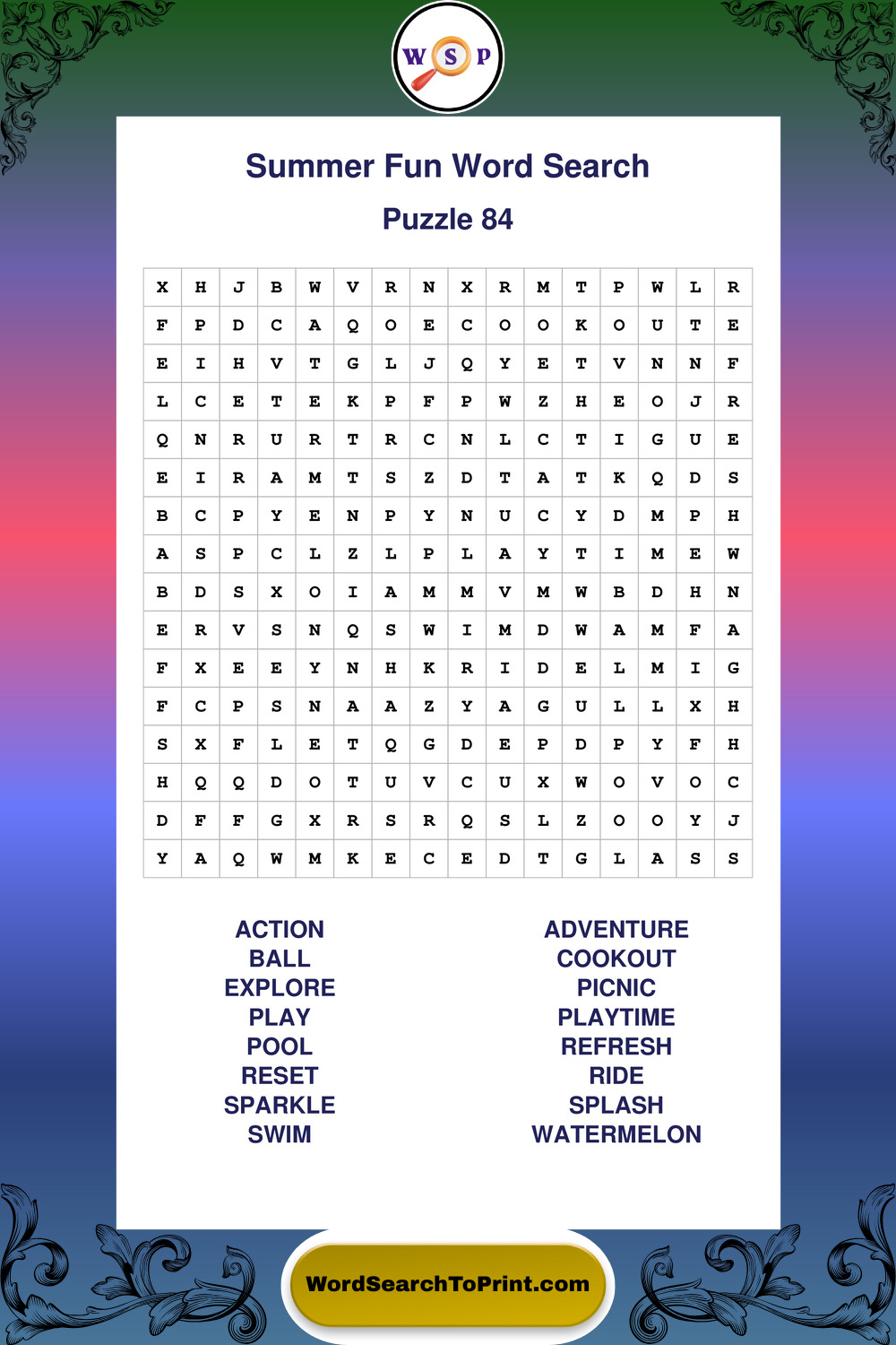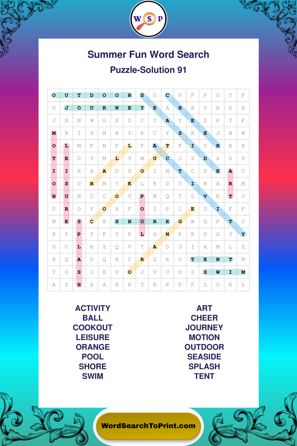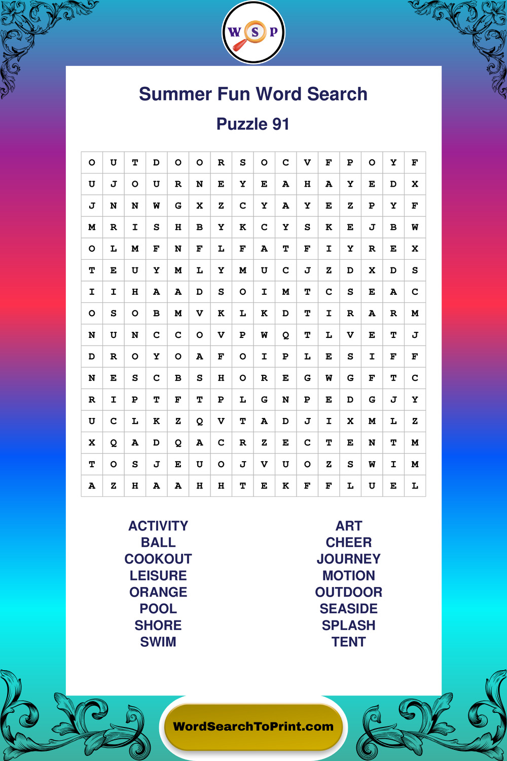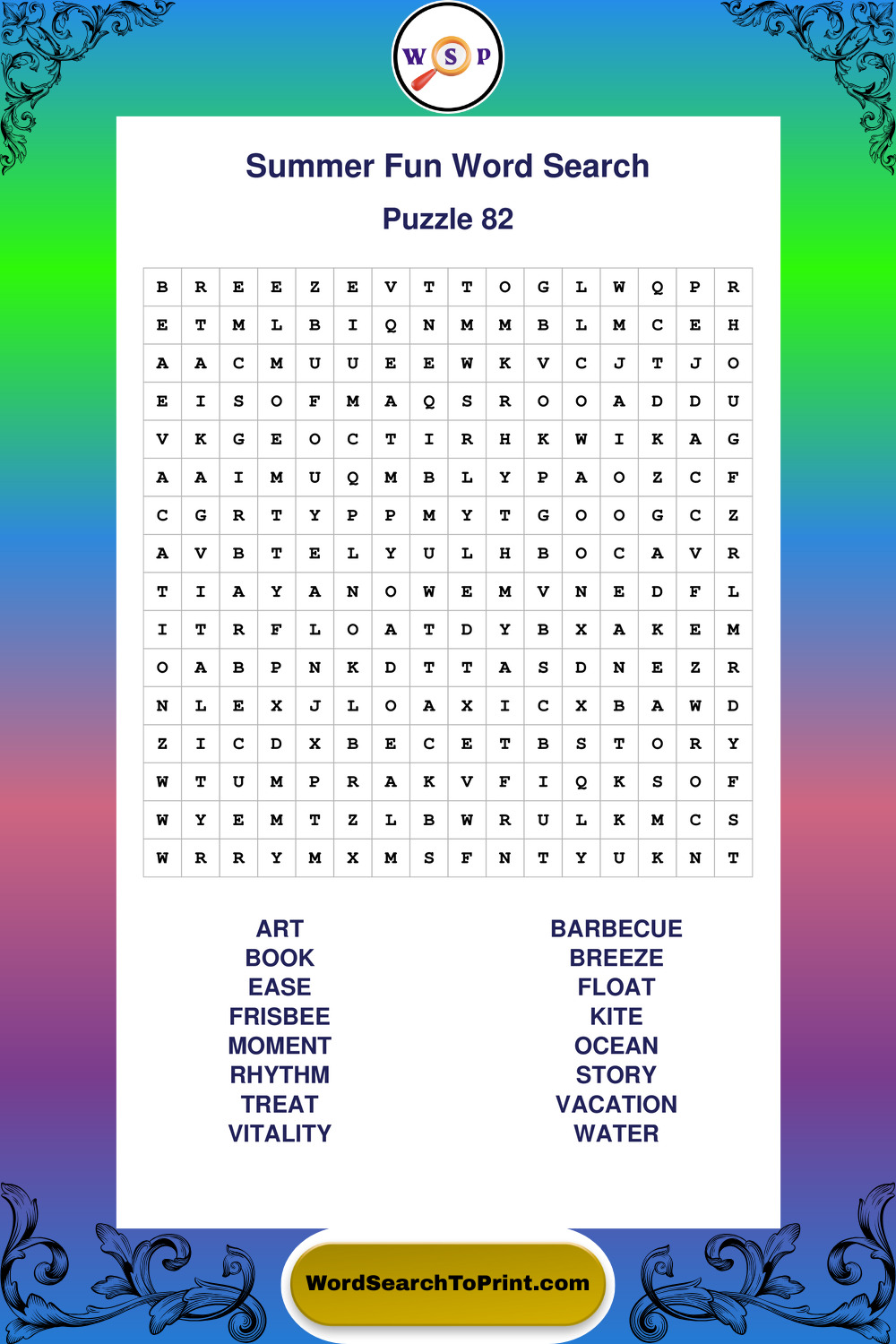 Enjoy large print Summer Fun wordsearches that balance clarity, simplicity, and enjoyable mental activity.