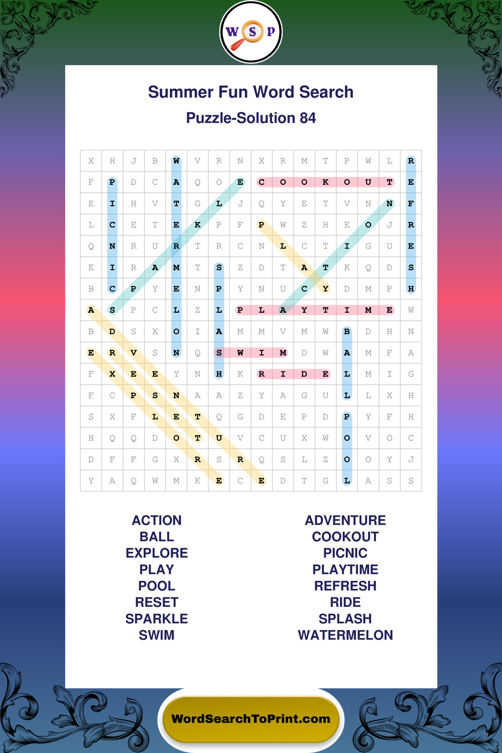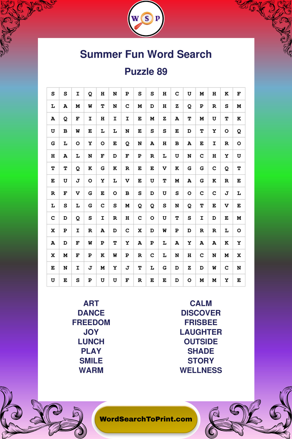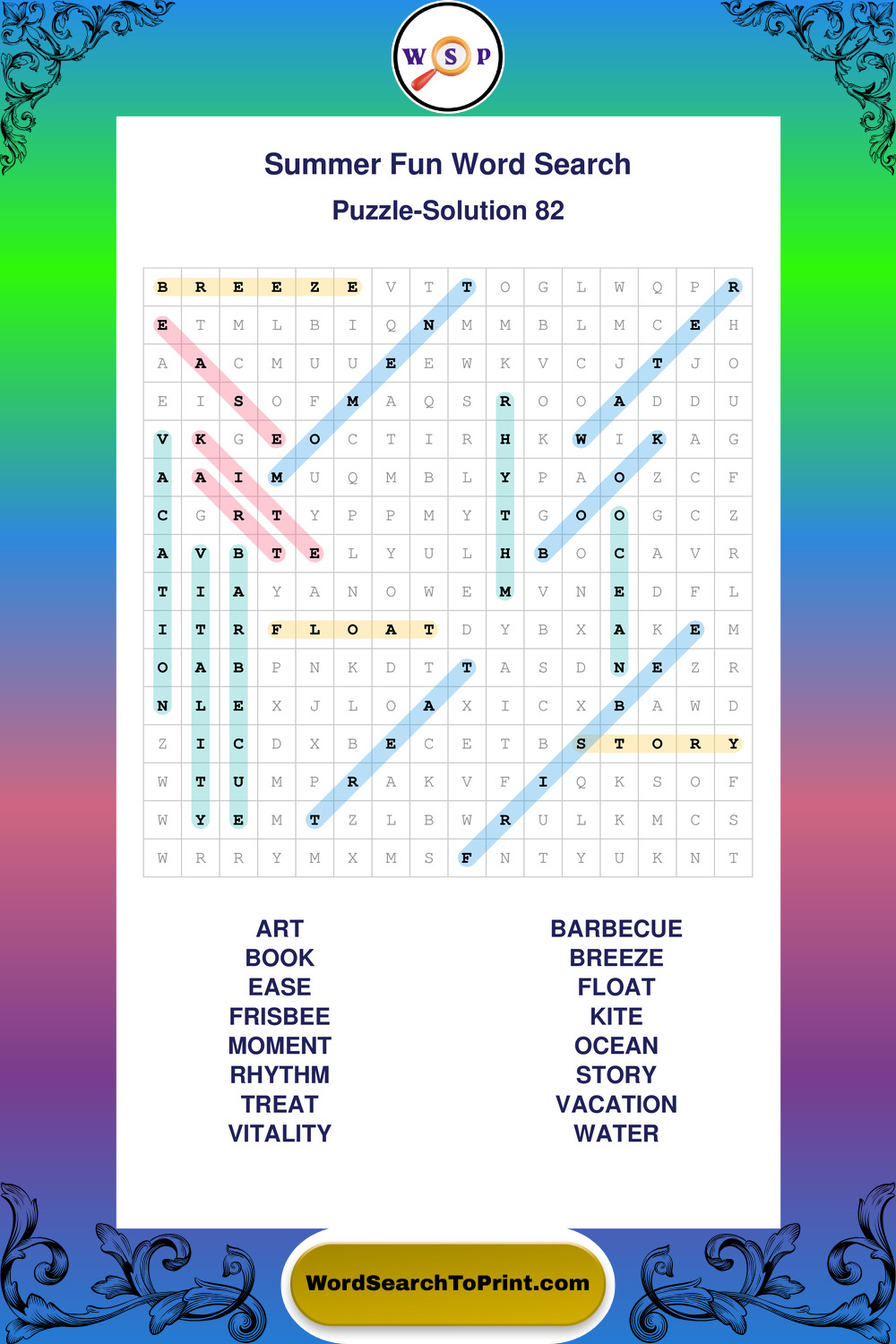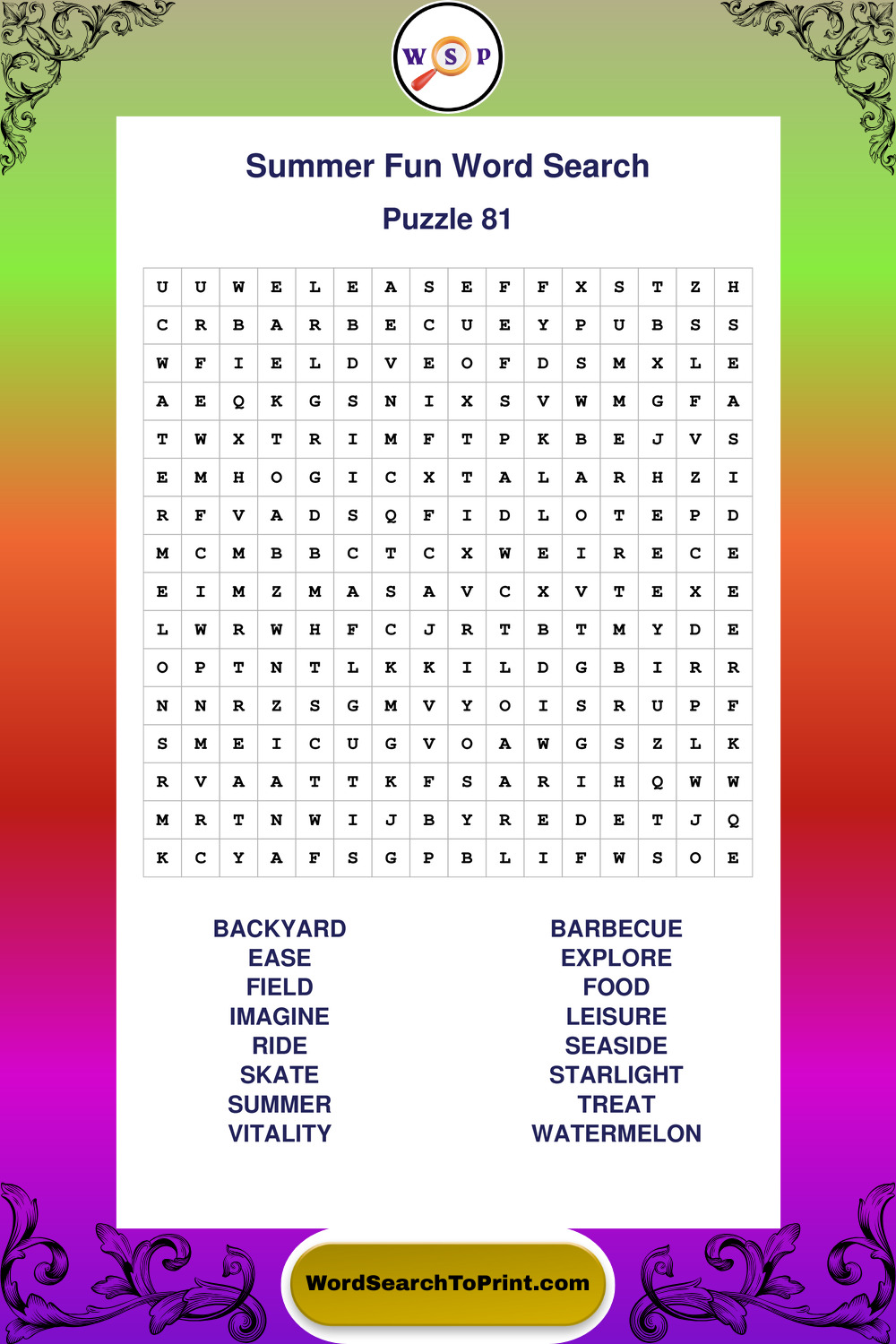 Enjoy large print Summer Fun wordsearches that balance clarity, simplicity, and enjoyable mental activity.