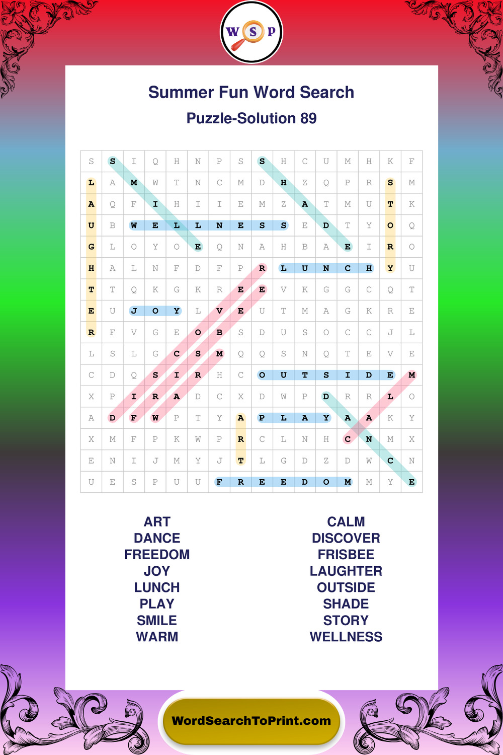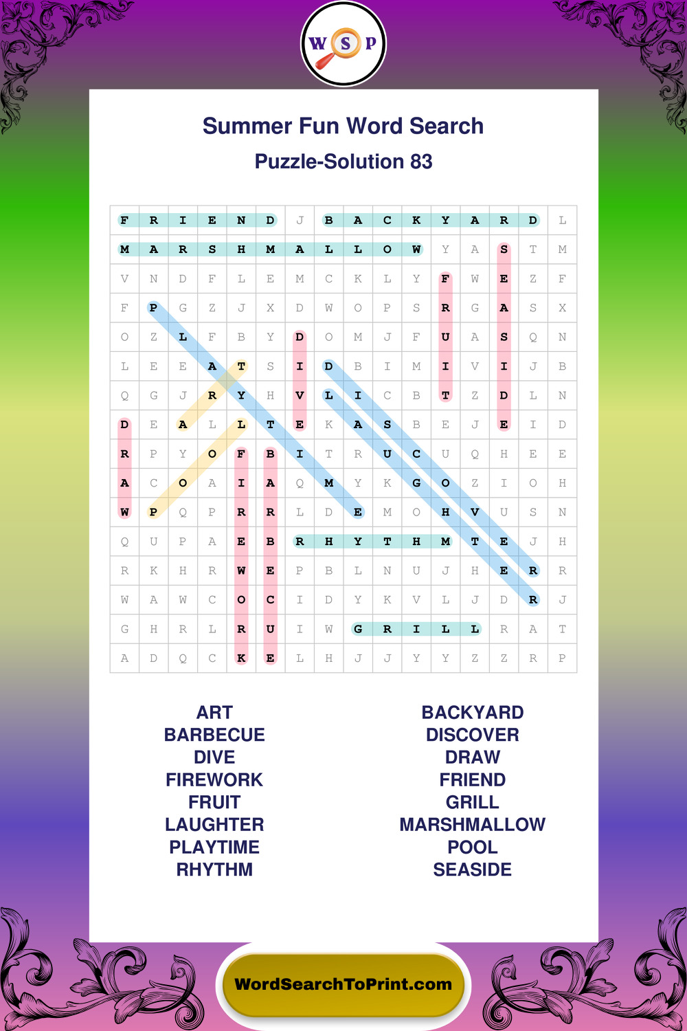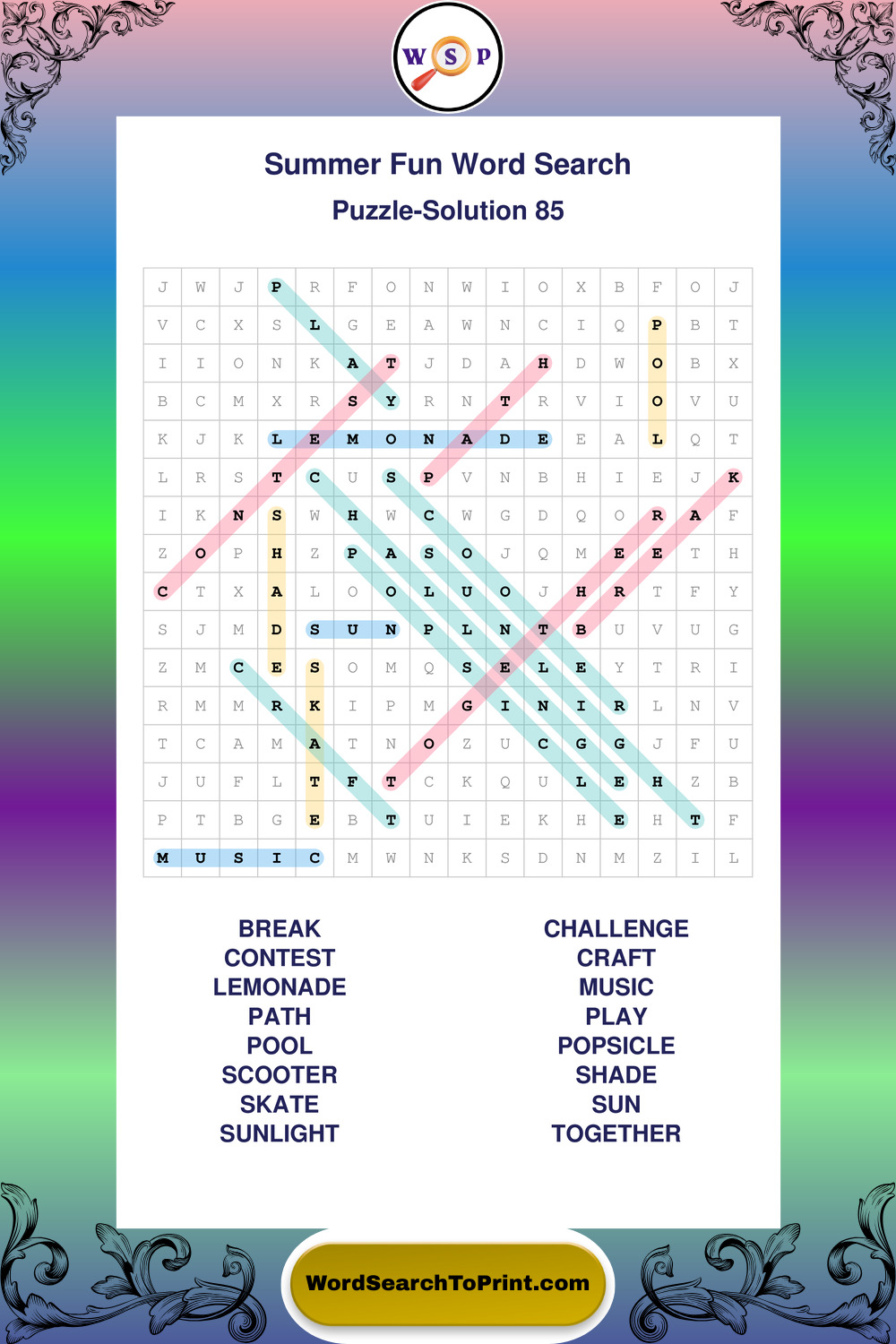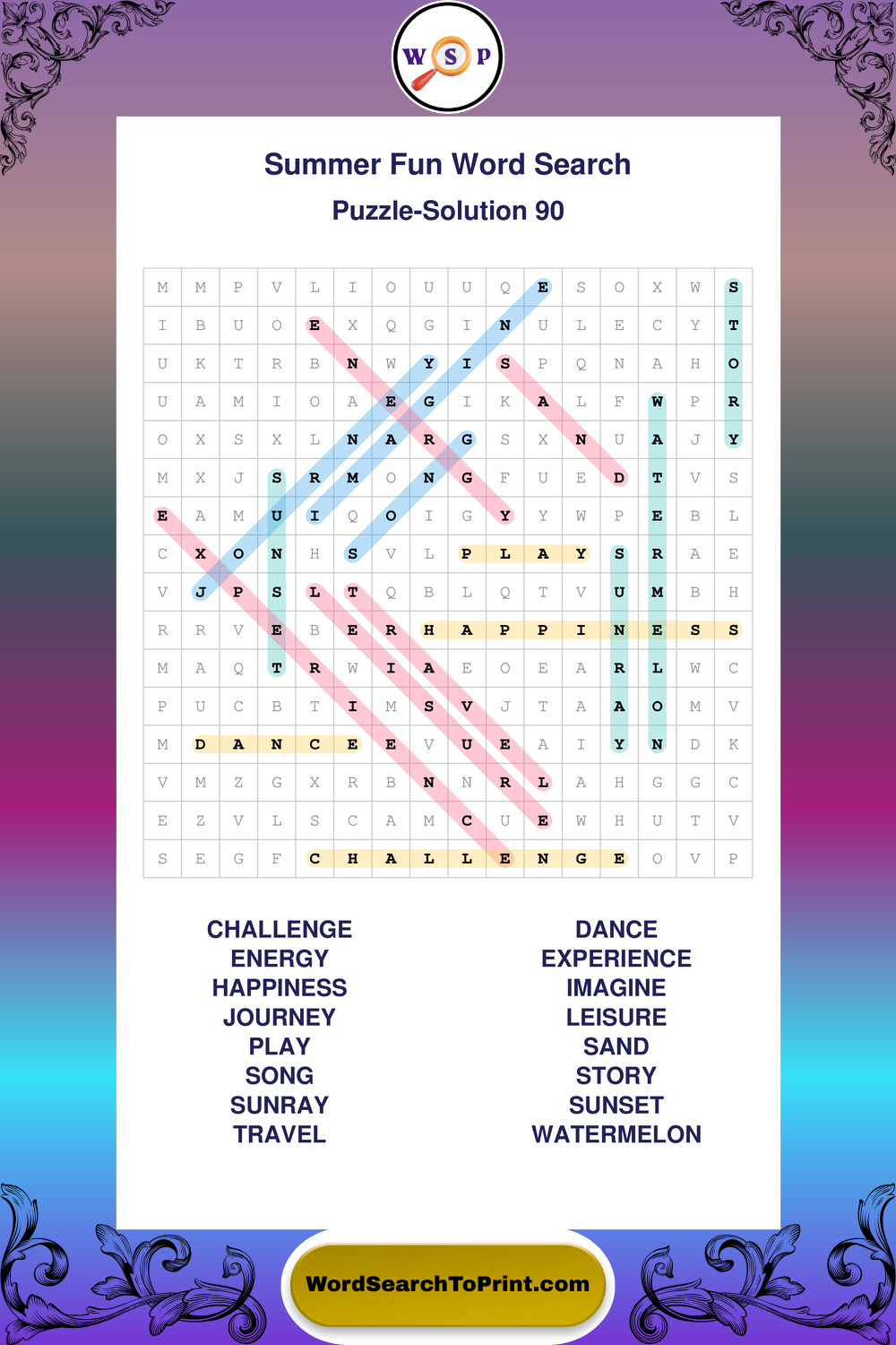 Enjoy large print Summer Fun wordsearches that balance clarity, simplicity, and enjoyable mental activity.