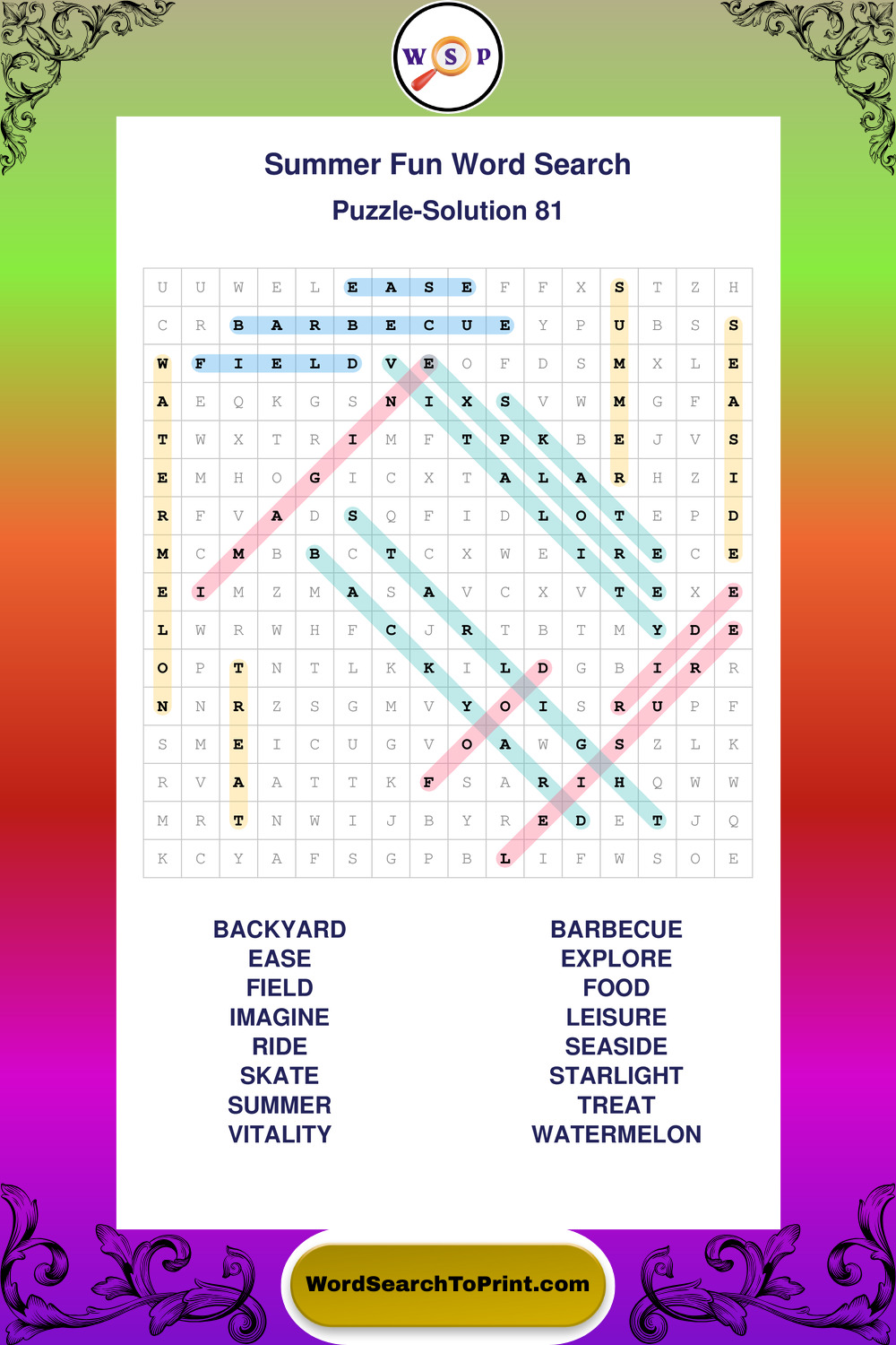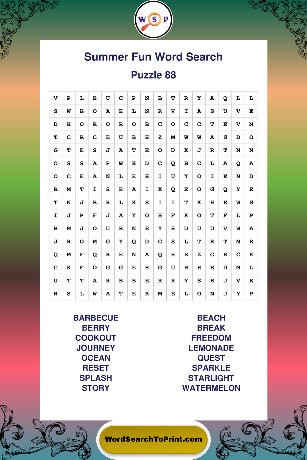 Printable Summer Fun Wordsearch Puzzles