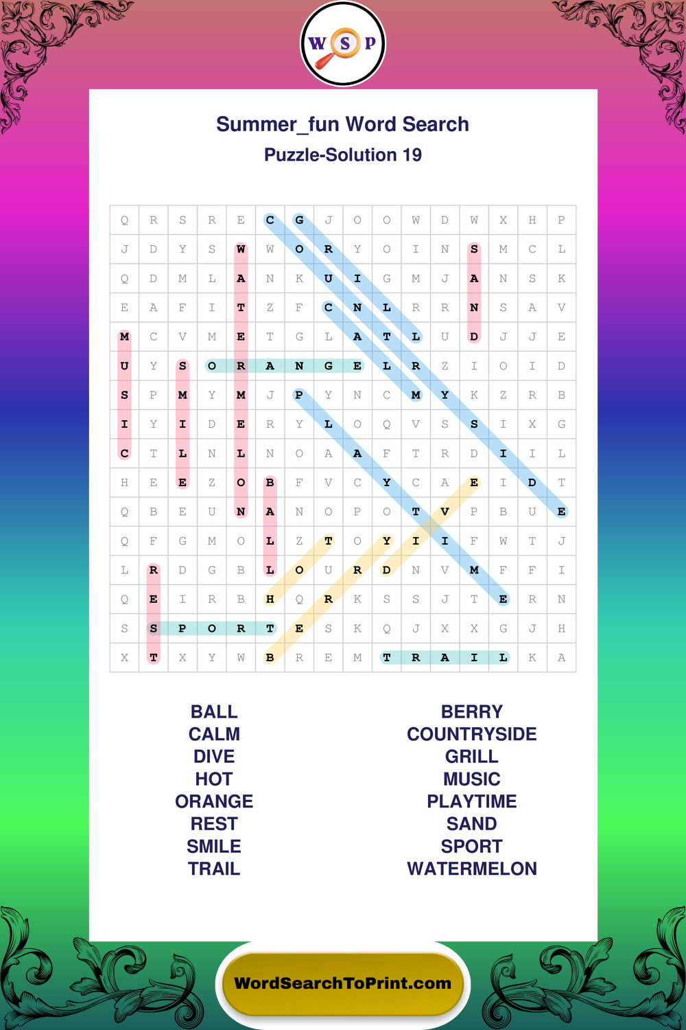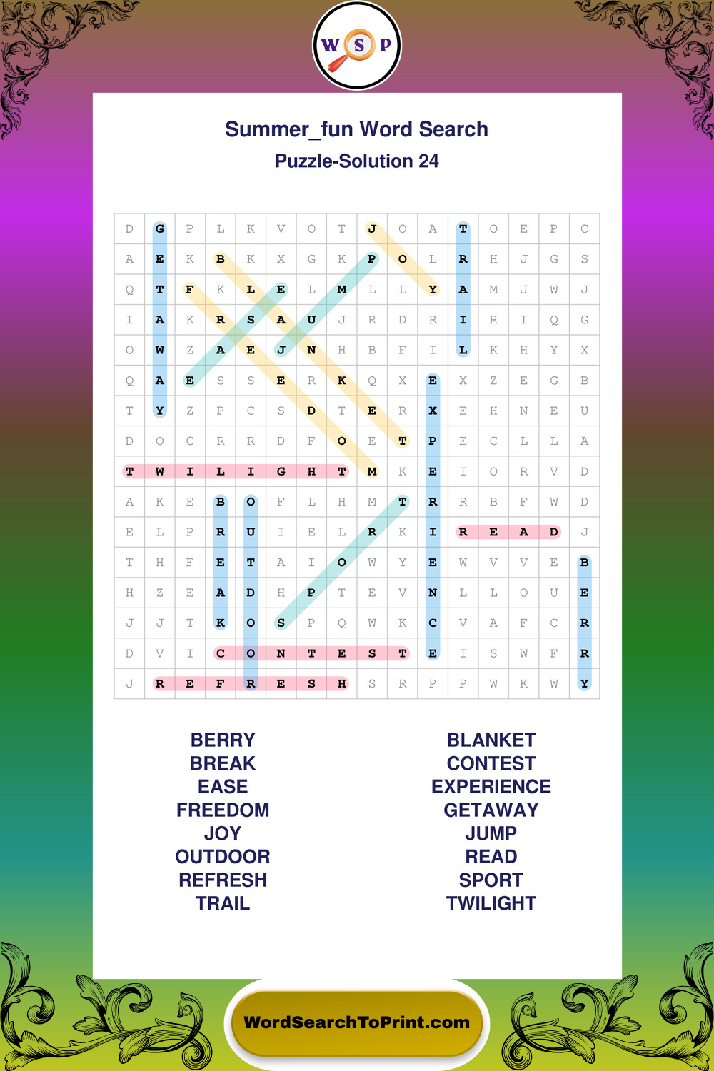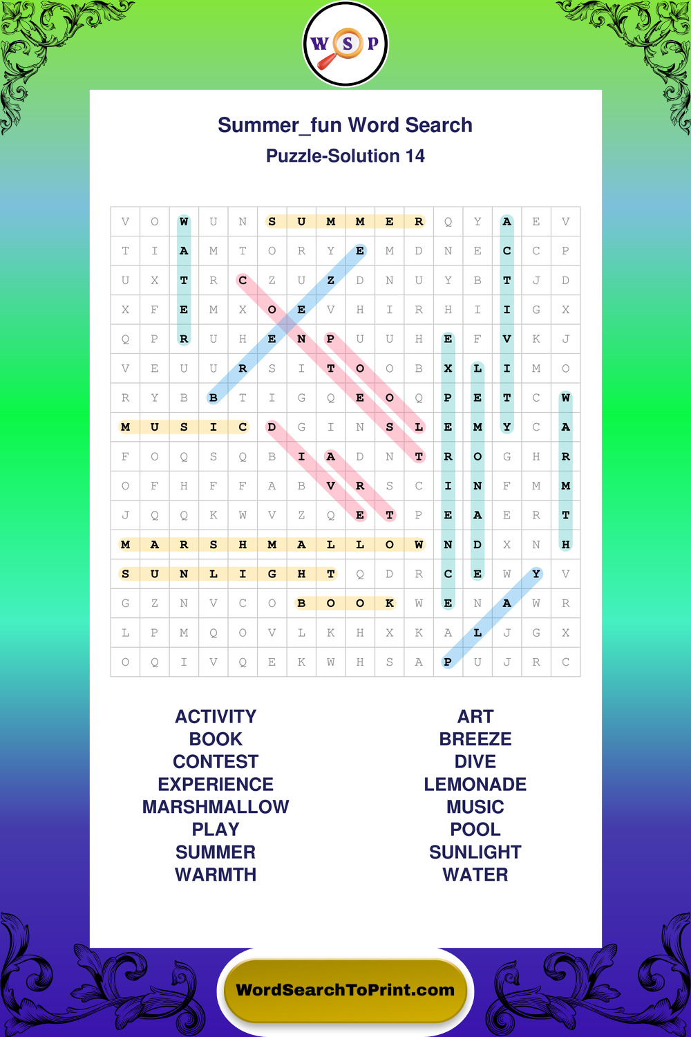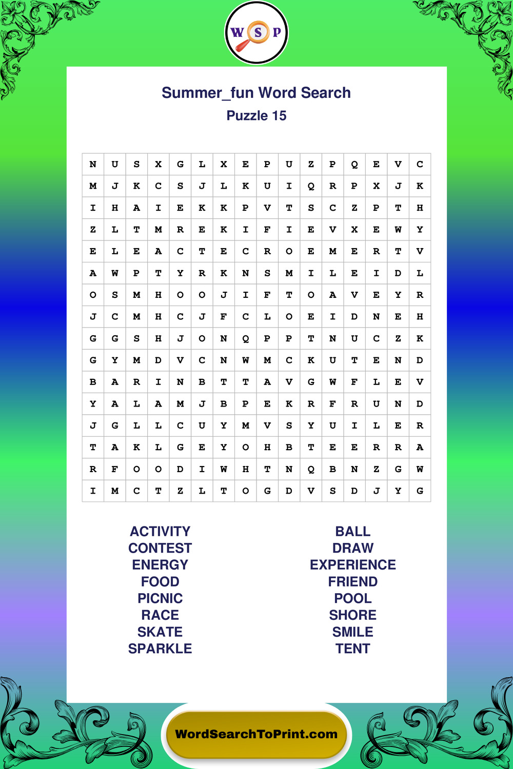 Enjoy large print Summer Fun wordsearches that balance clarity, simplicity, and enjoyable mental activity.