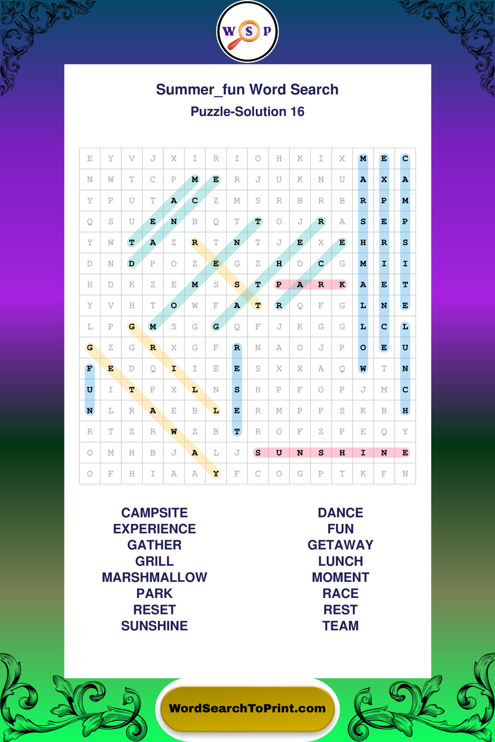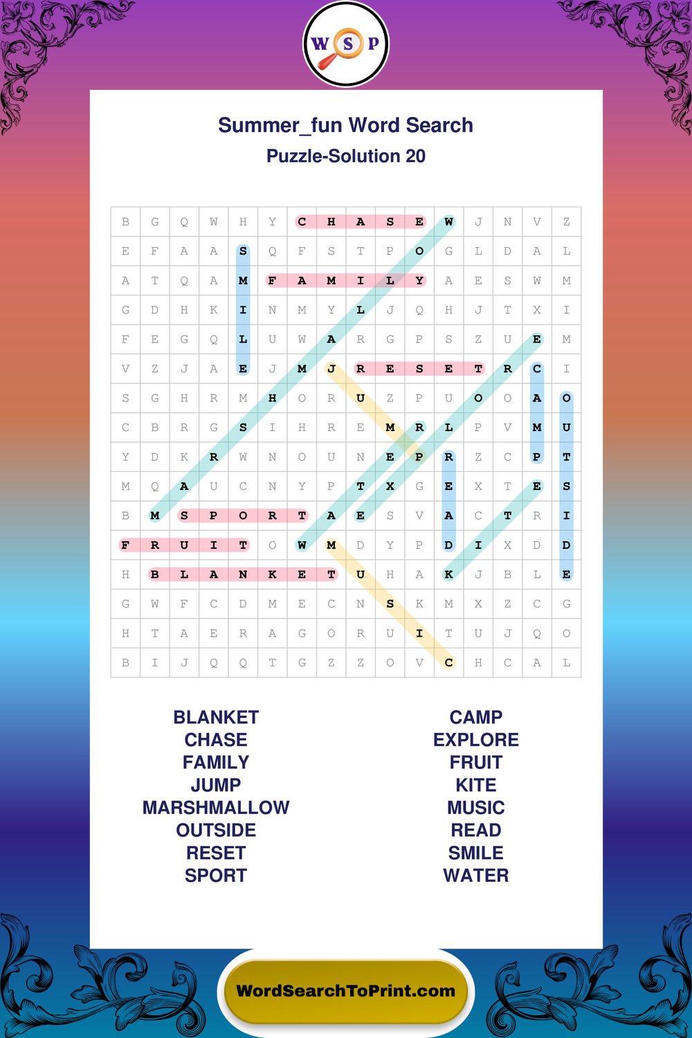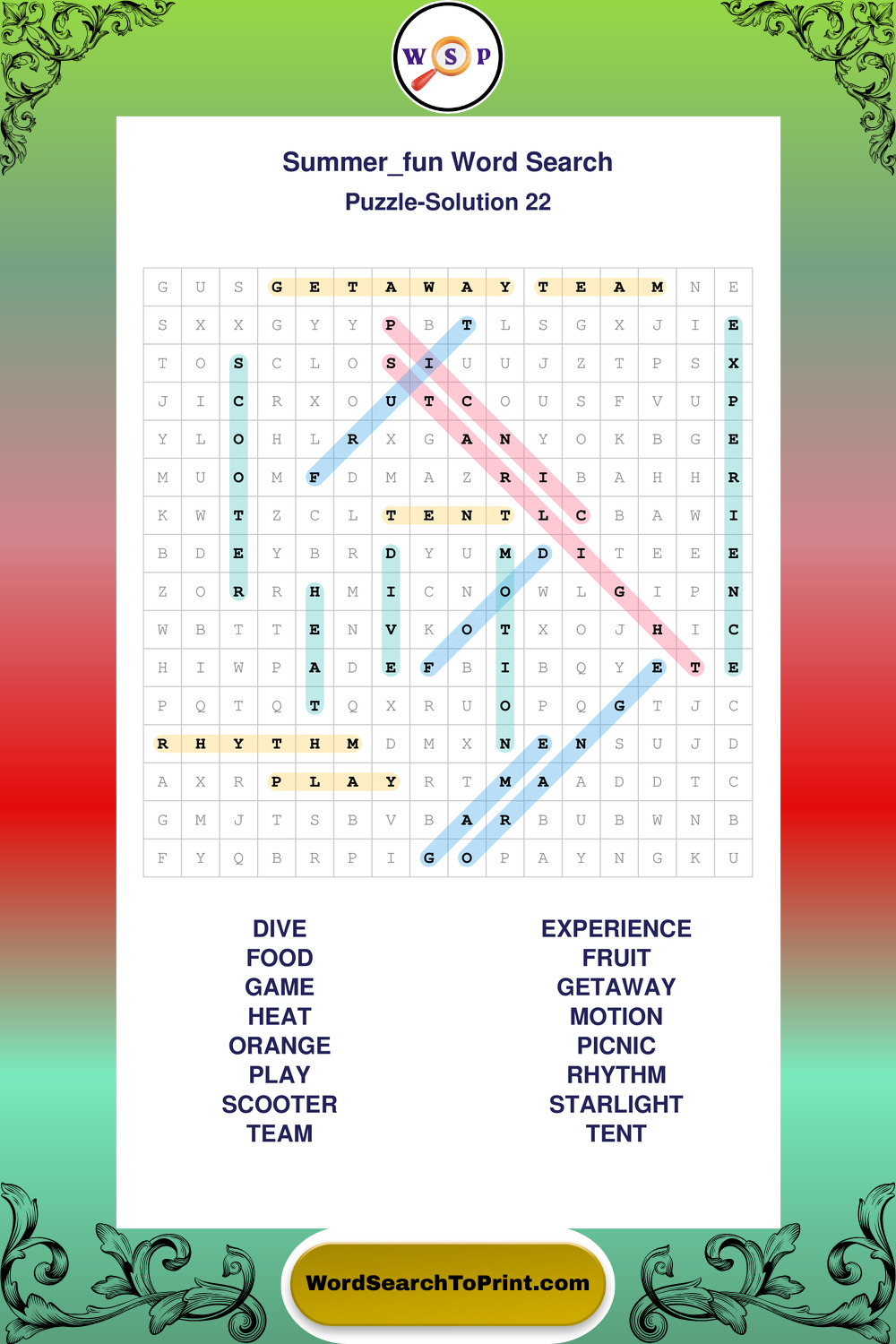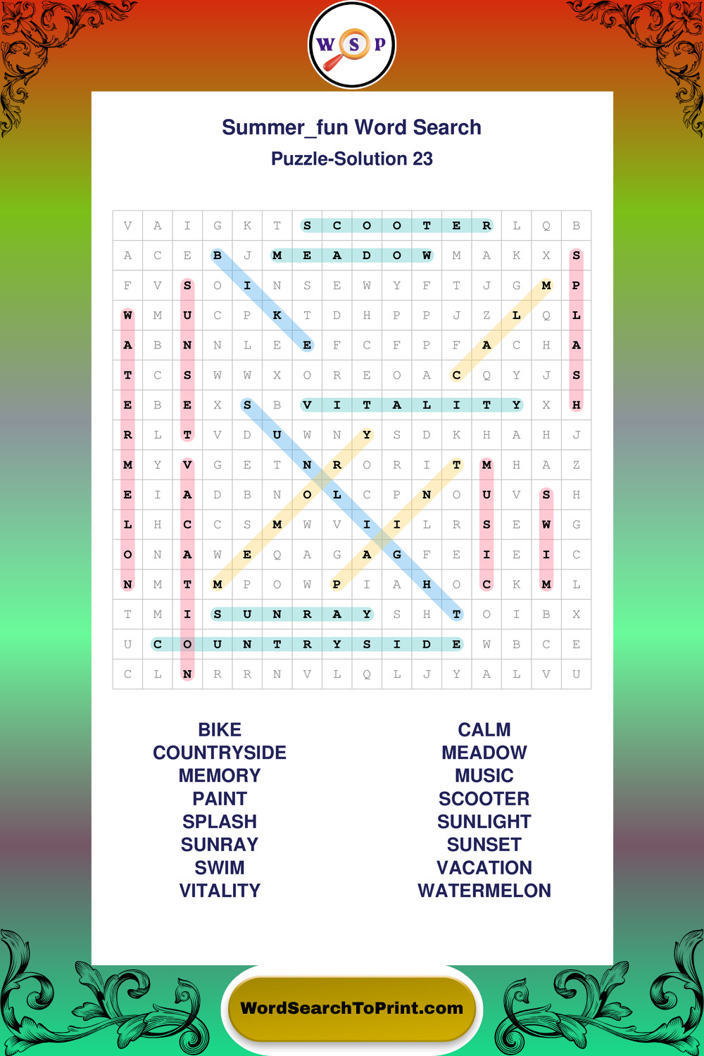 Enjoy large print Summer Fun wordsearches that balance clarity, simplicity, and enjoyable mental activity.