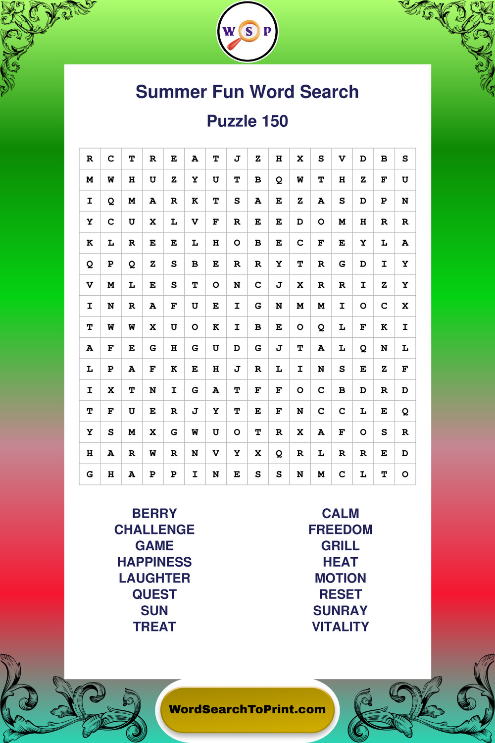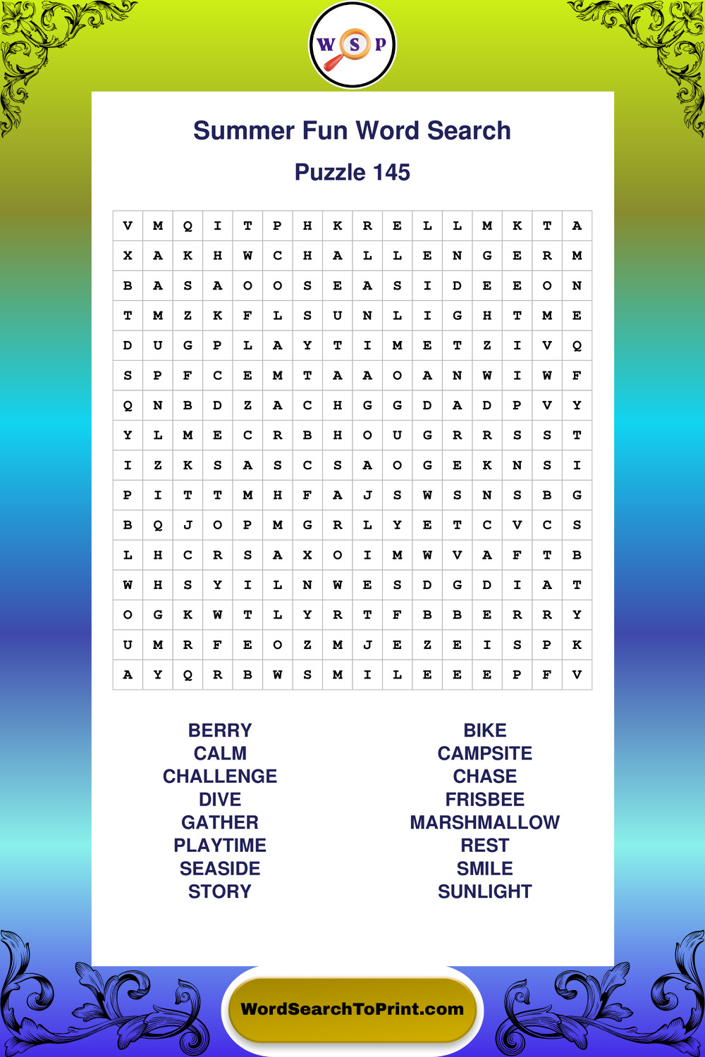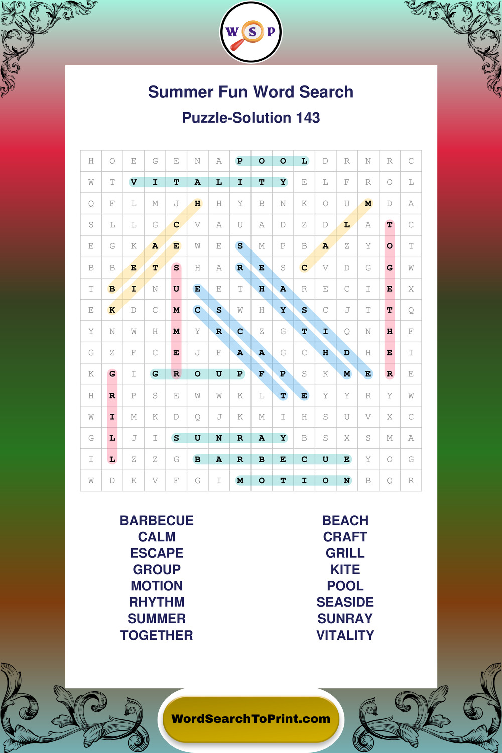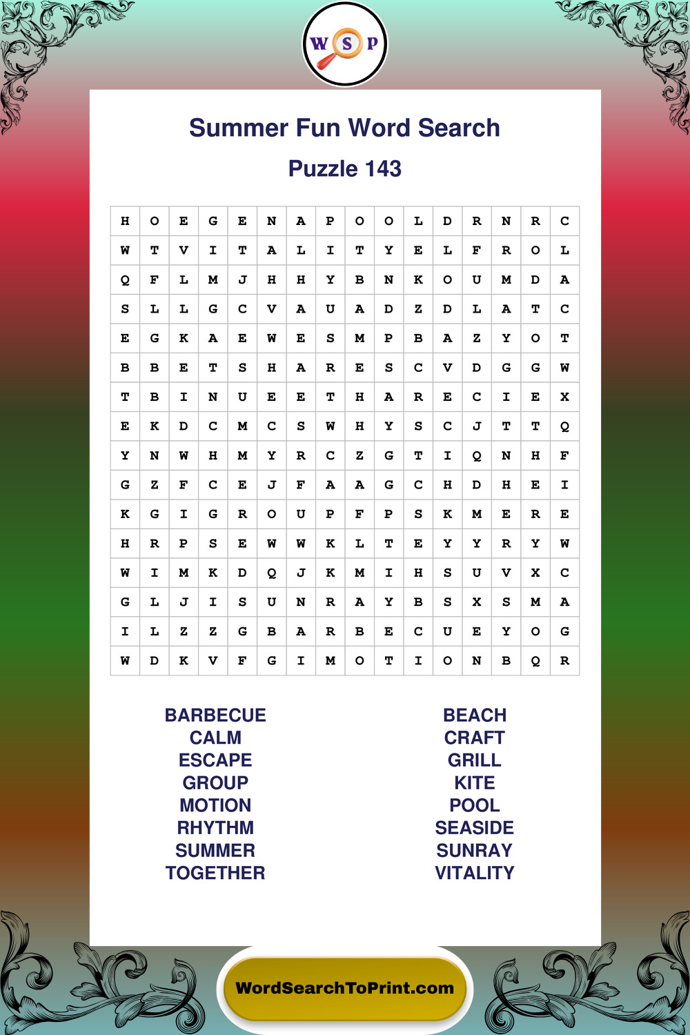 Enjoy large print Summer Fun wordsearches that balance clarity, simplicity, and enjoyable mental activity.