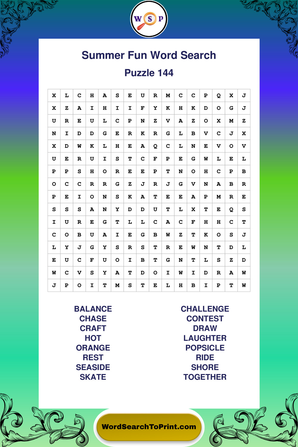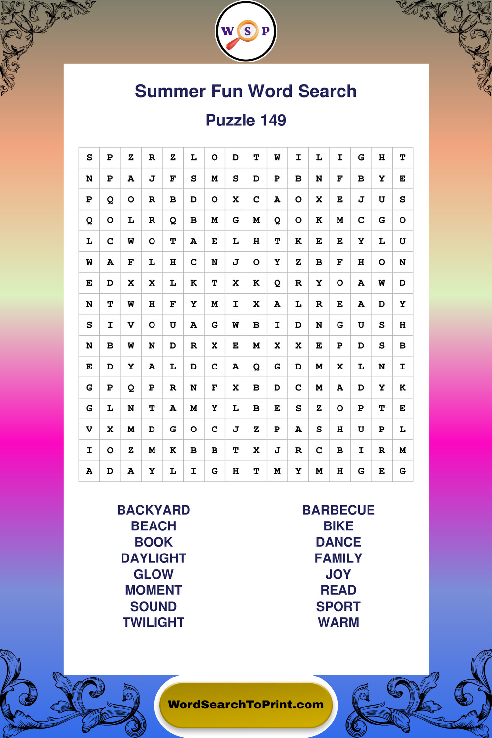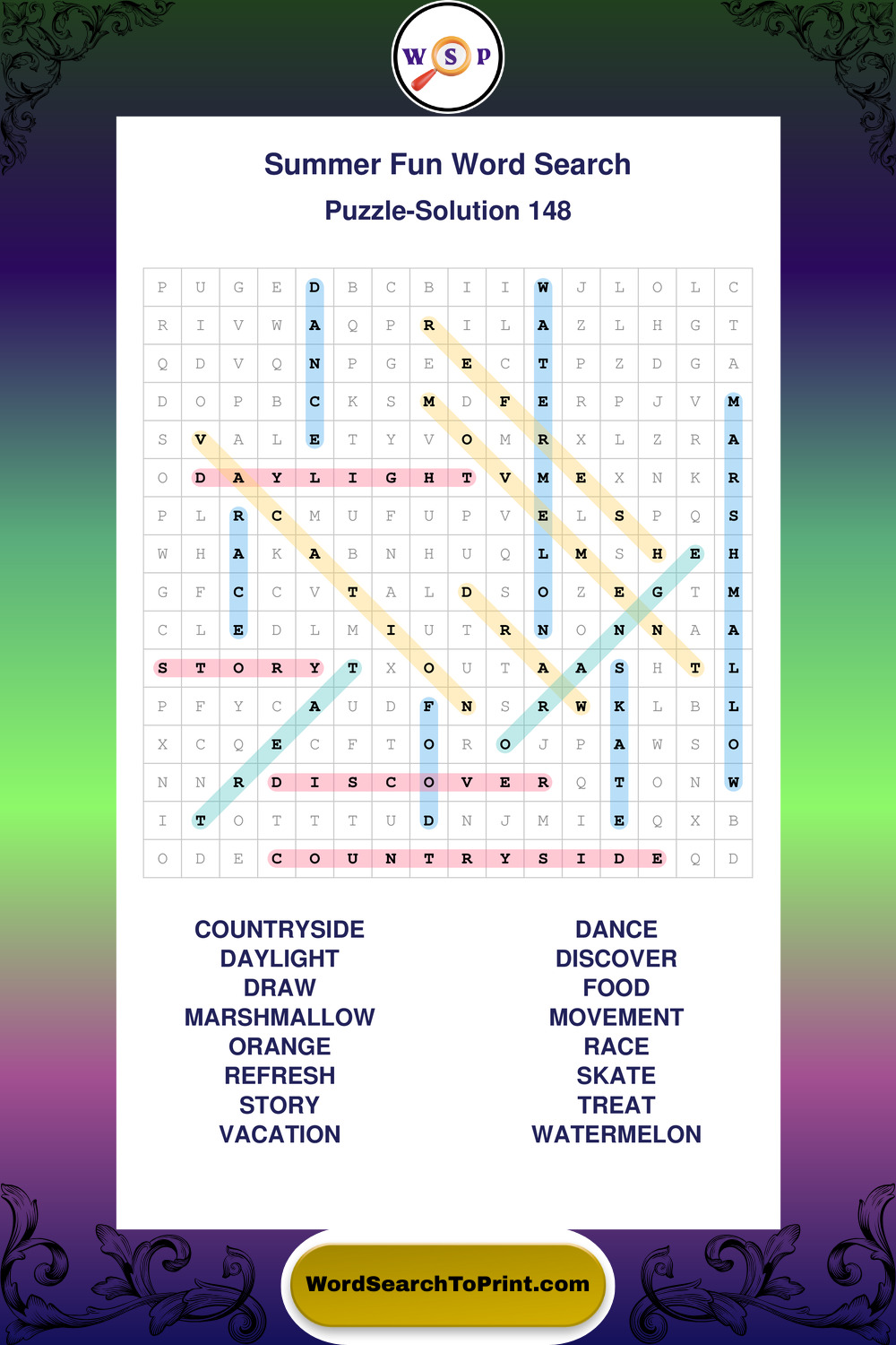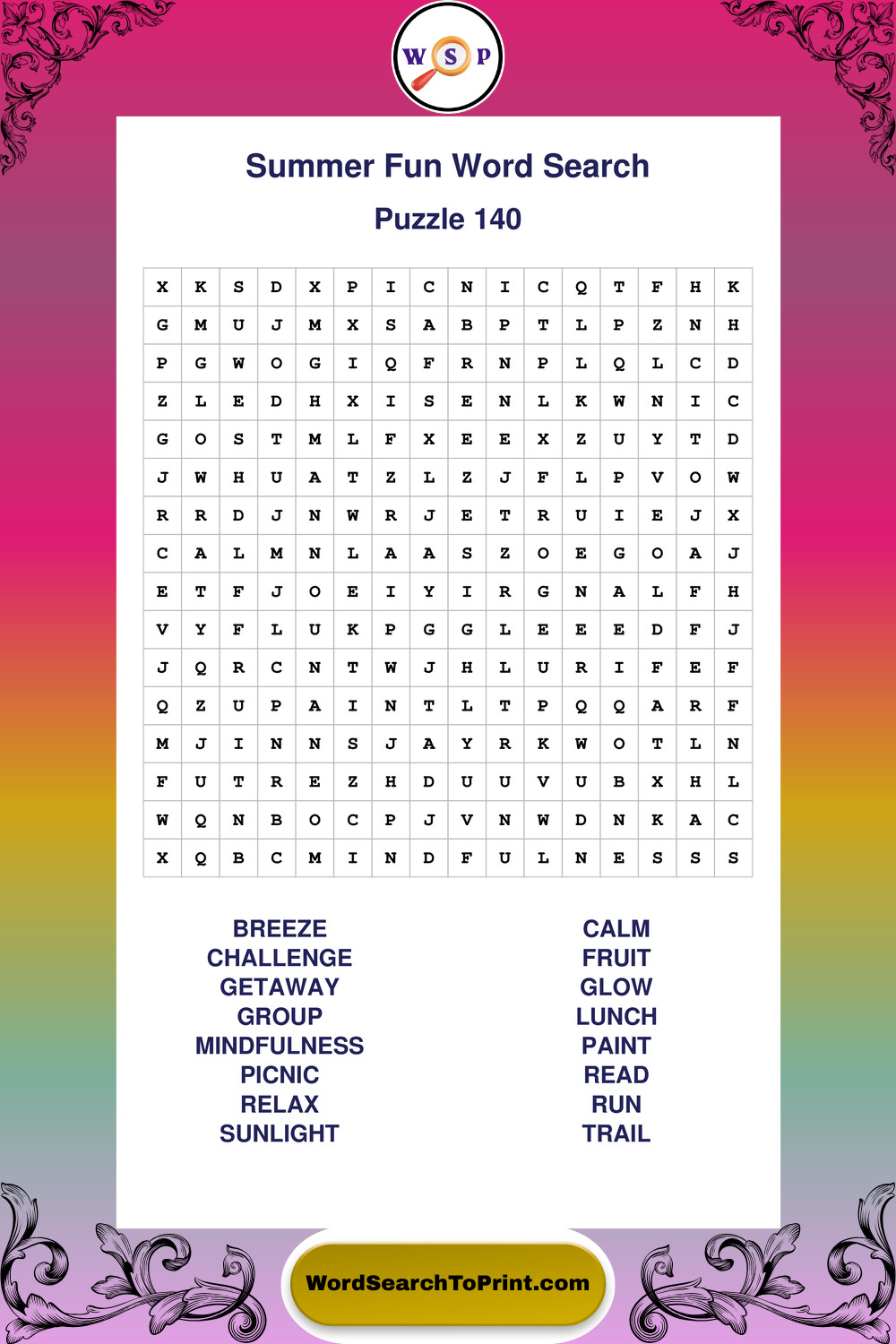 Enjoy large print Summer Fun wordsearches that balance clarity, simplicity, and enjoyable mental activity.
