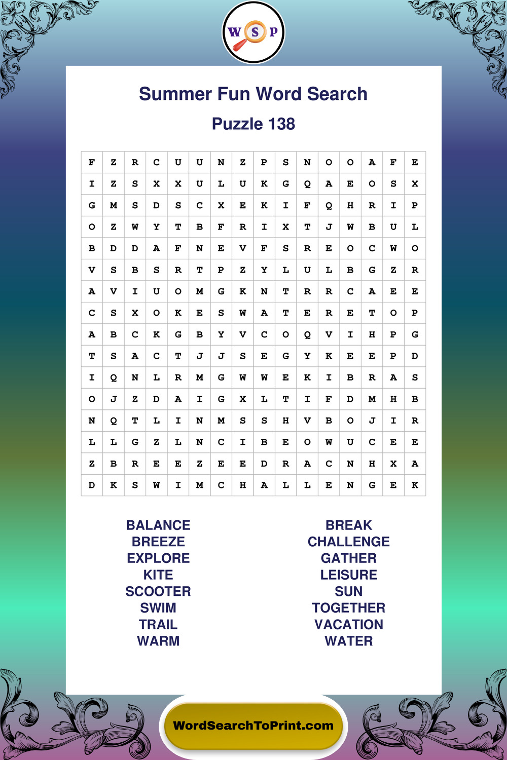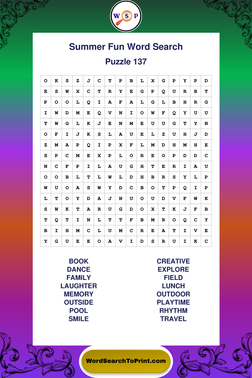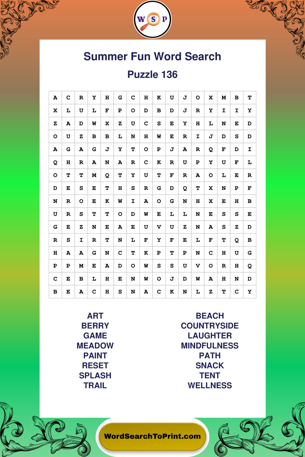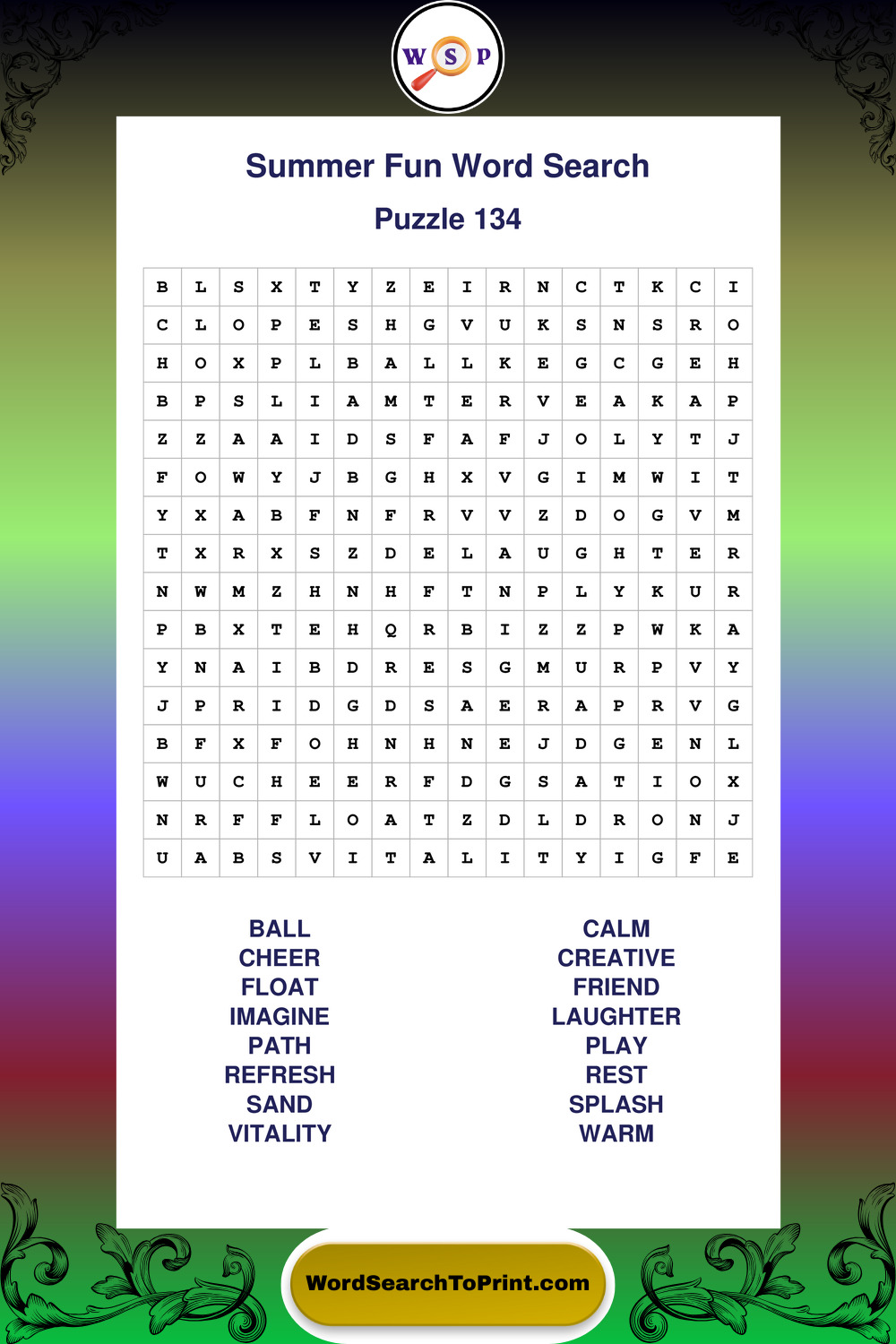 Enjoy large print Summer Fun wordsearches that balance clarity, simplicity, and enjoyable mental activity.