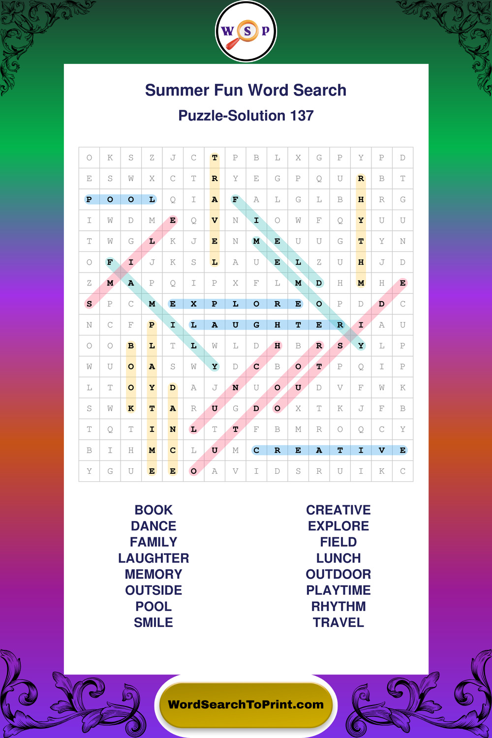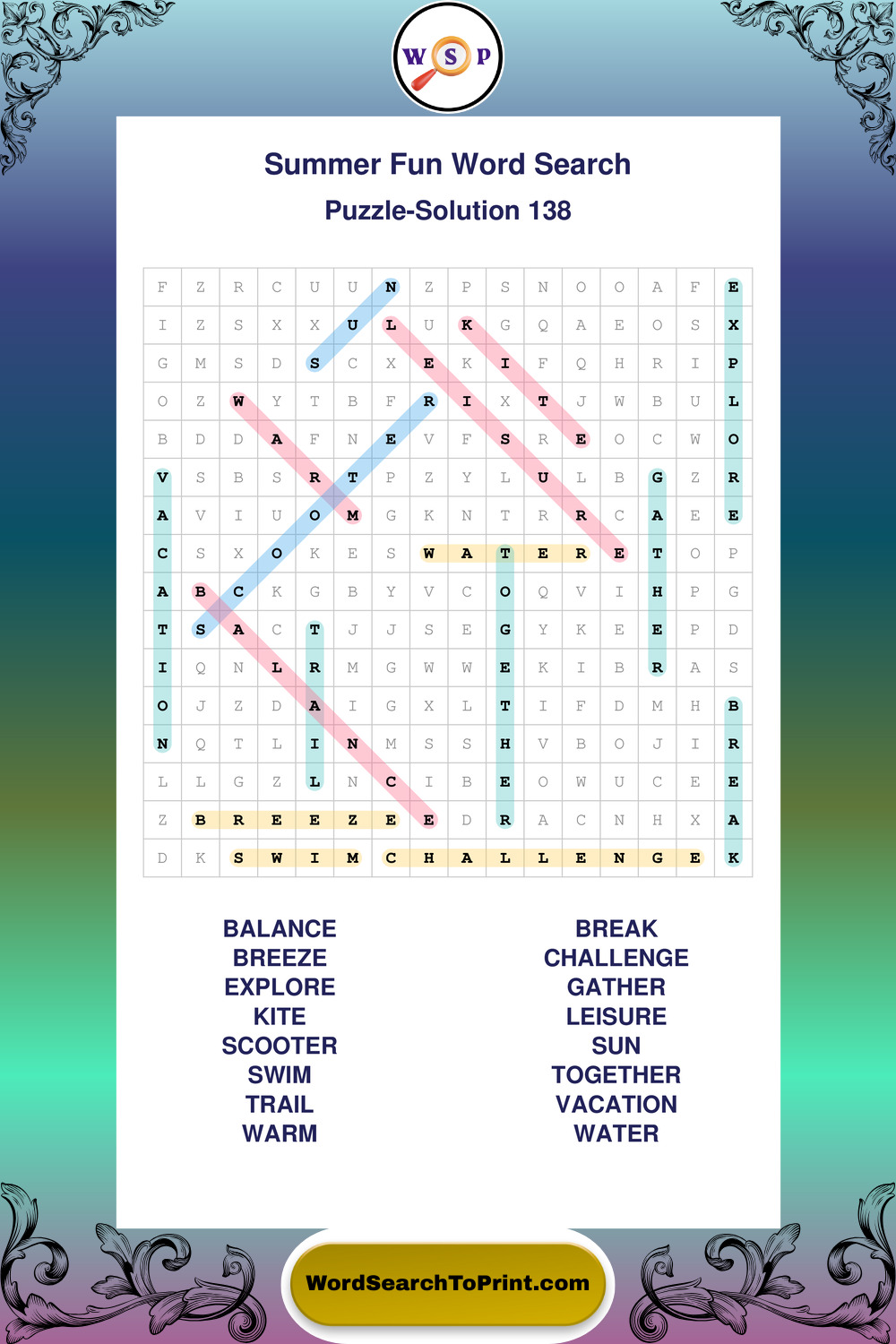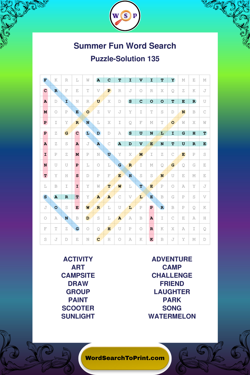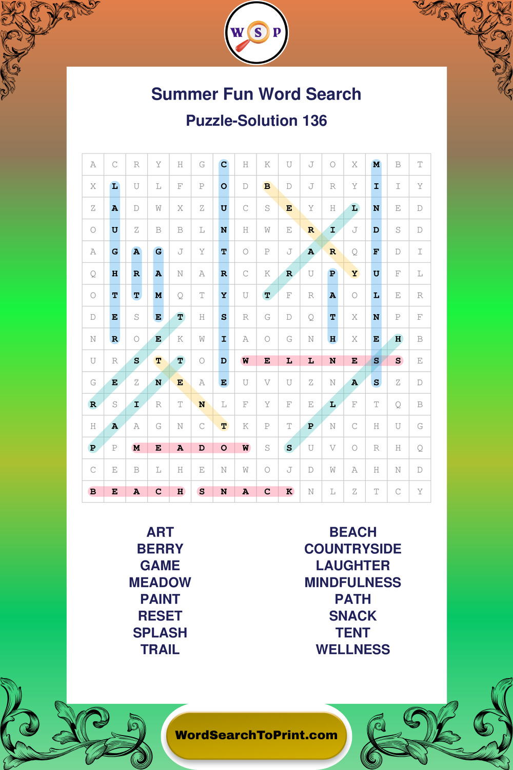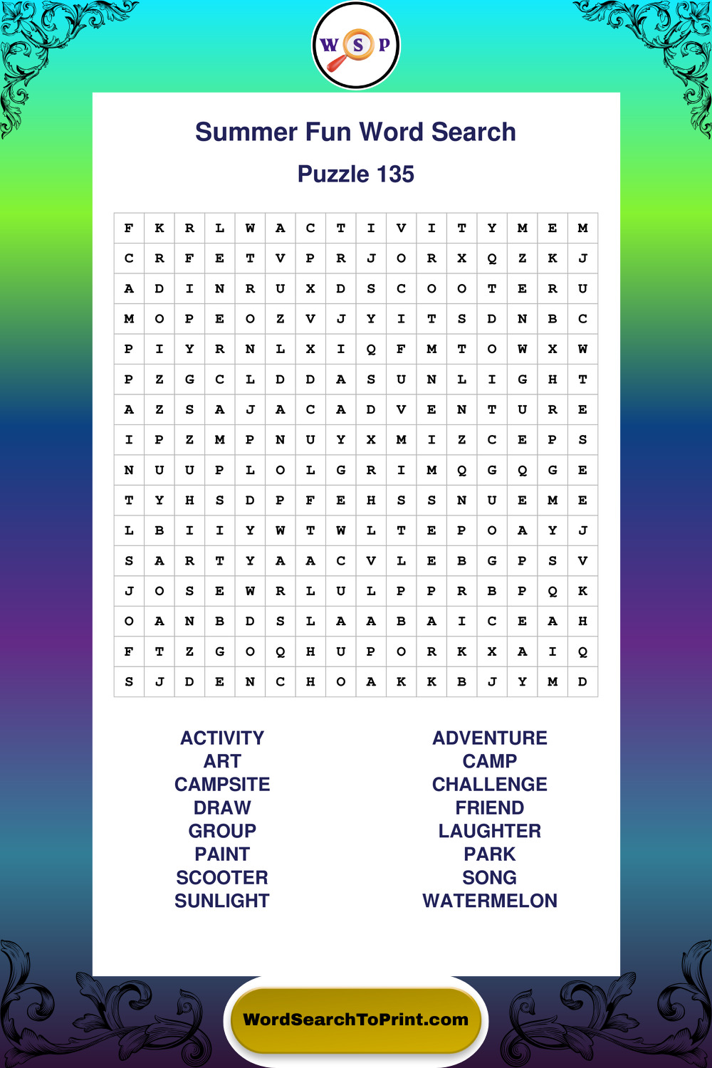 Enjoy large print Summer Fun wordsearches that balance clarity, simplicity, and enjoyable mental activity.