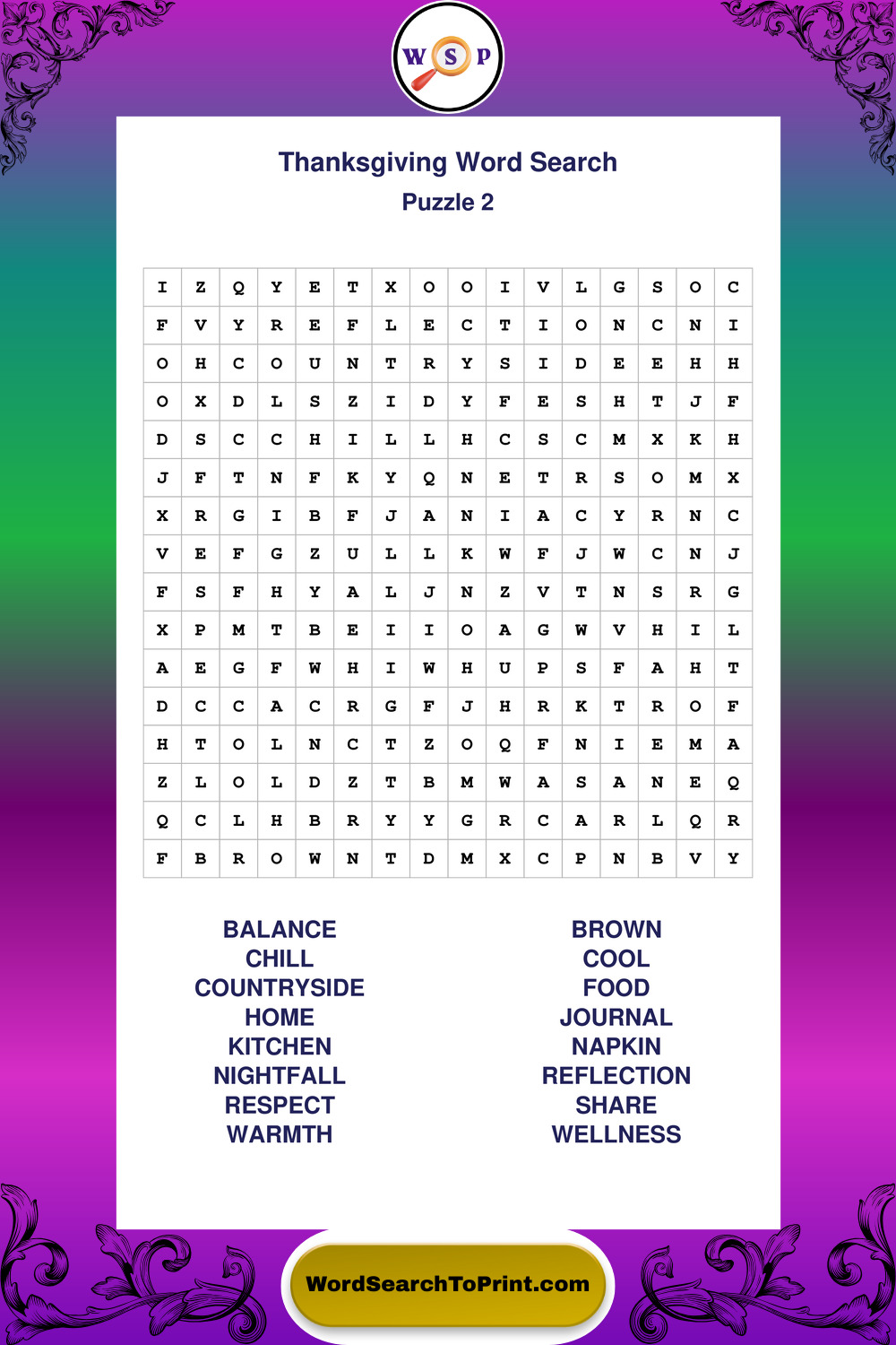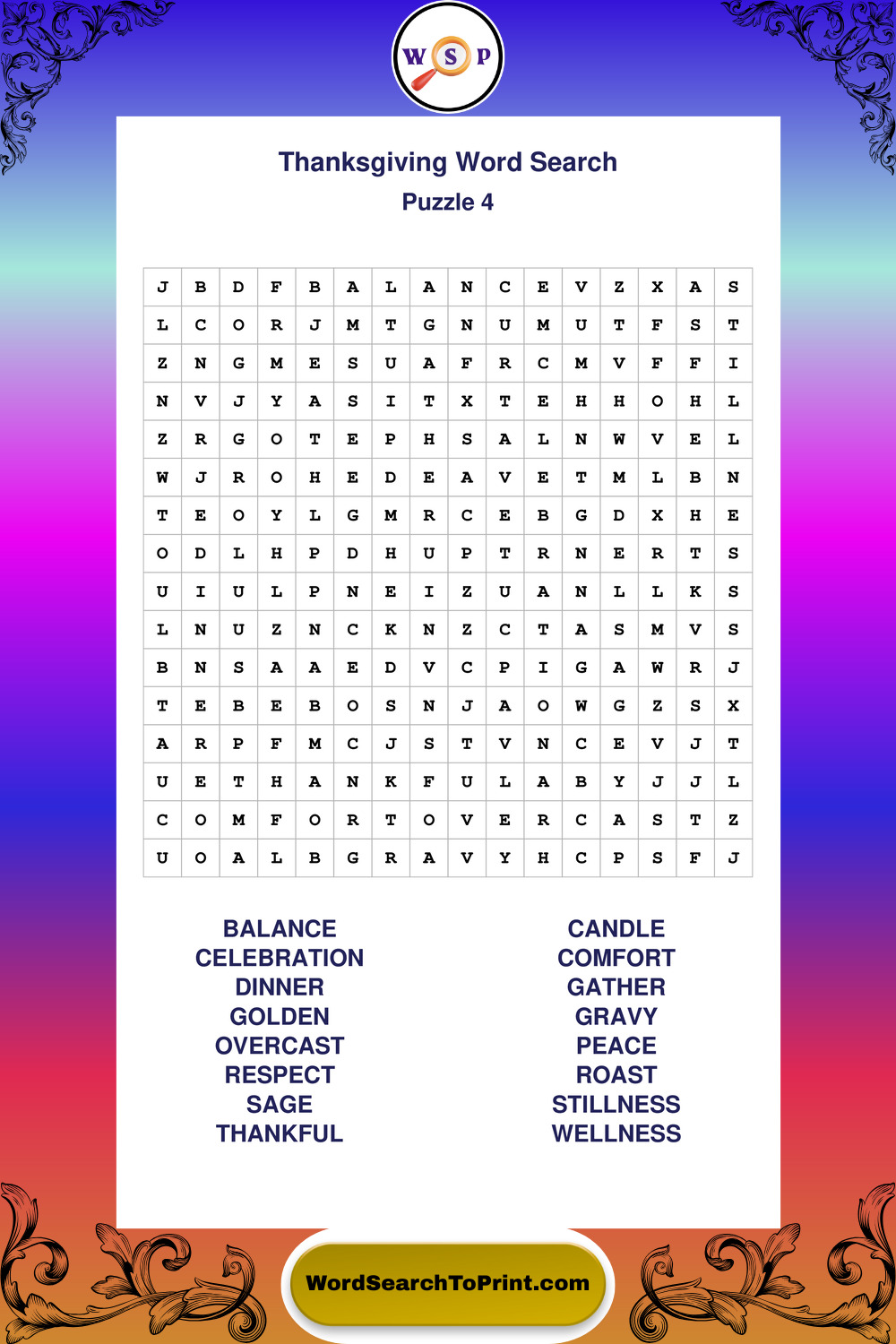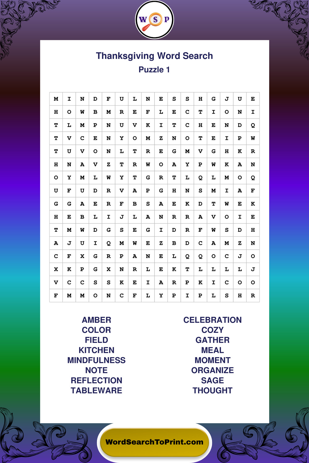 Enjoy large print Thanksgiving wordsearches that balance clarity, simplicity, and enjoyable mental activity.