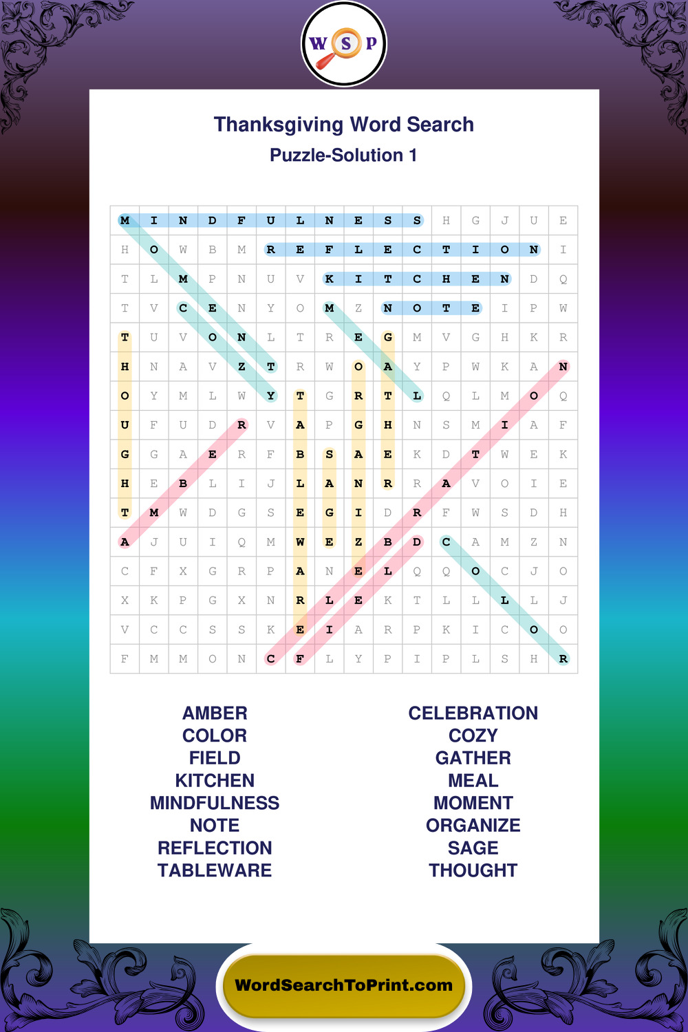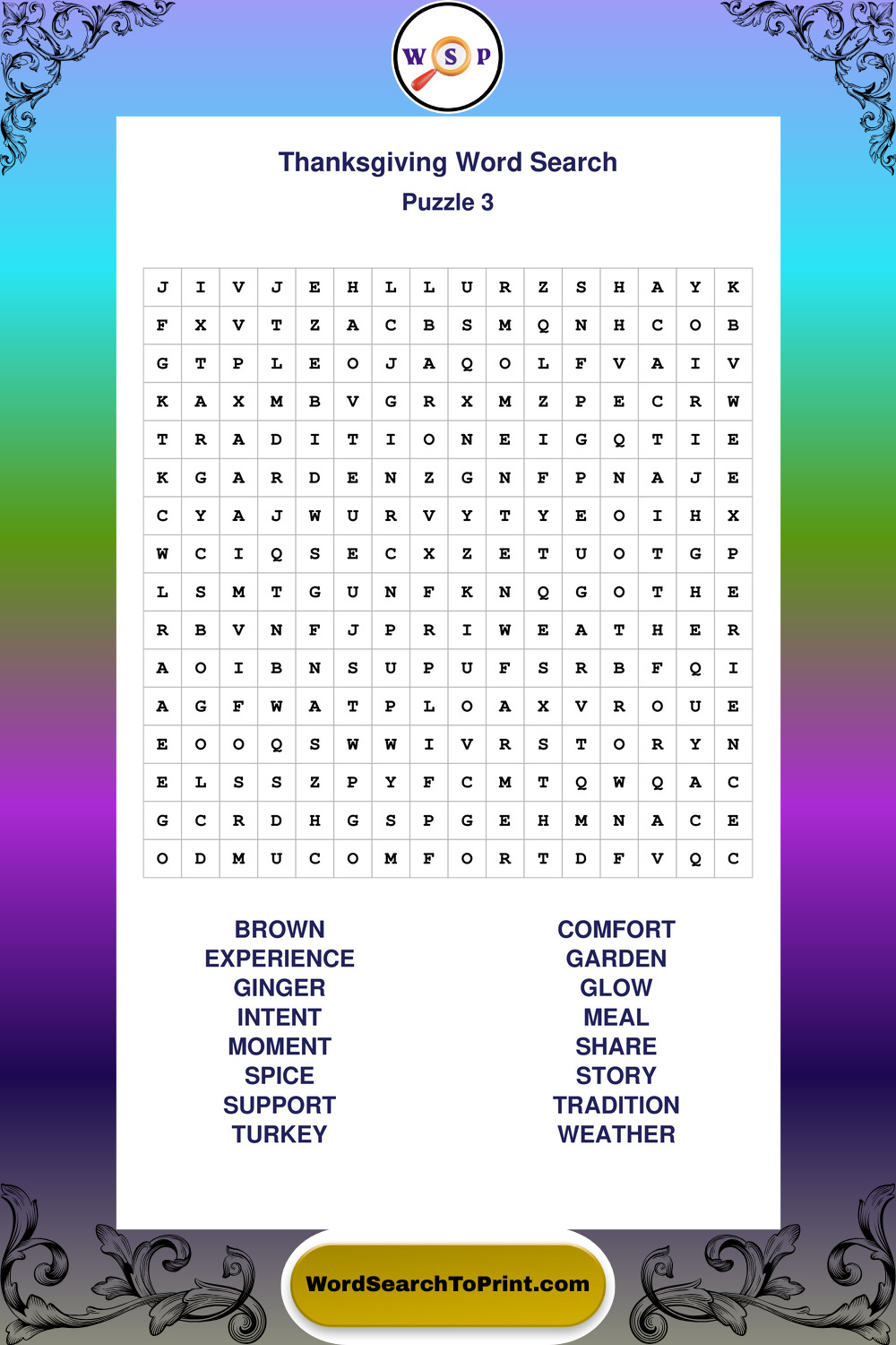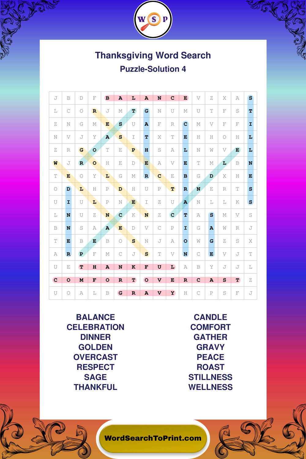 Enjoy large print Thanksgiving wordsearches that balance clarity, simplicity, and enjoyable mental activity.