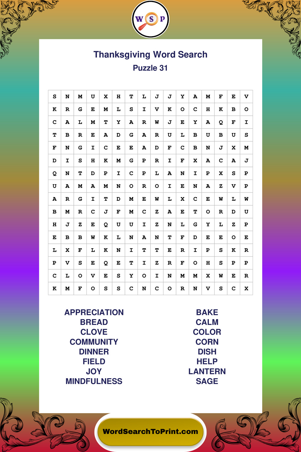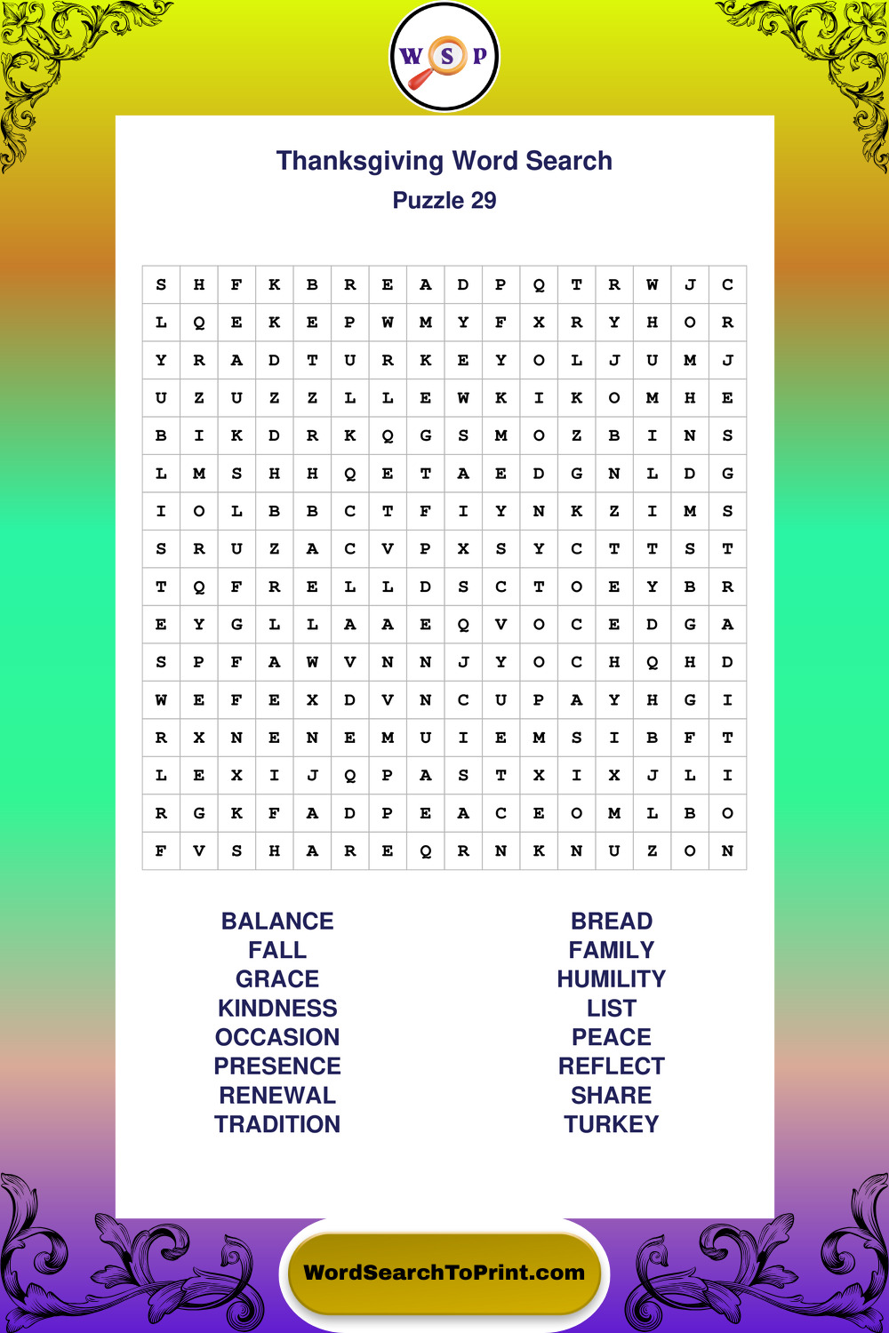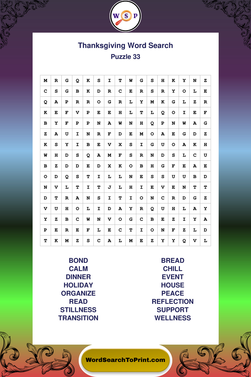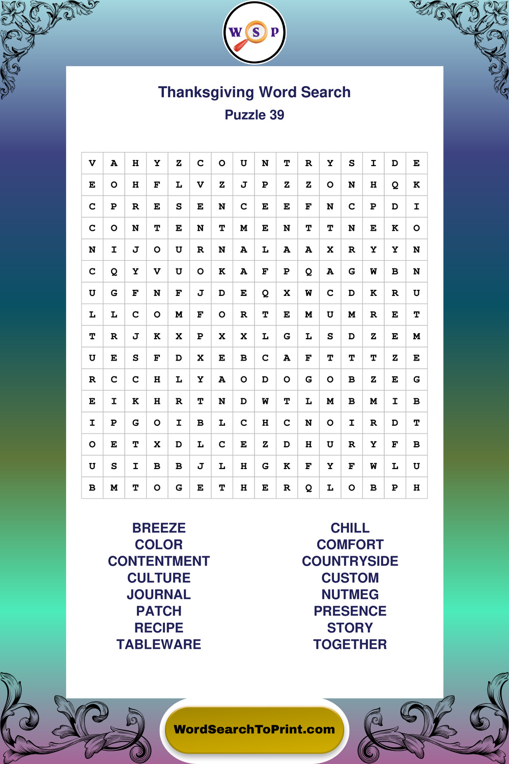 Enjoy large print Thanksgiving wordsearches that balance clarity, simplicity, and enjoyable mental activity.