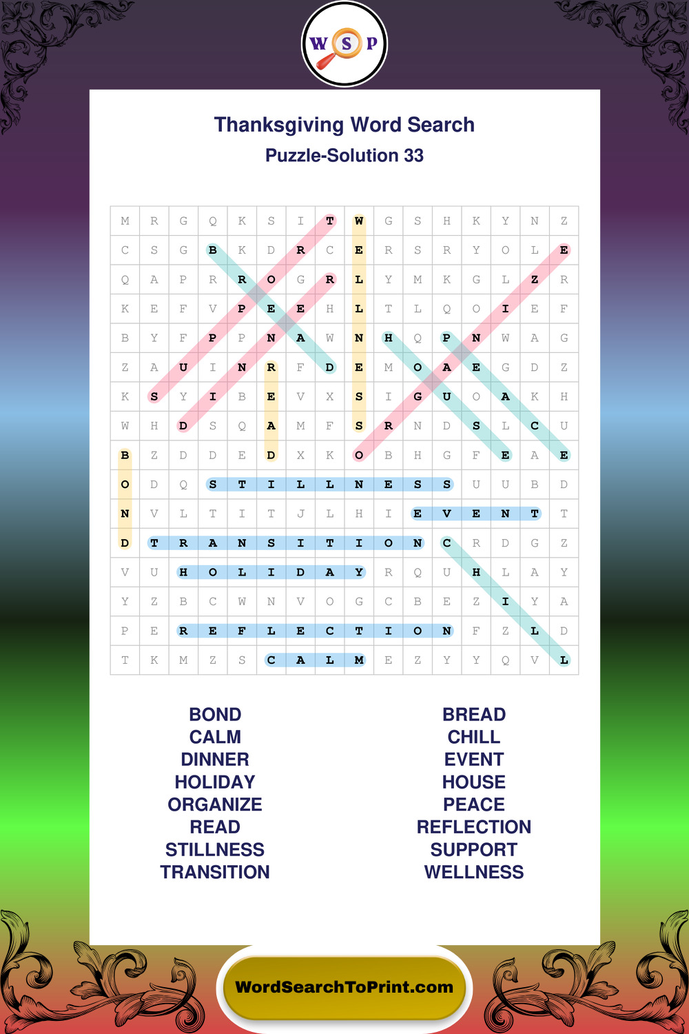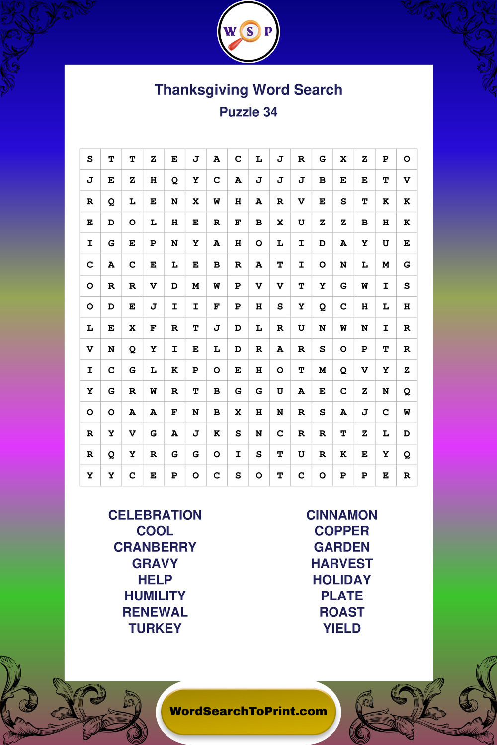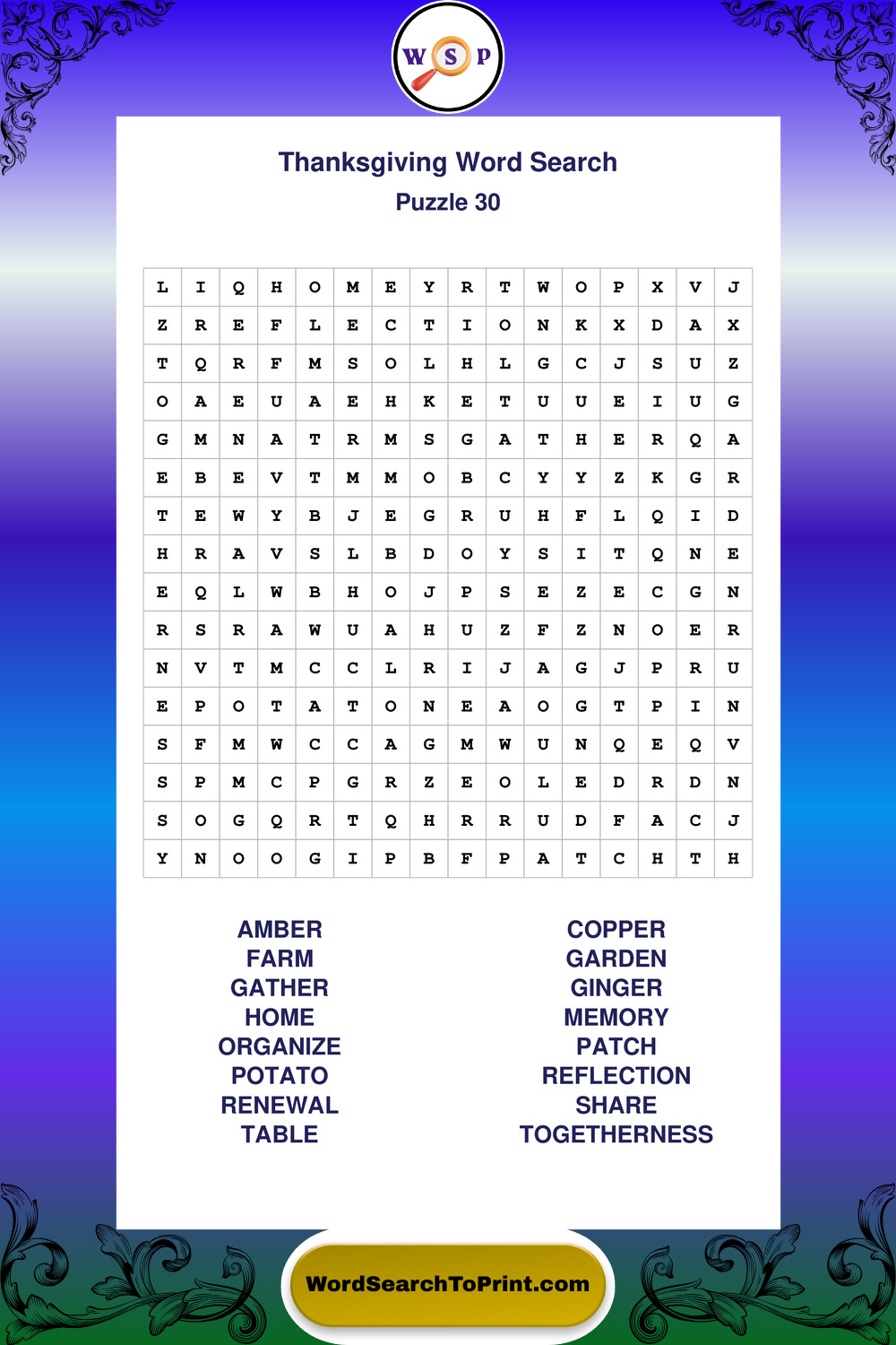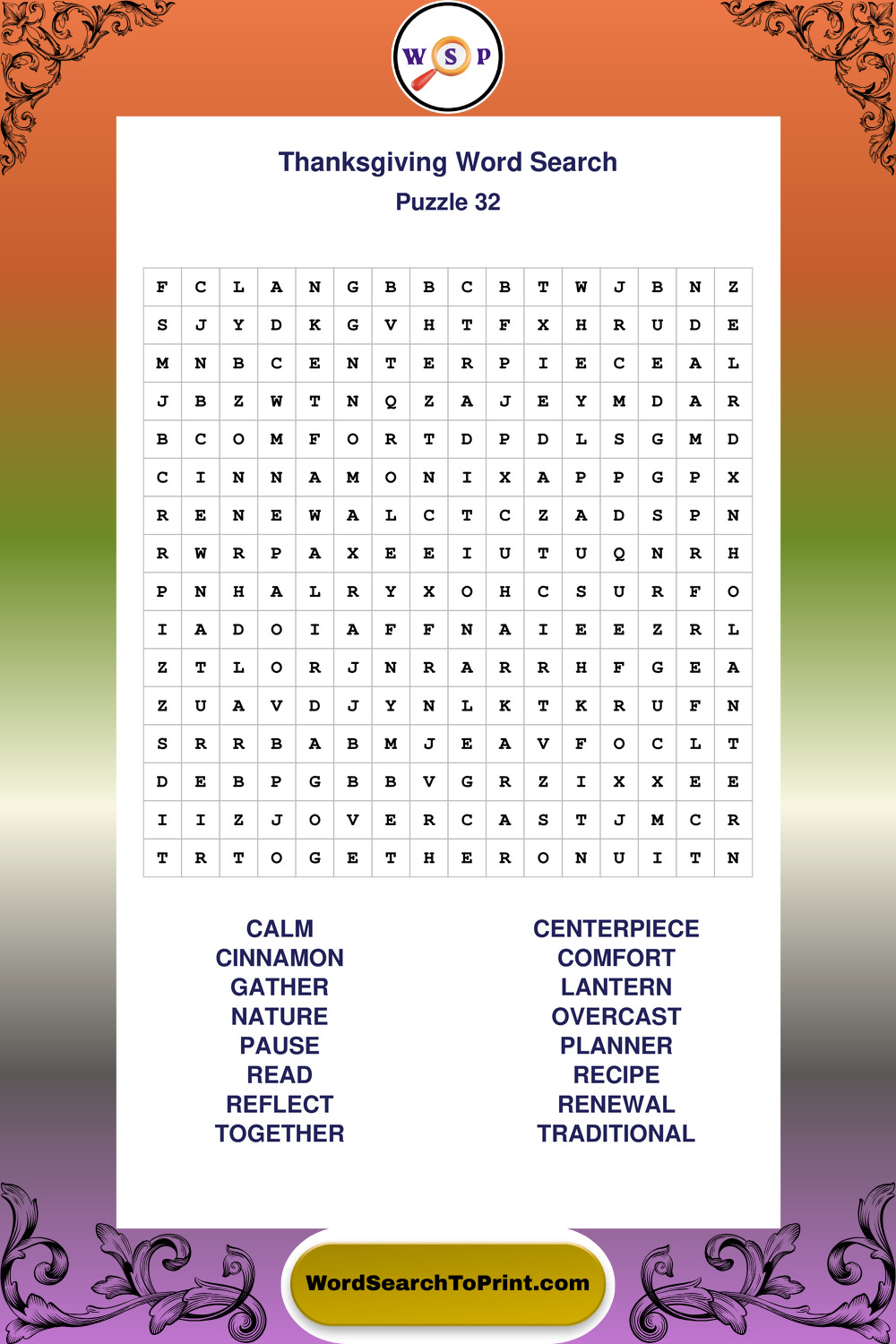 Enjoy large print Thanksgiving wordsearches that balance clarity, simplicity, and enjoyable mental activity.