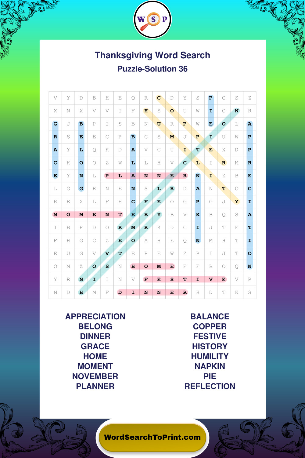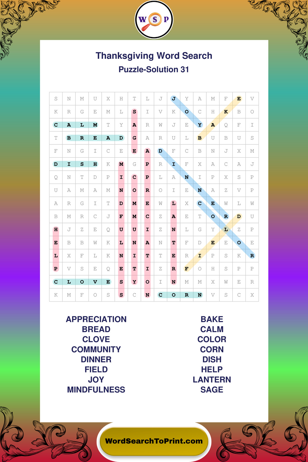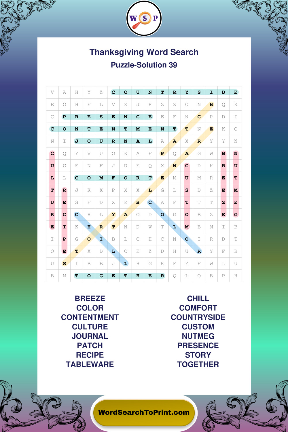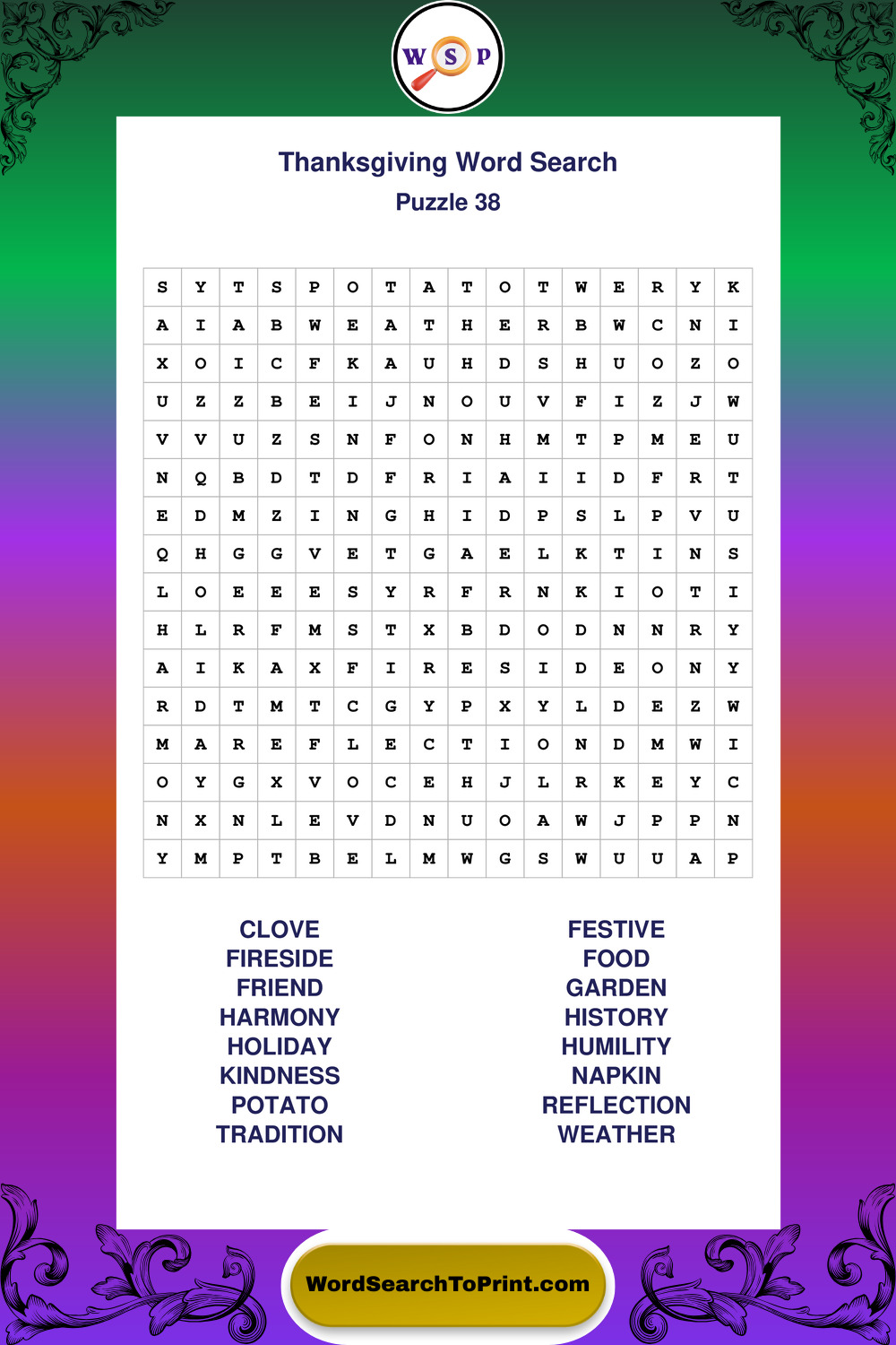 Enjoy large print Thanksgiving wordsearches that balance clarity, simplicity, and enjoyable mental activity.