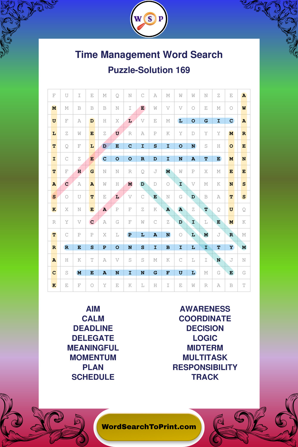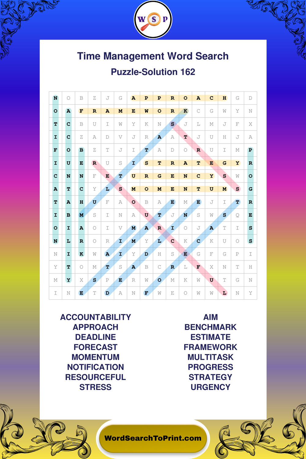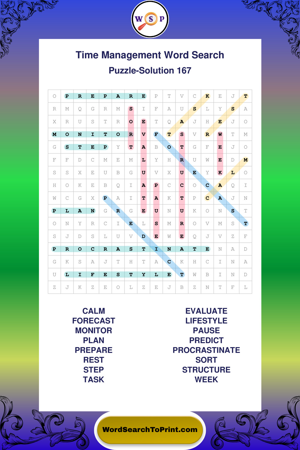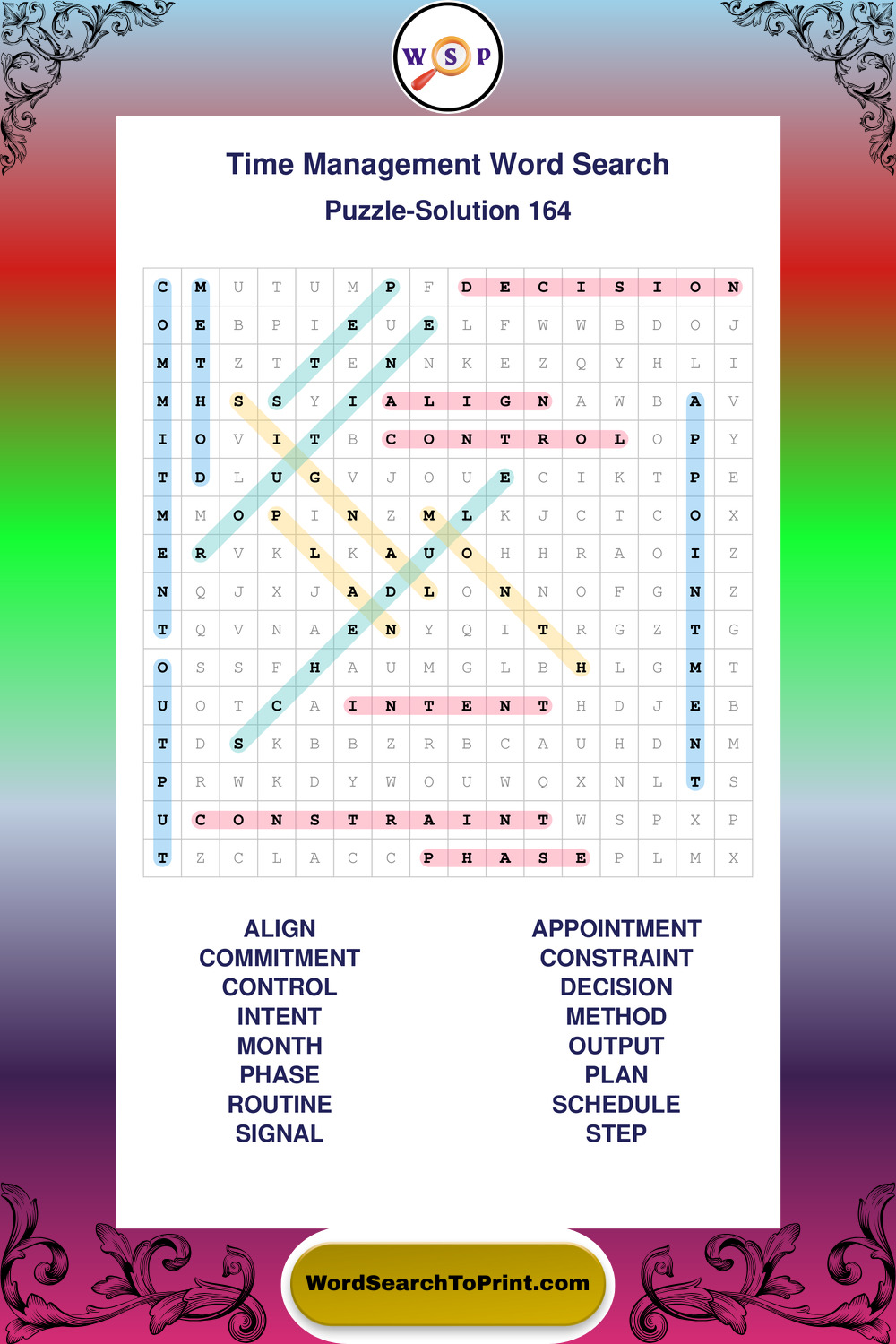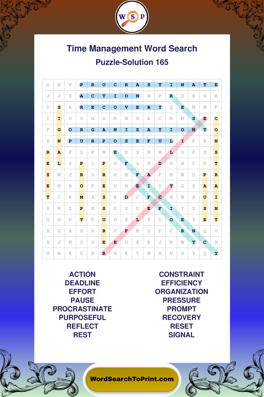 Discover large print Time Management wordsearches designed to support relaxed thinking and comfortable reading.