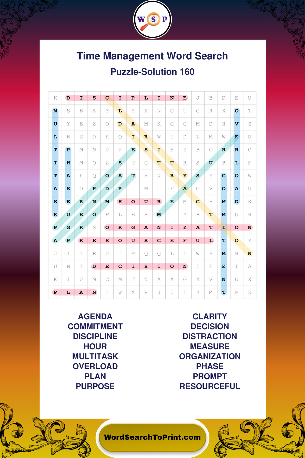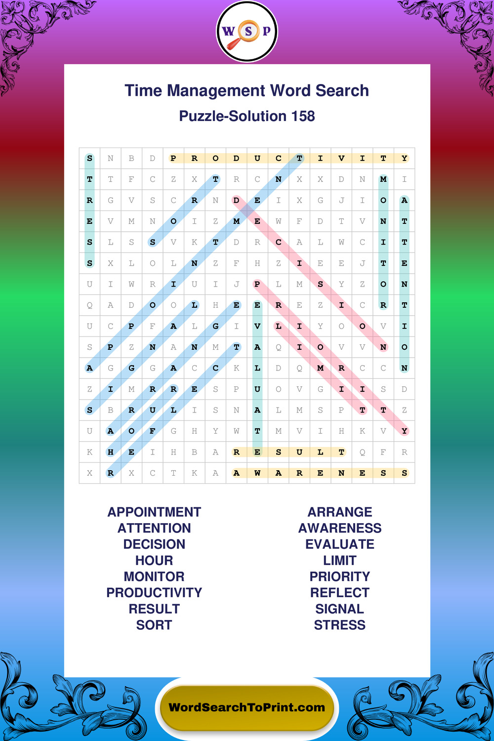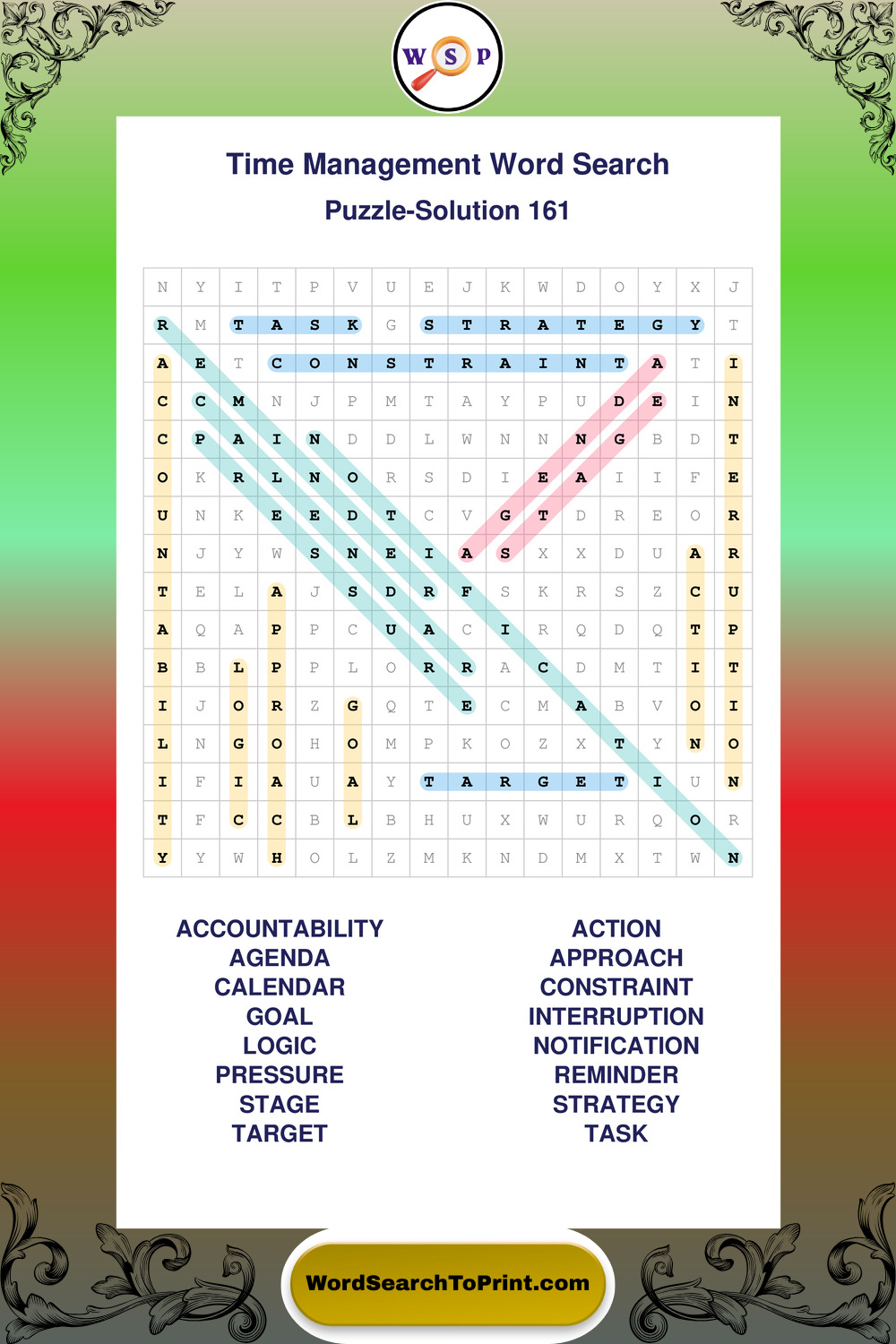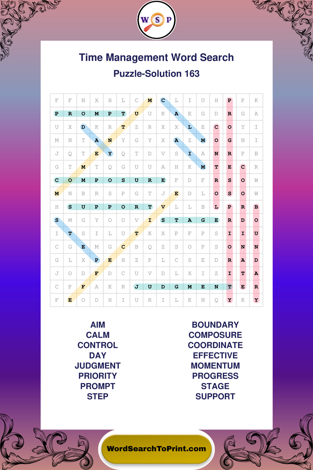 Discover large print Time Management wordsearches designed to support relaxed thinking and comfortable reading.
