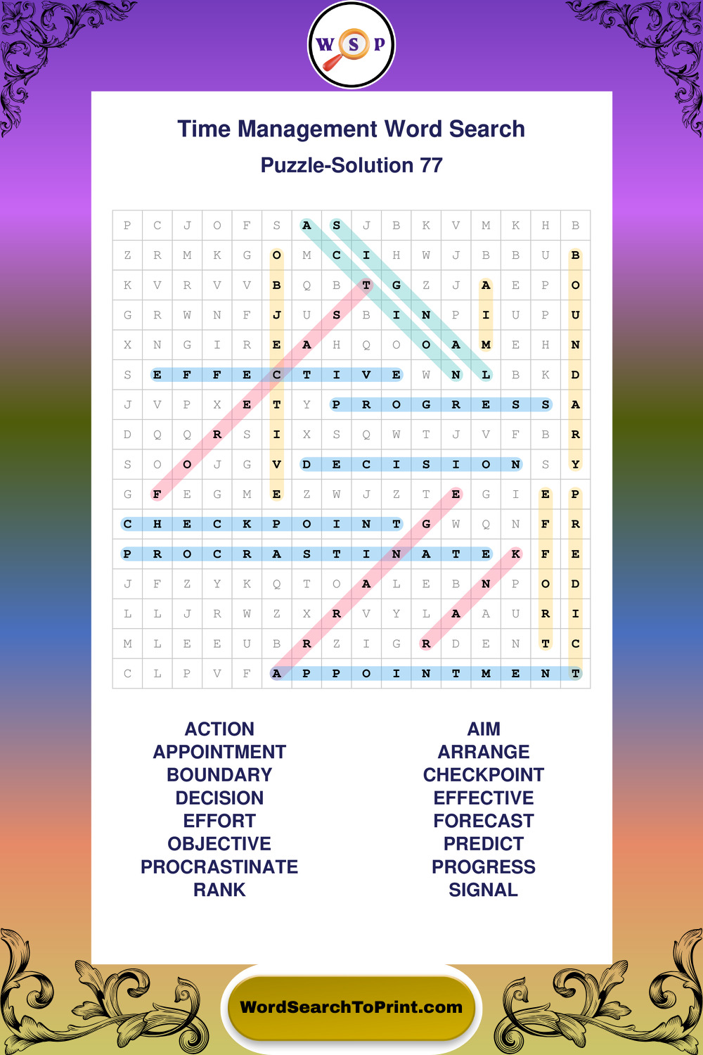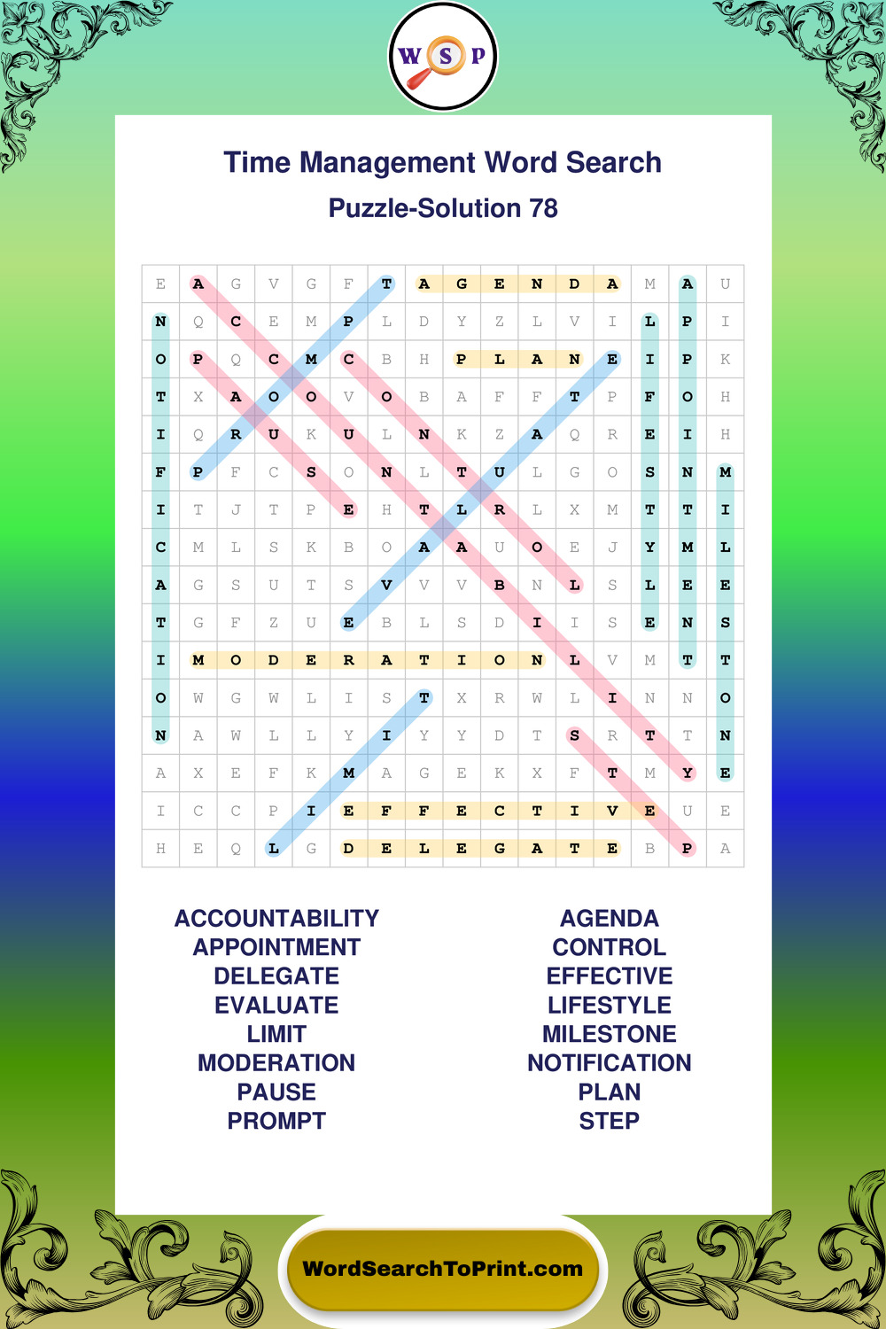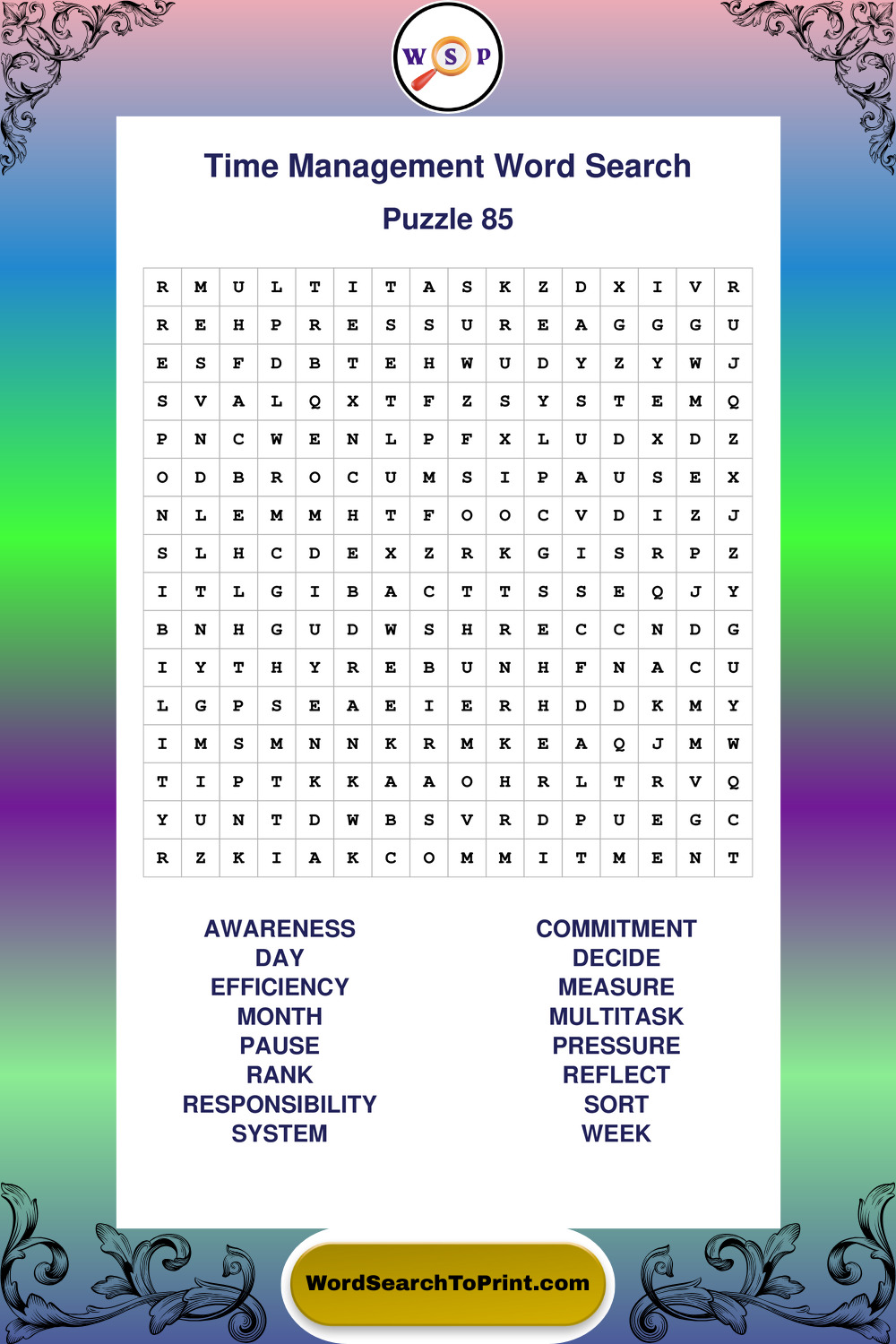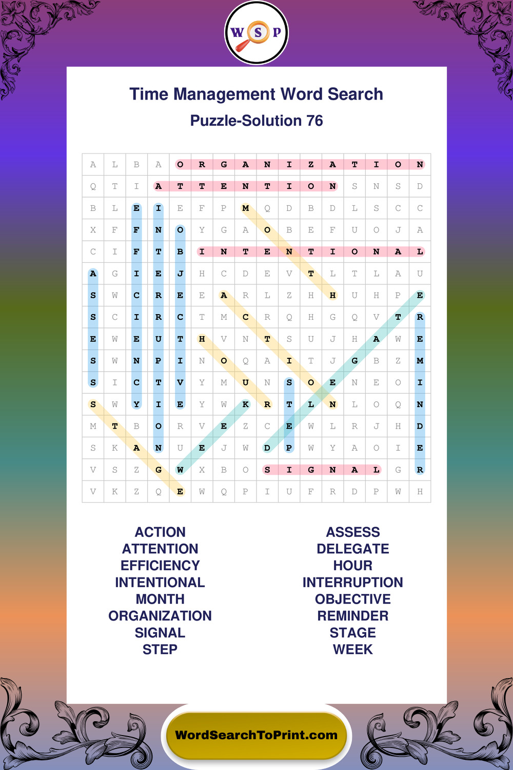 Discover large print Time Management wordsearches designed to support relaxed thinking and comfortable reading.