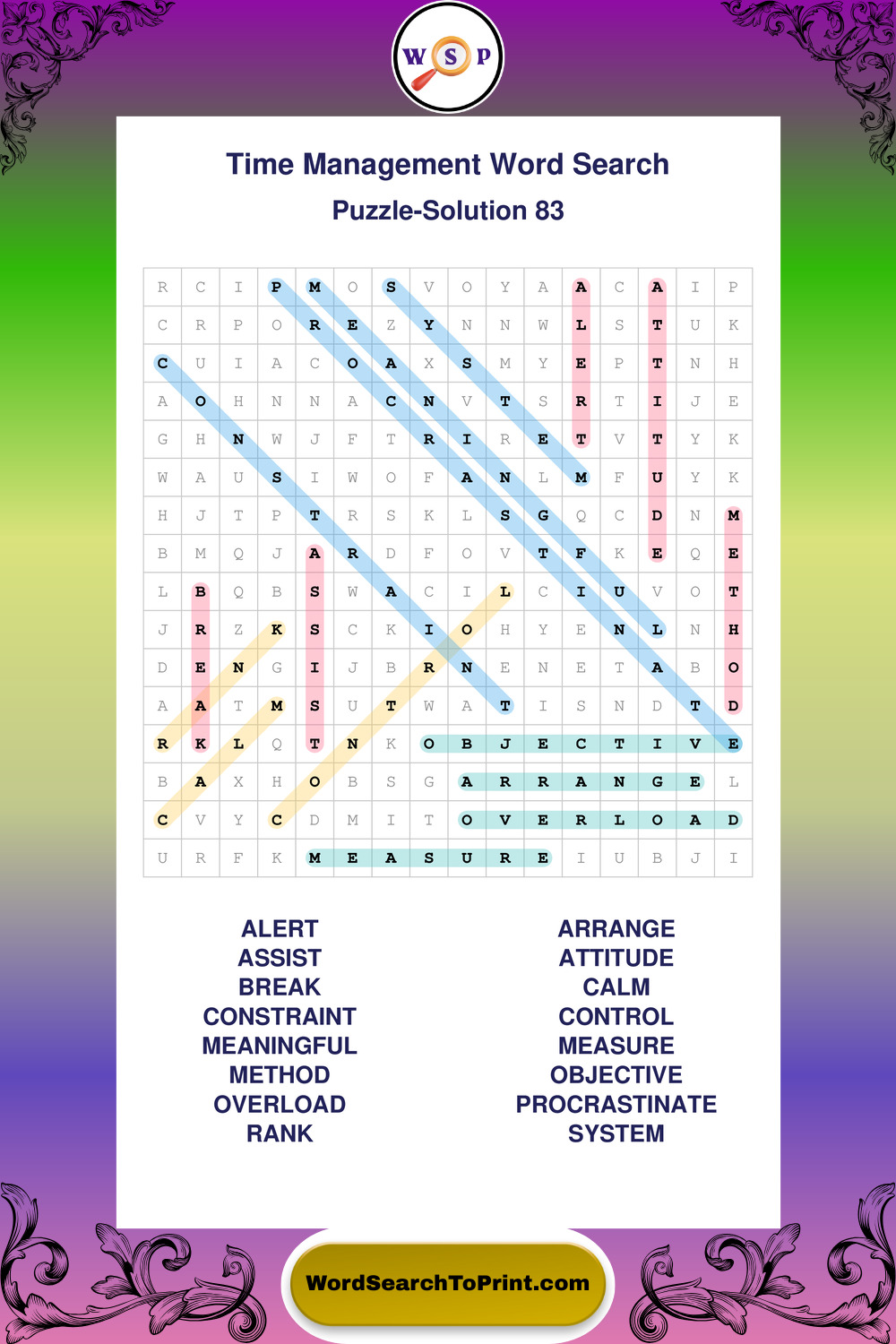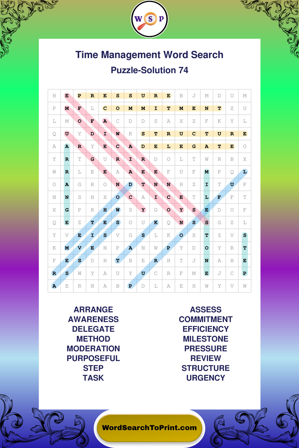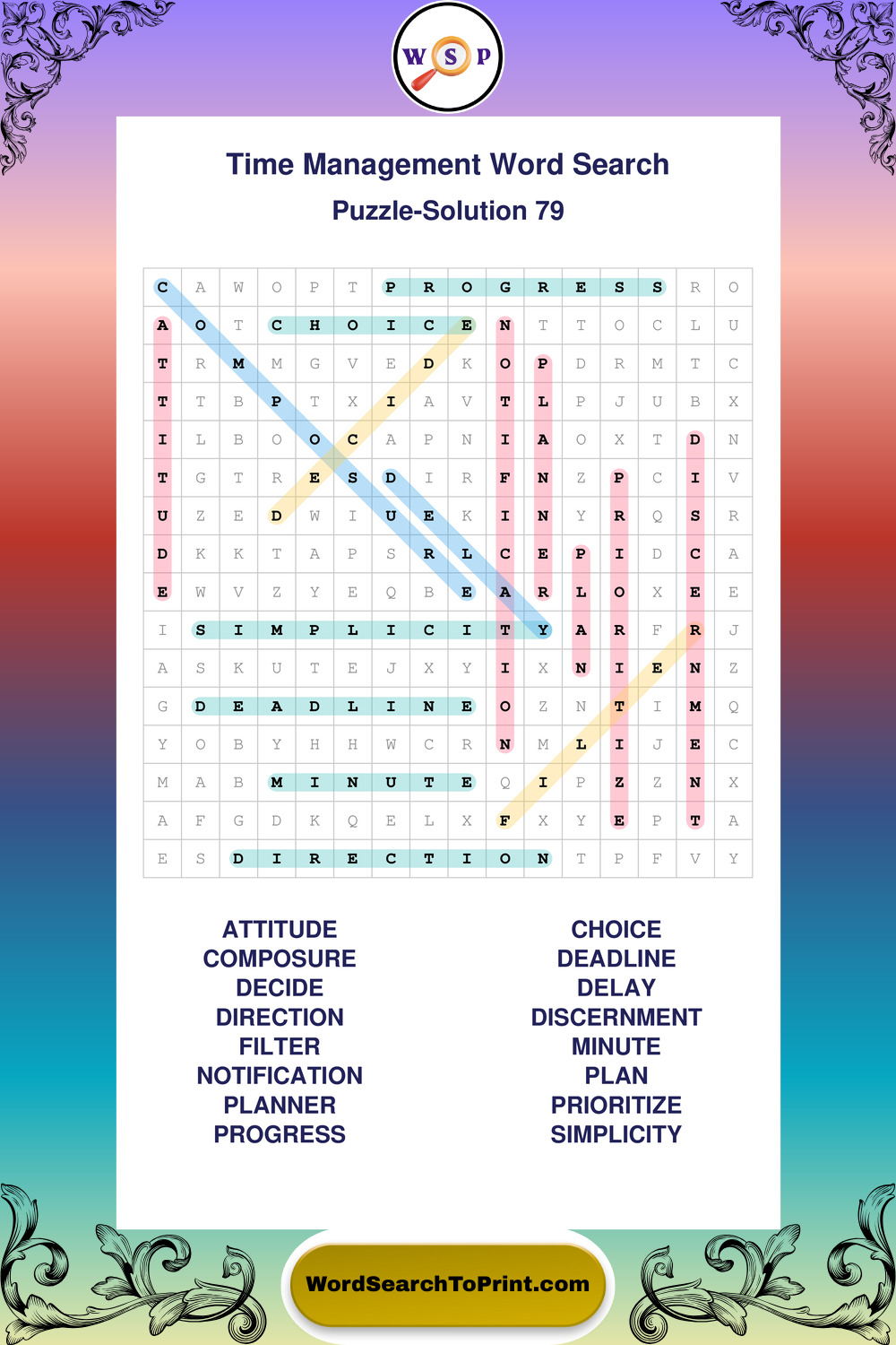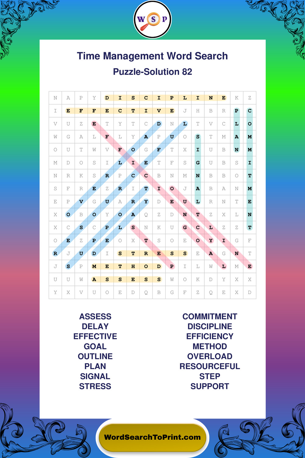 Discover large print Time Management wordsearches designed to support relaxed thinking and comfortable reading.