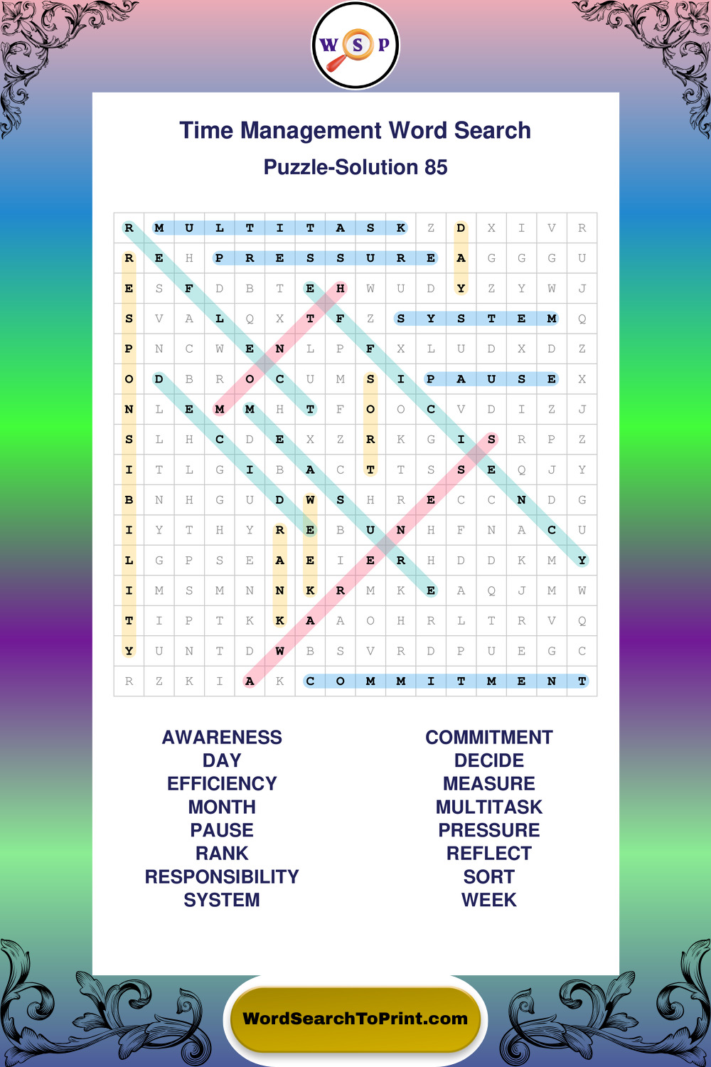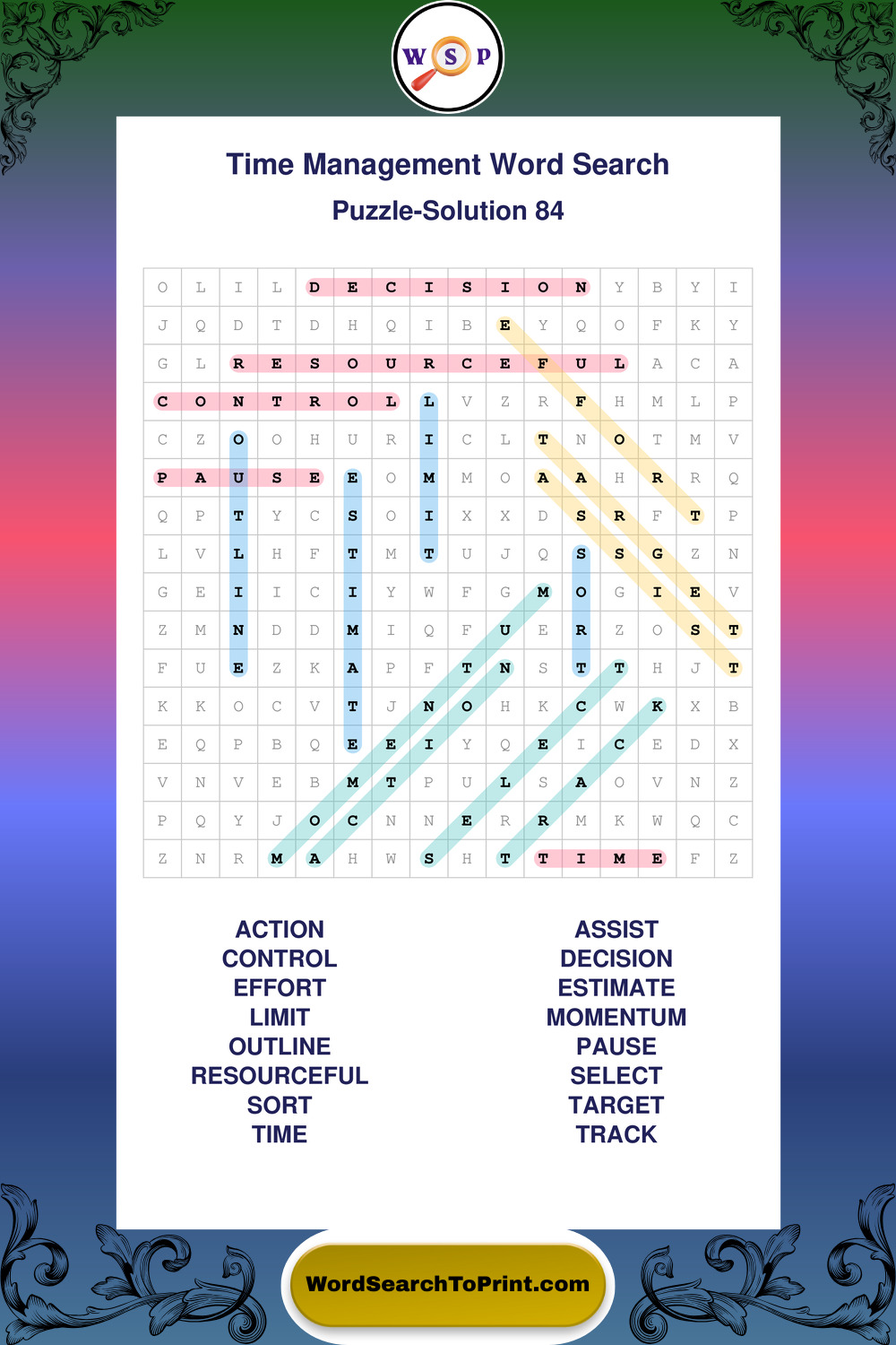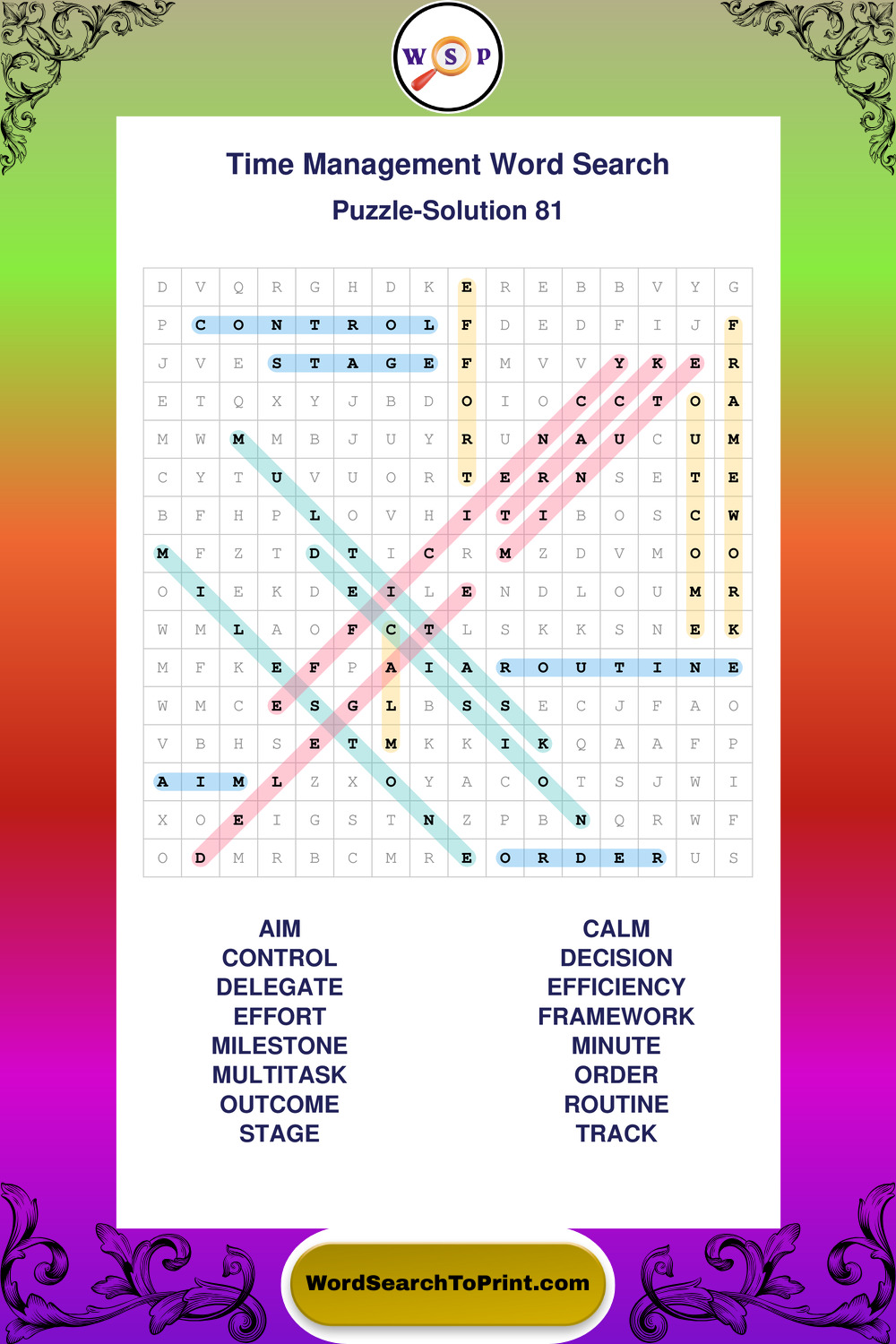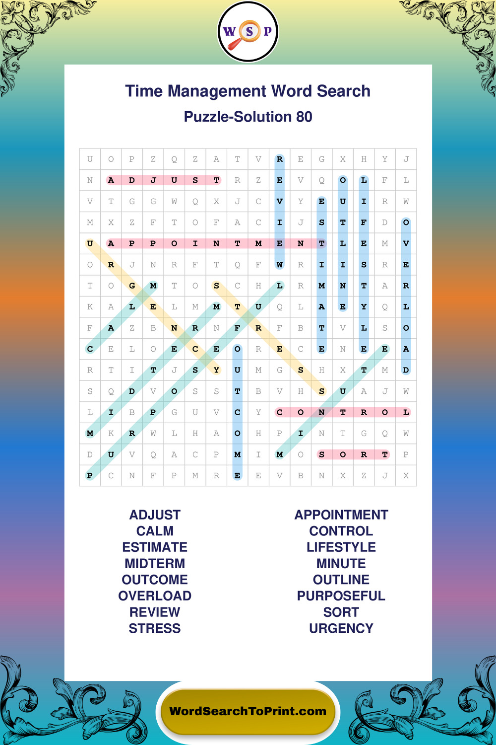 Discover large print Time Management wordsearches designed to support relaxed thinking and comfortable reading.
