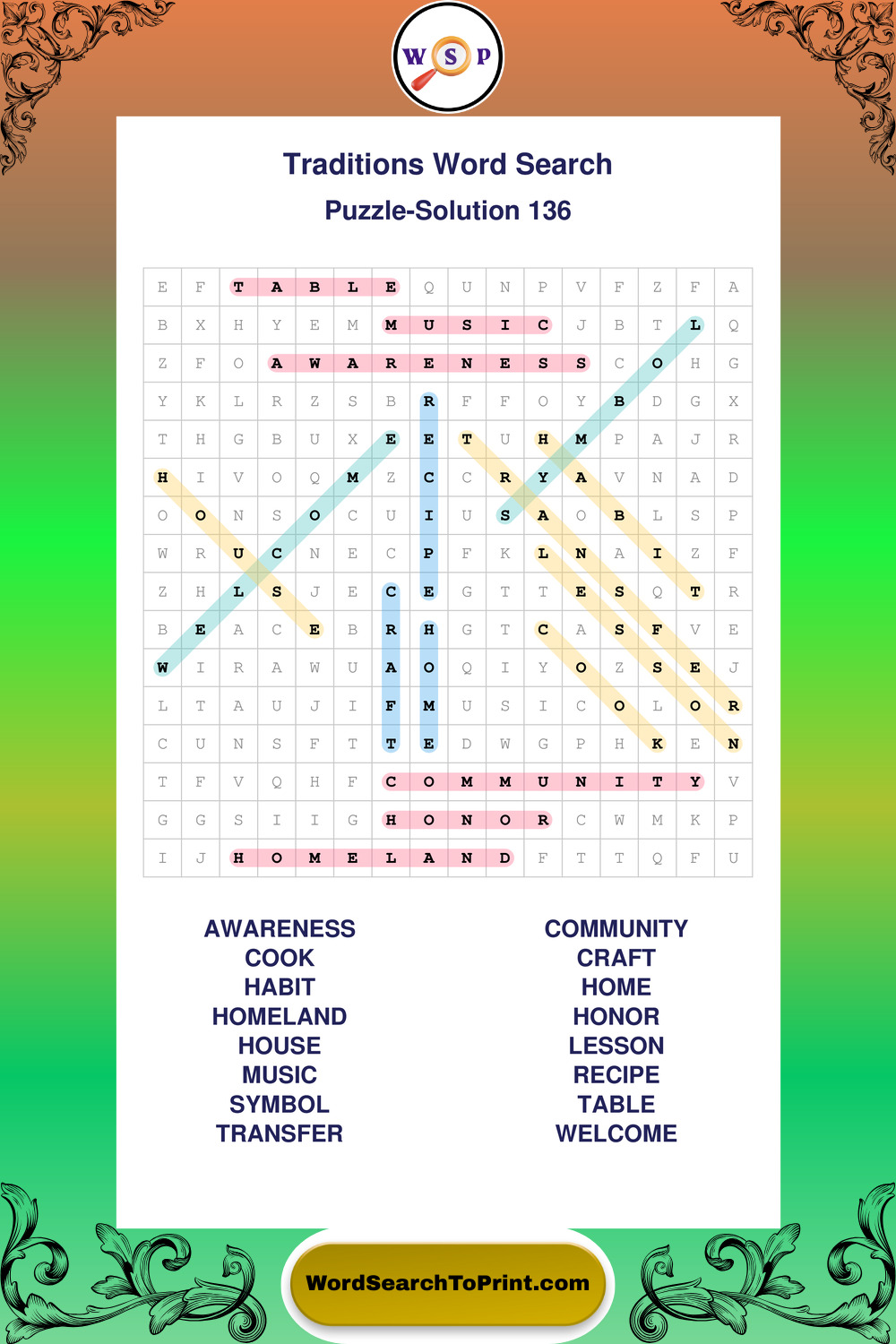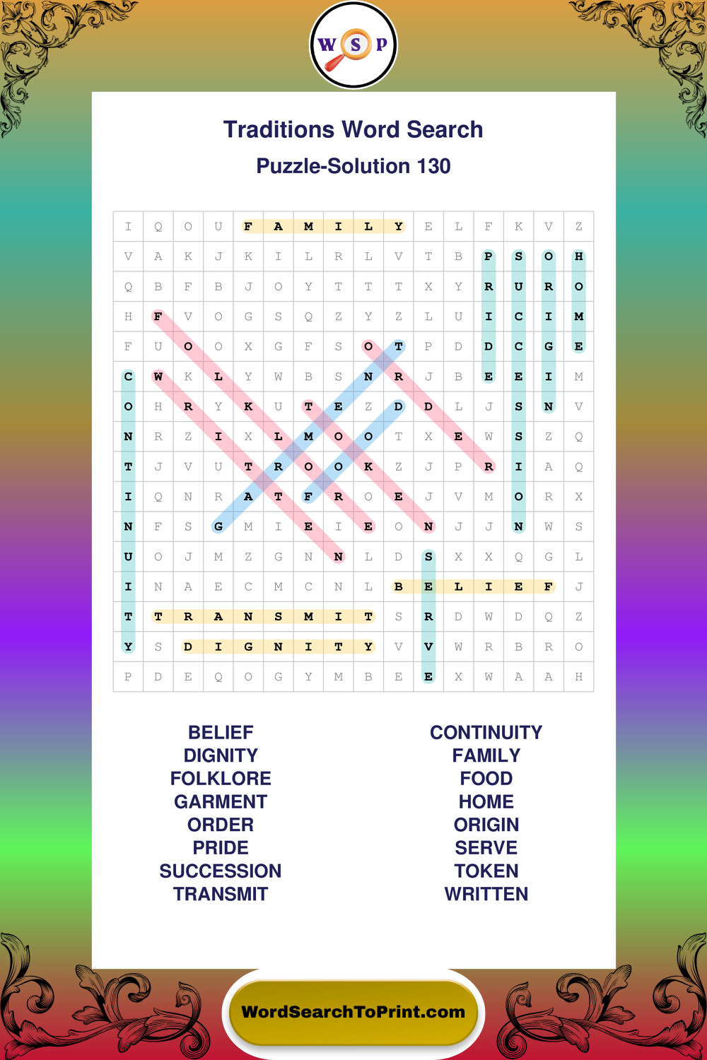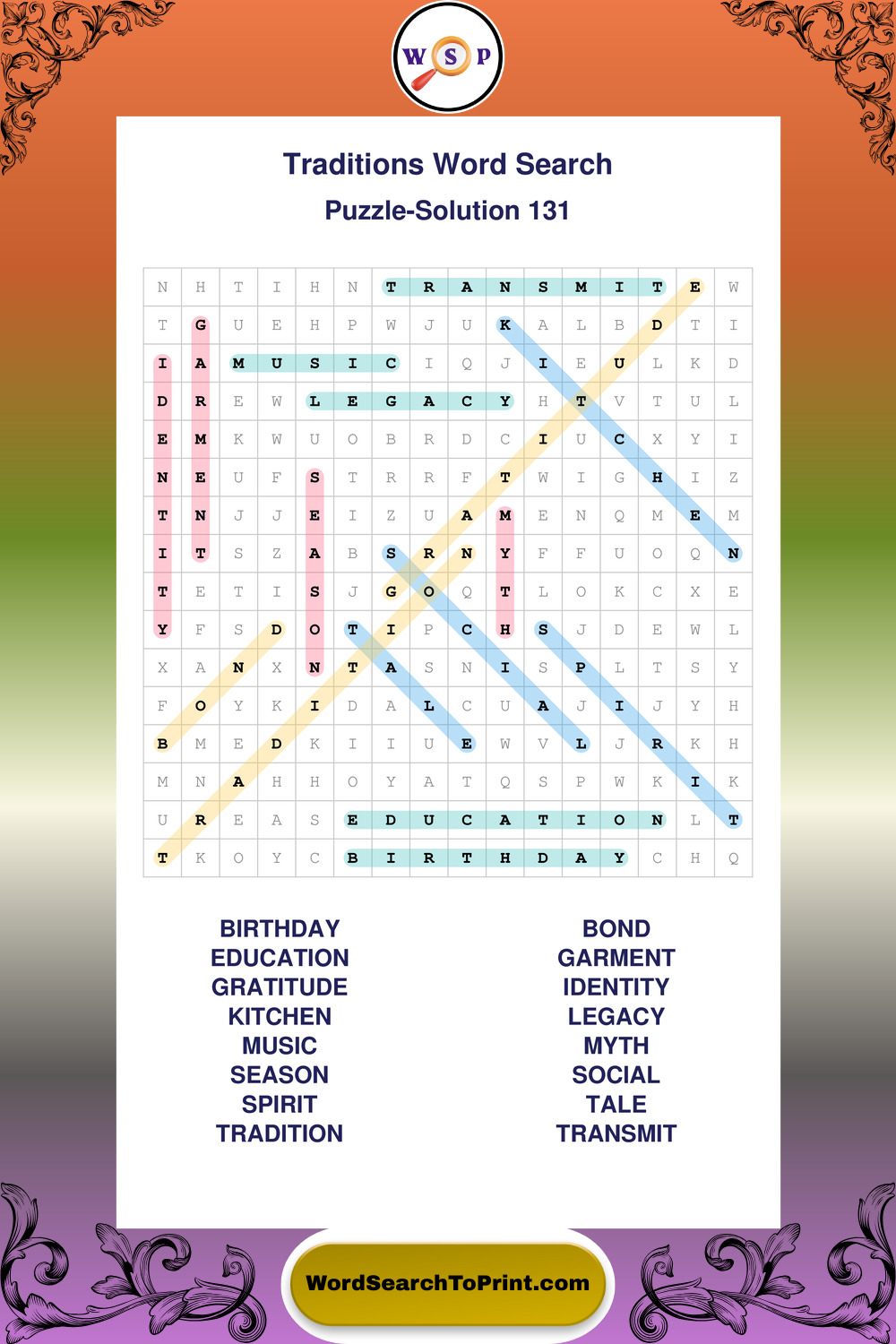 Traditions Wordsearches