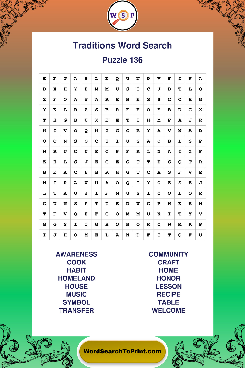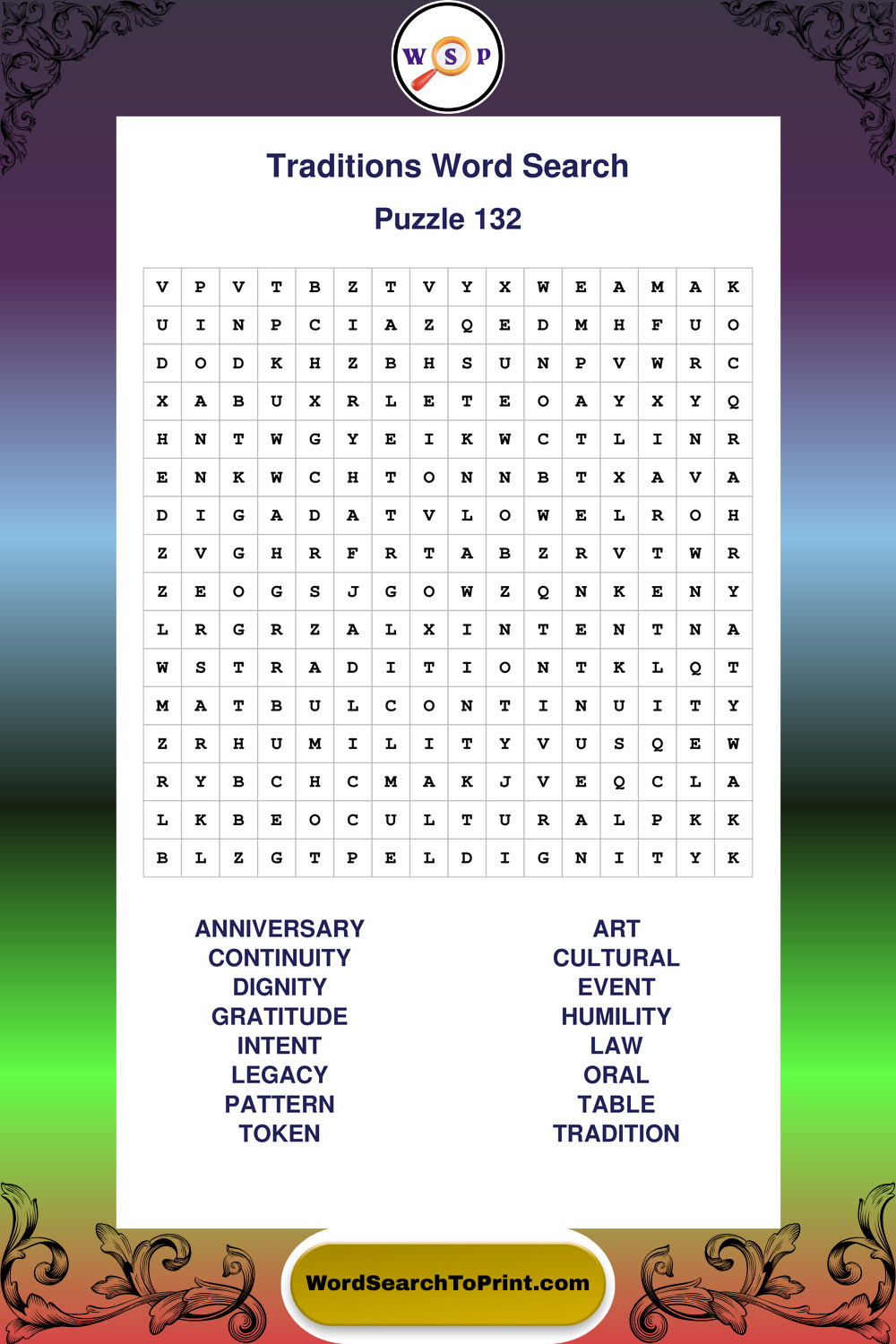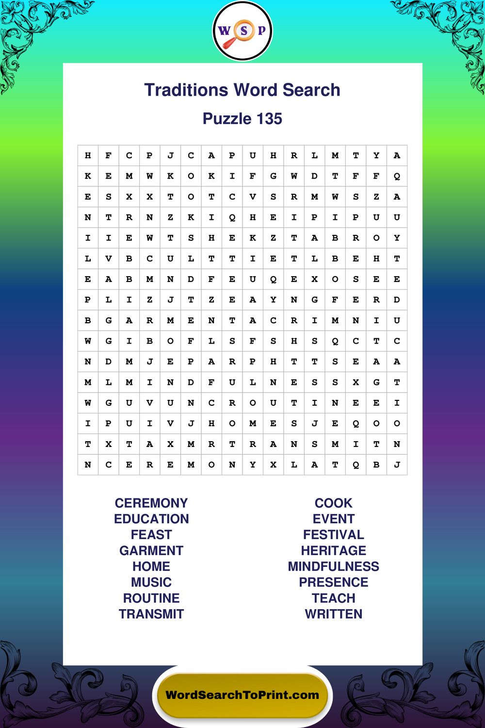 Printable Traditions Wordsearch Puzzles