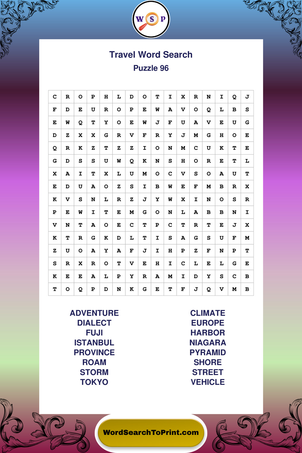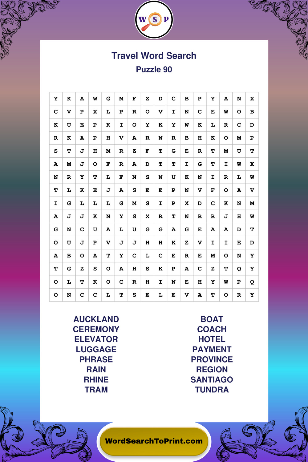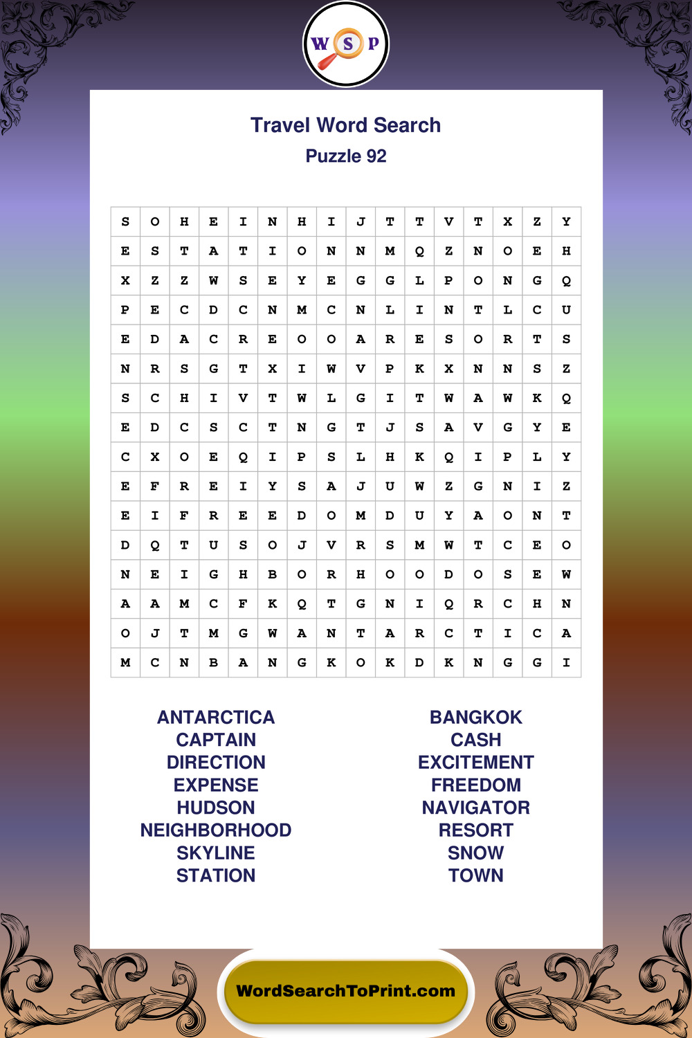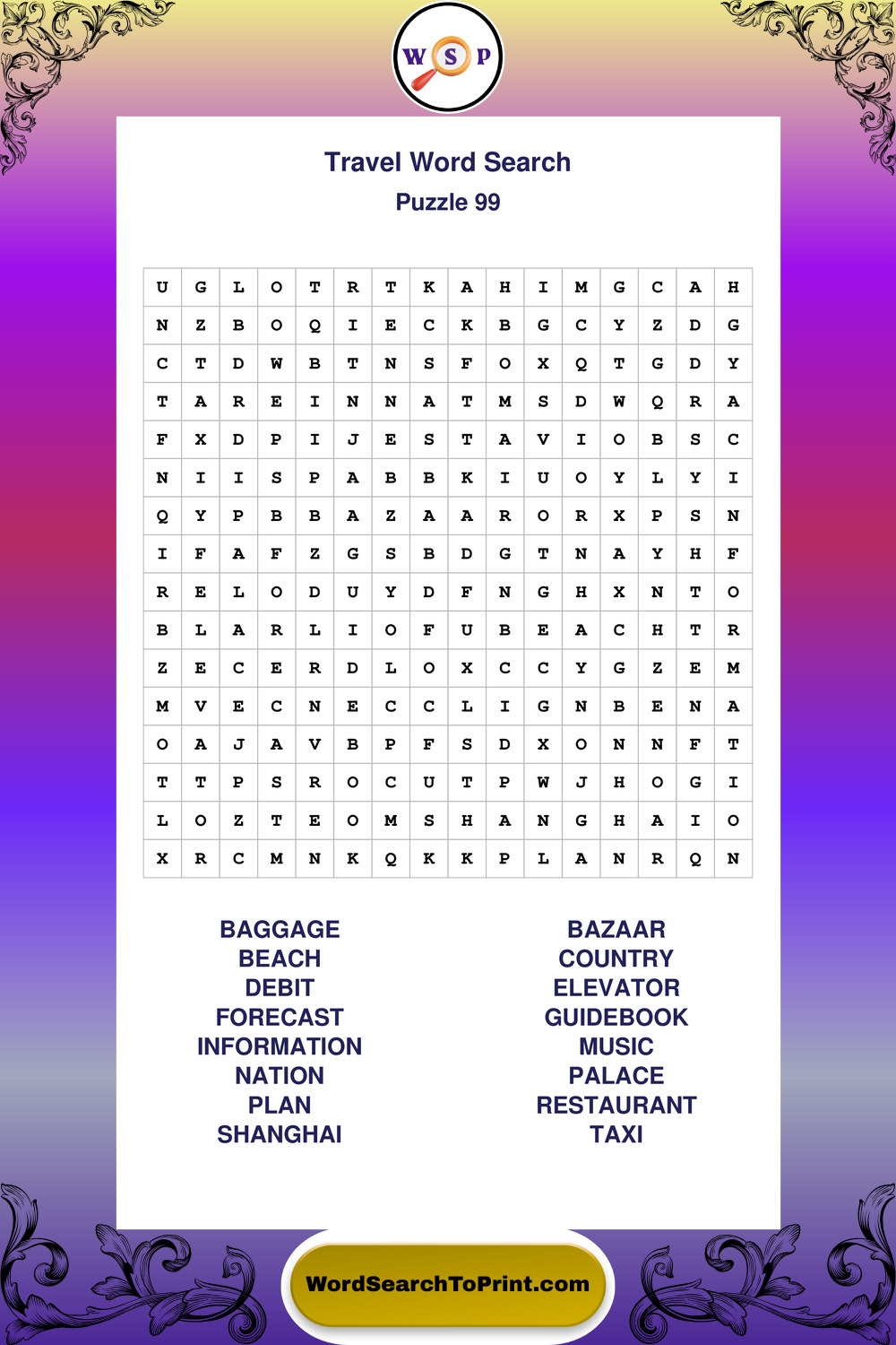 Printable Travel Wordsearch Puzzles