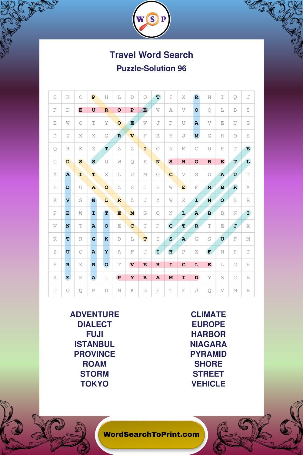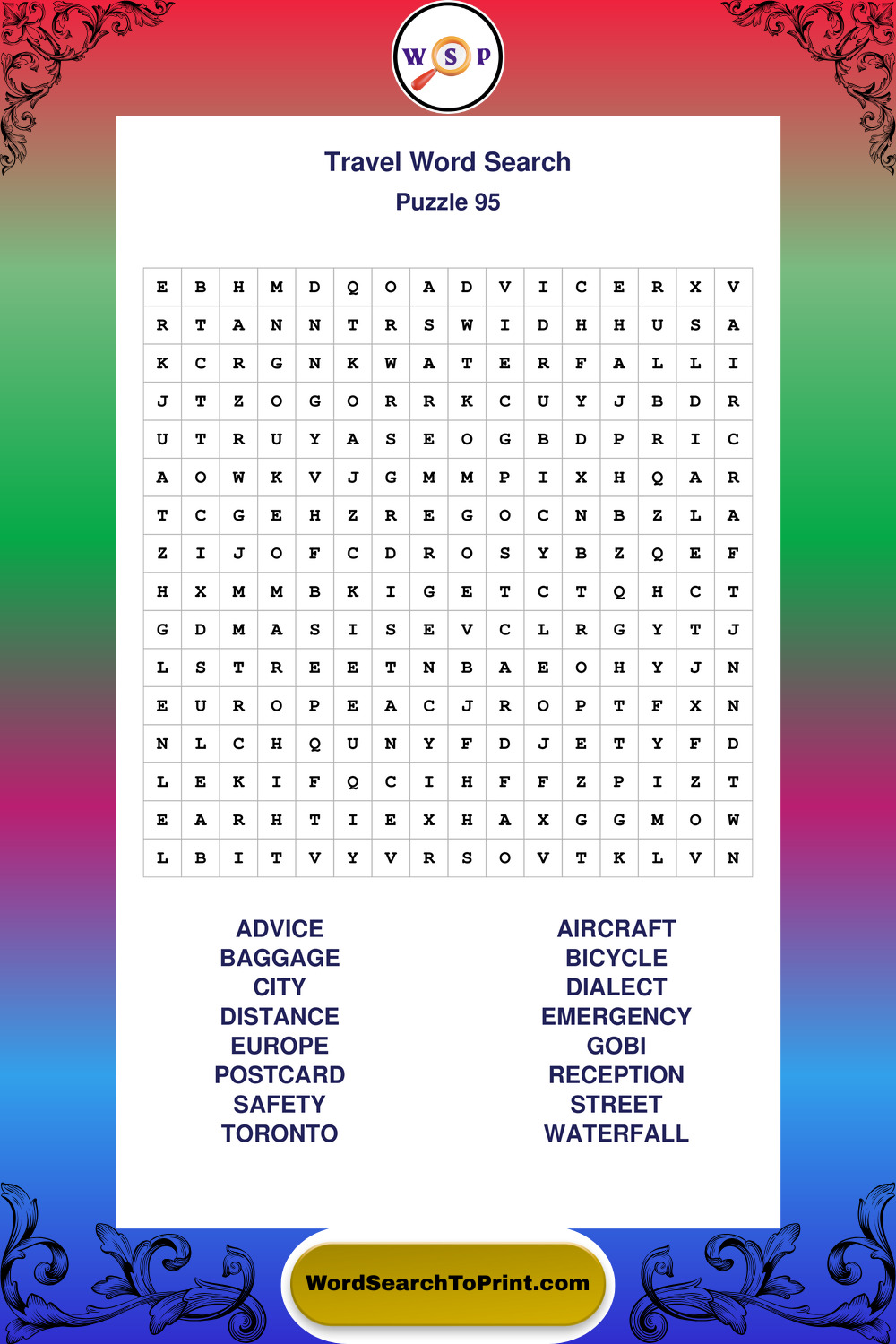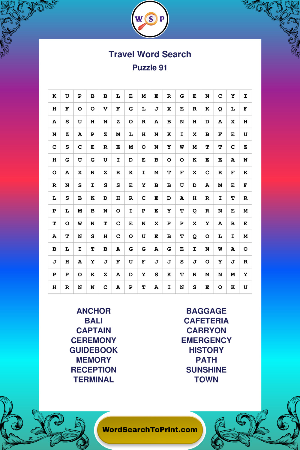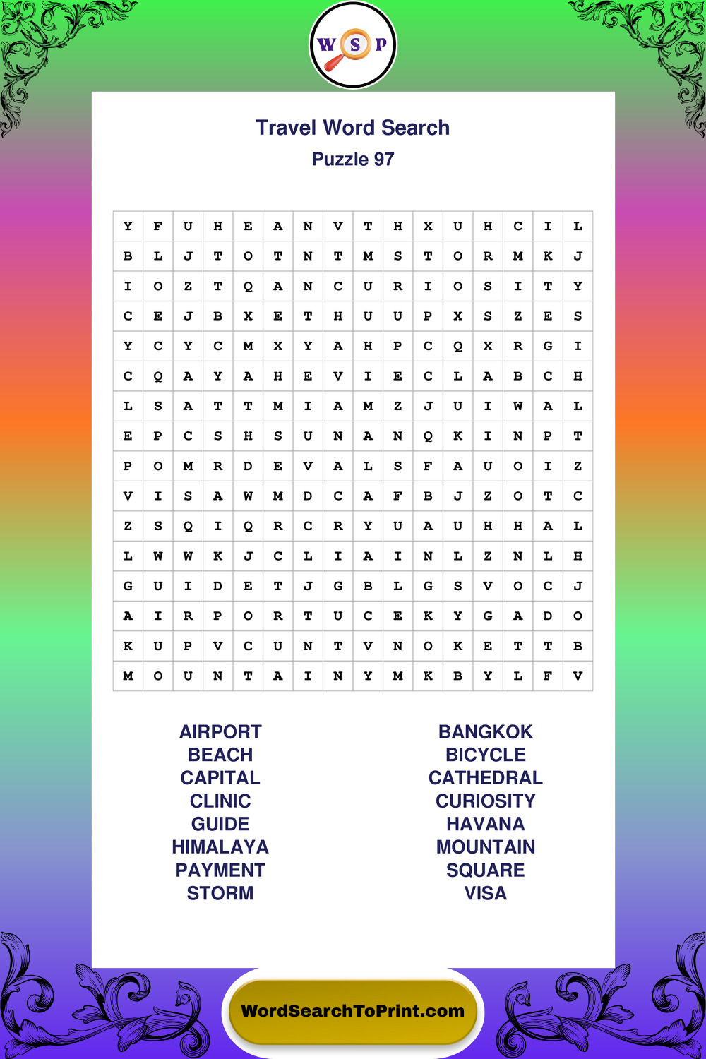 Printable Travel Wordsearch Puzzles