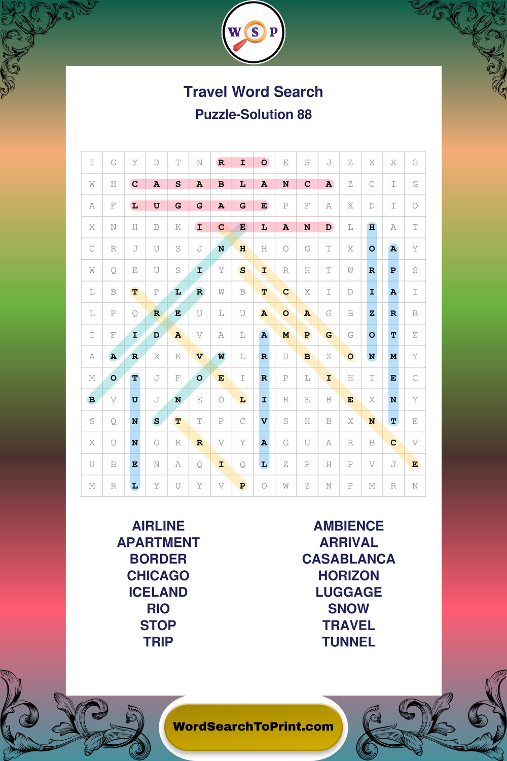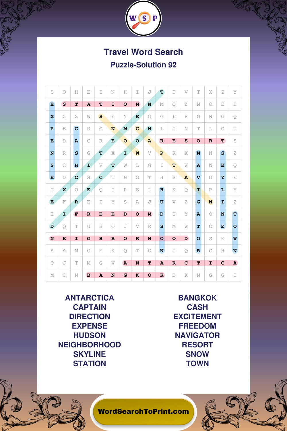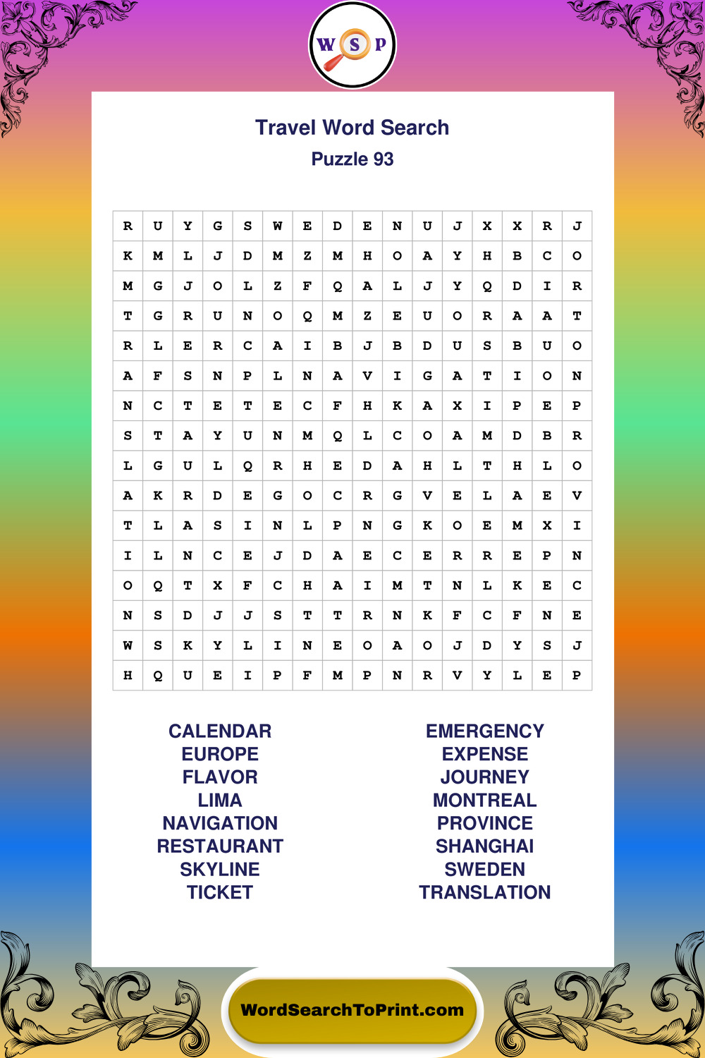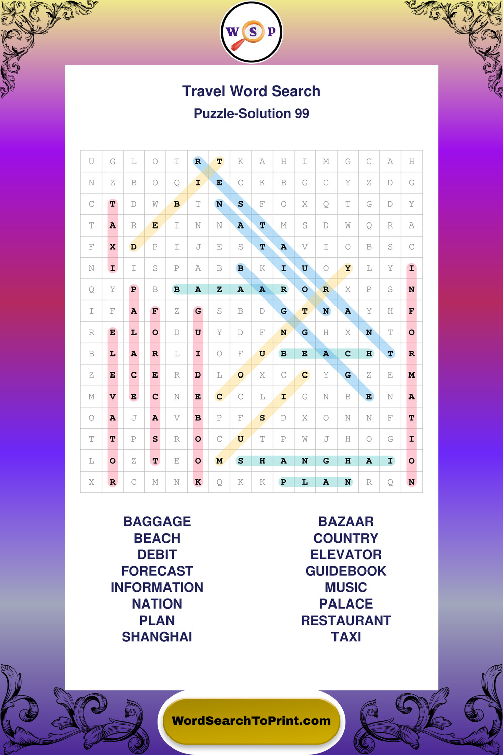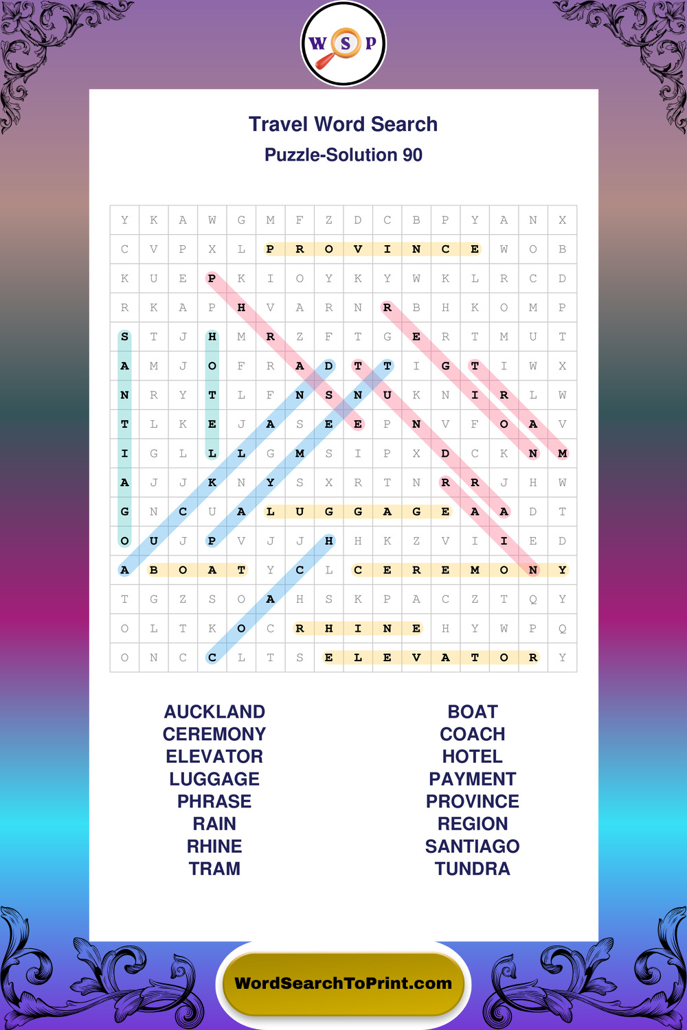 Printable Travel Wordsearch Puzzles