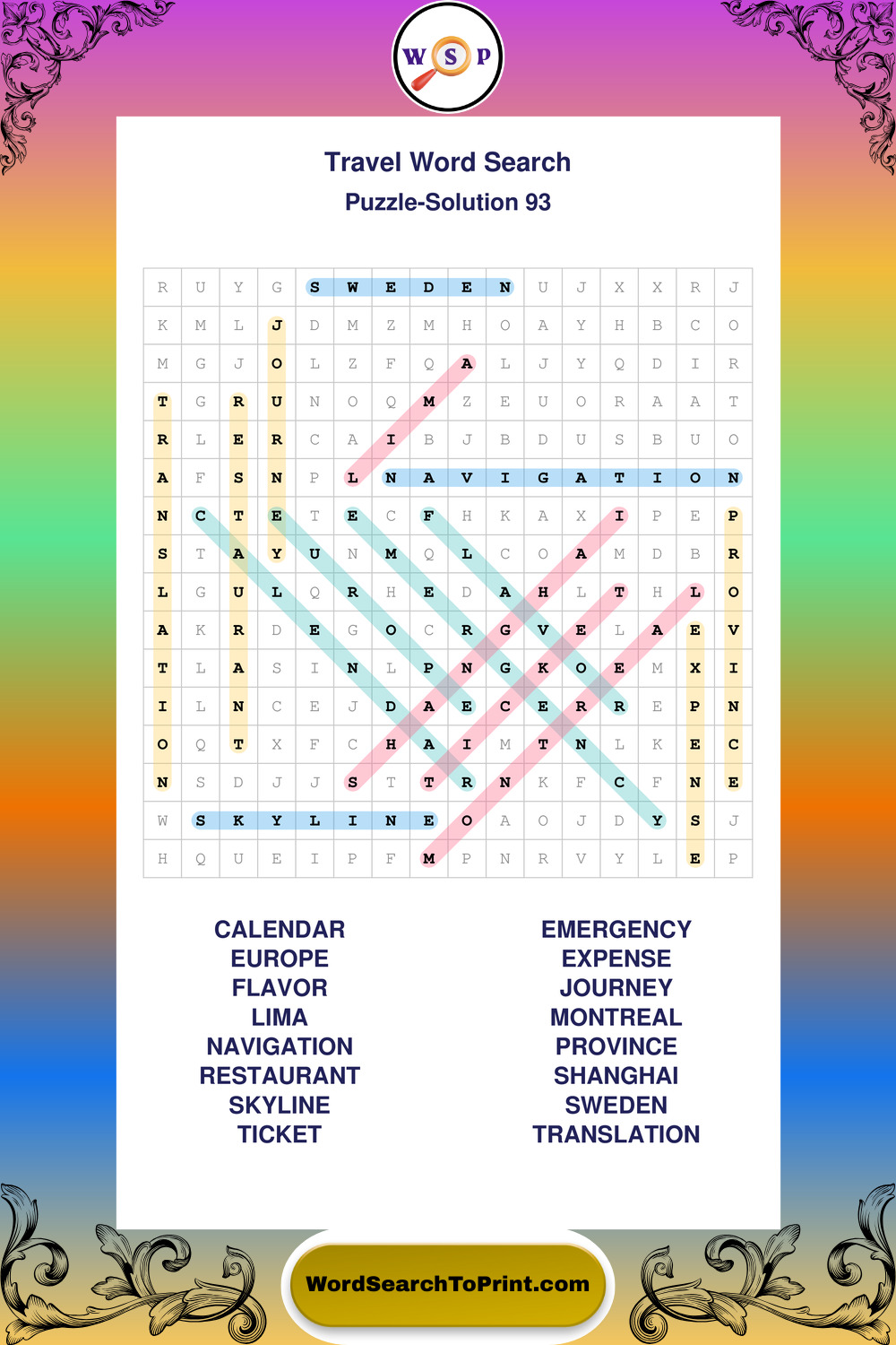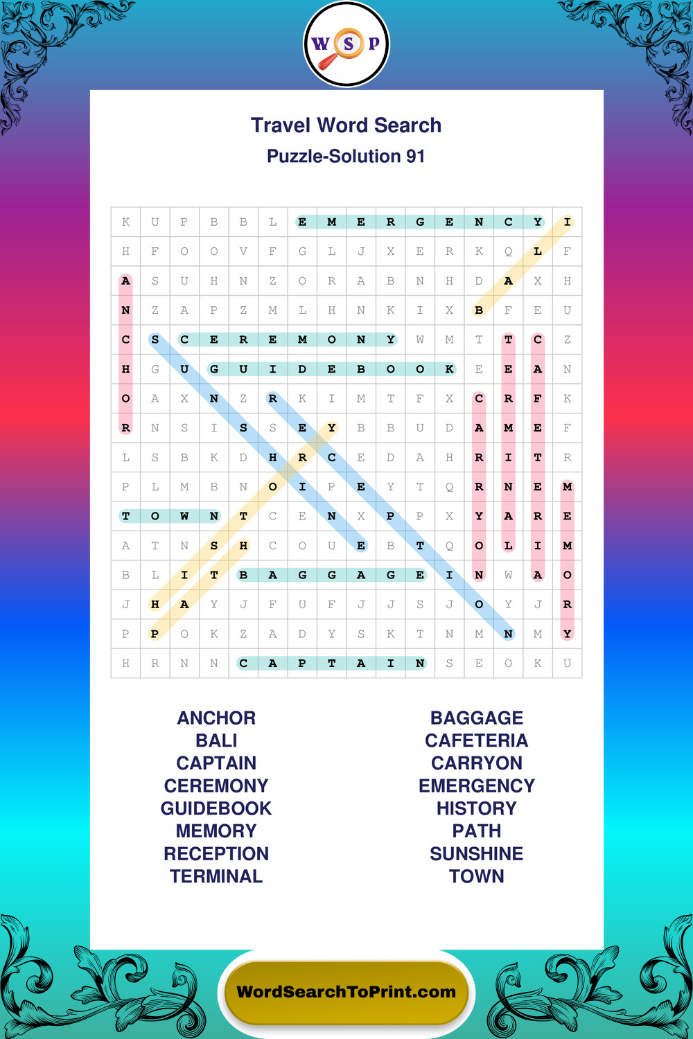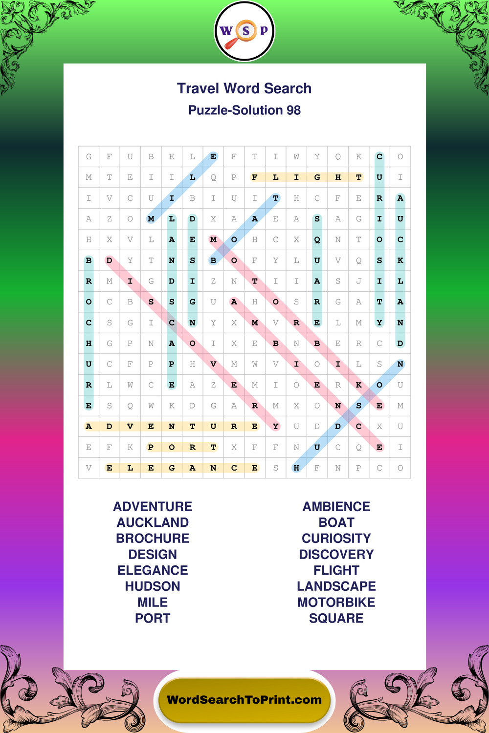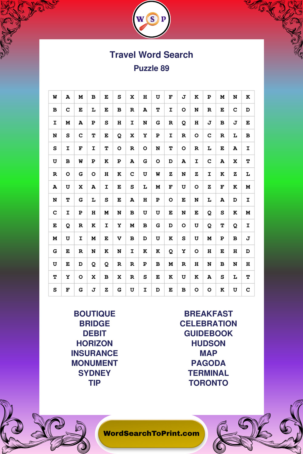 Printable Travel Wordsearch Puzzles