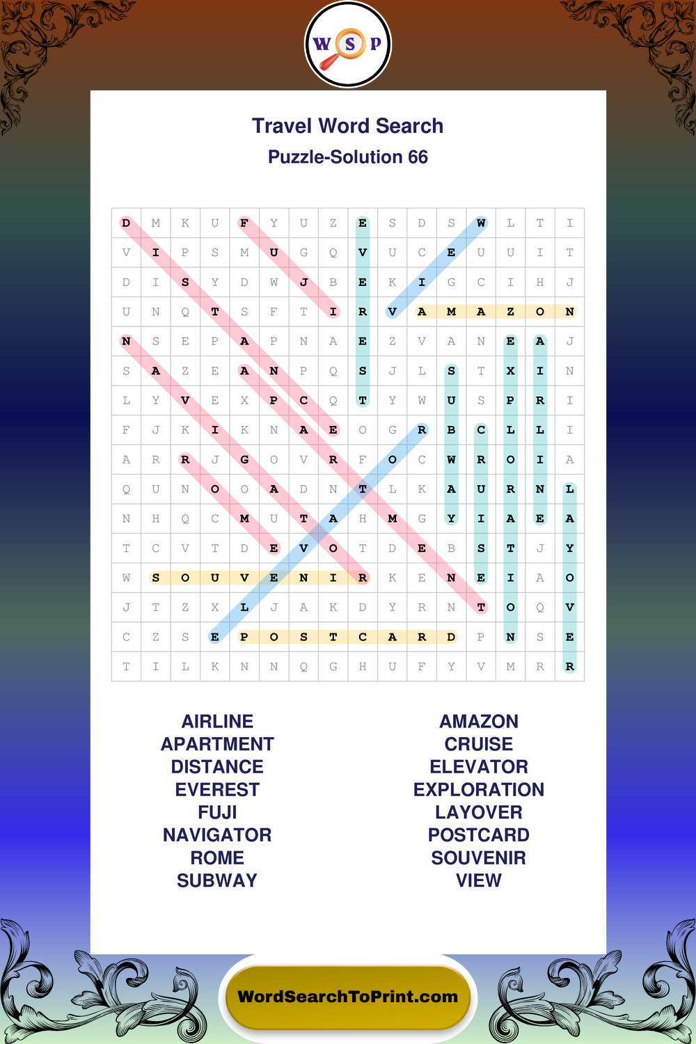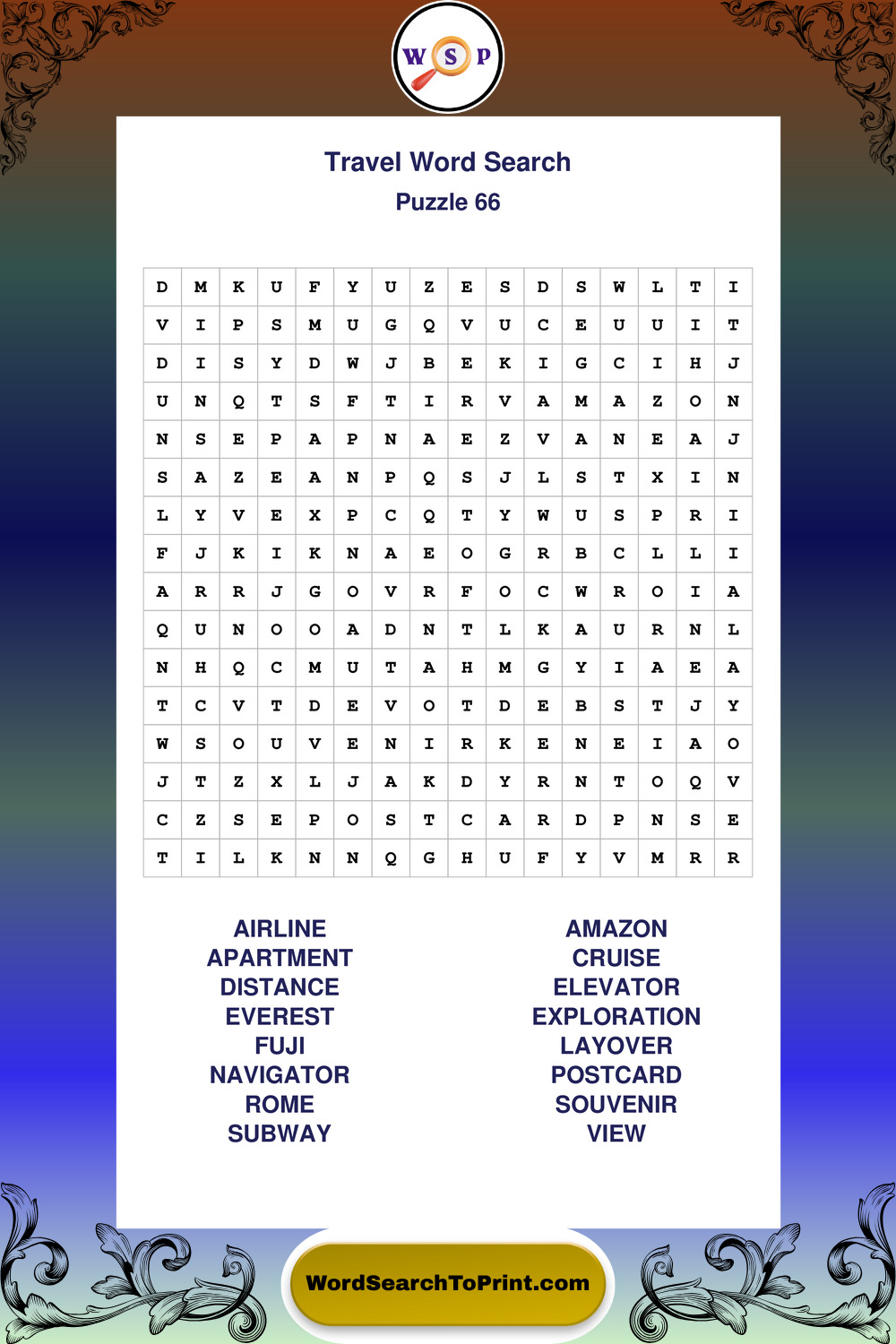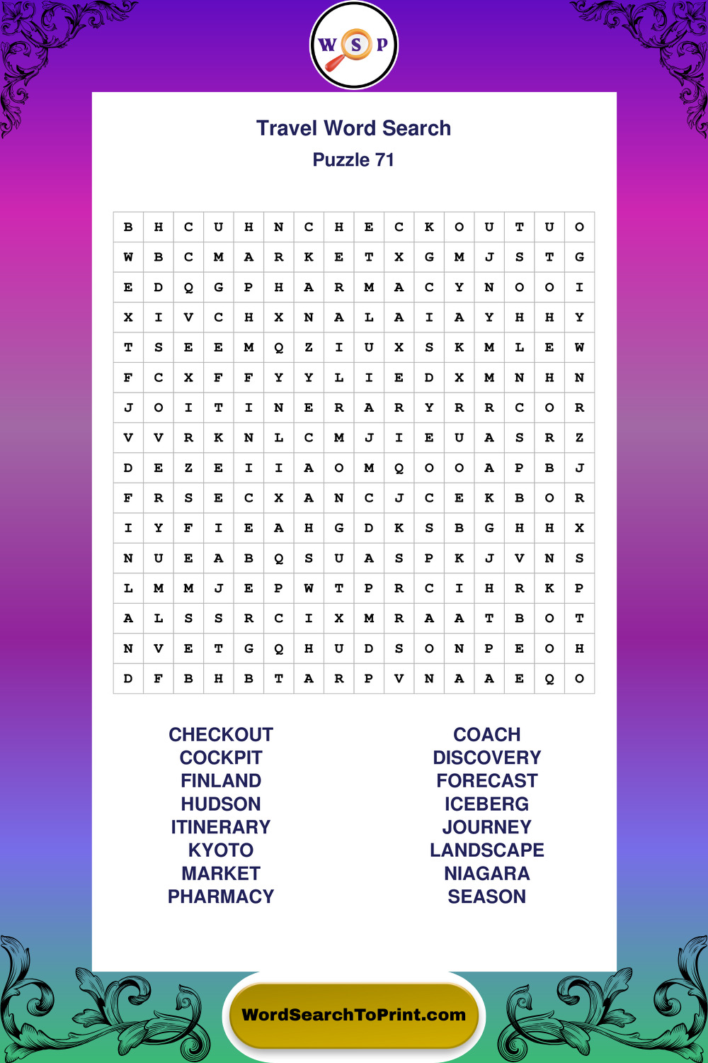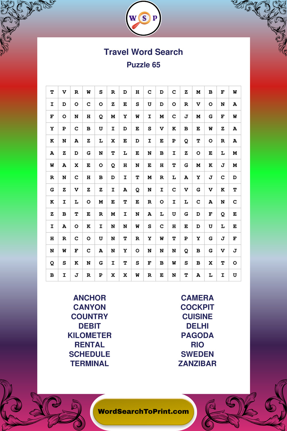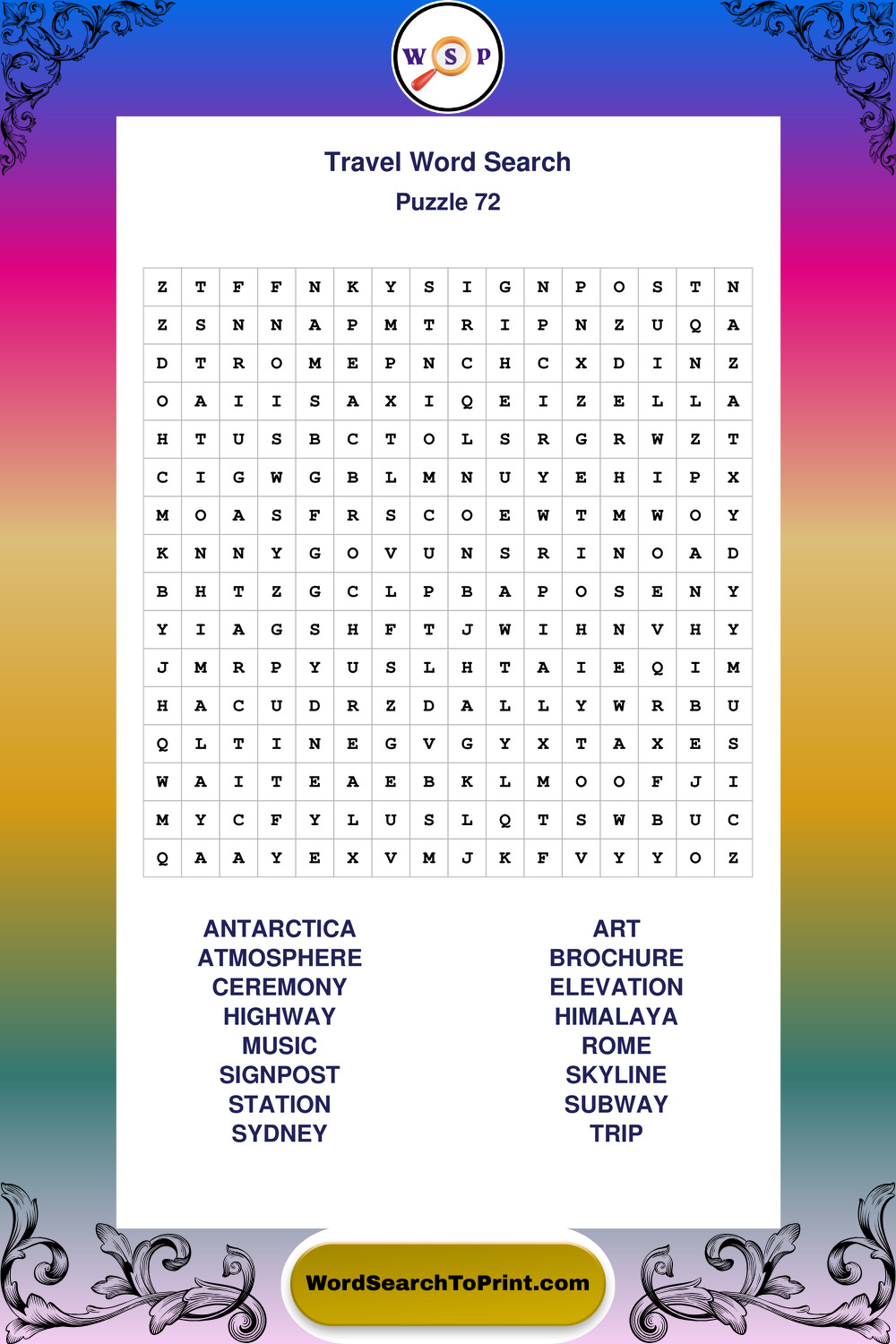 Printable Travel Wordsearch Puzzles