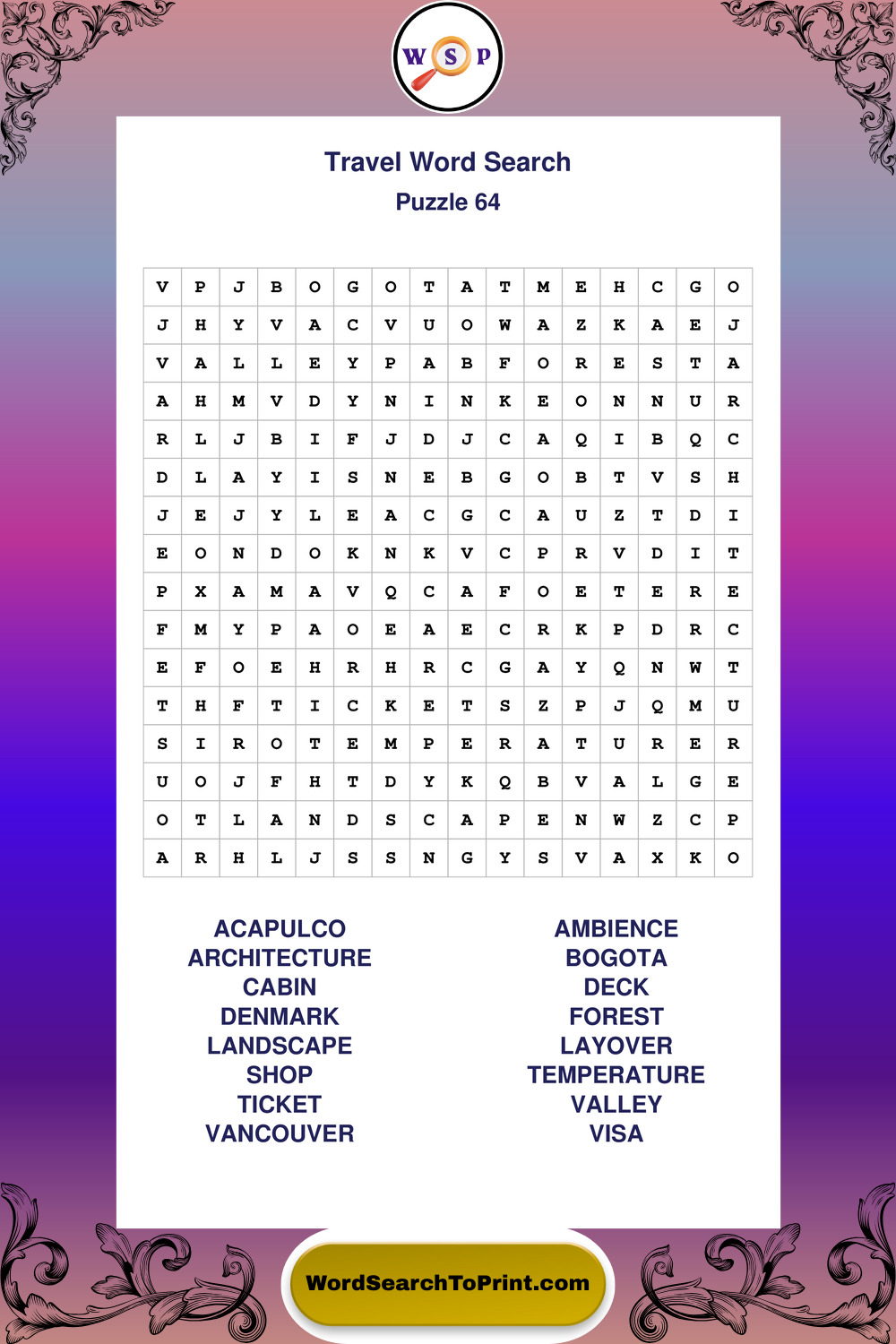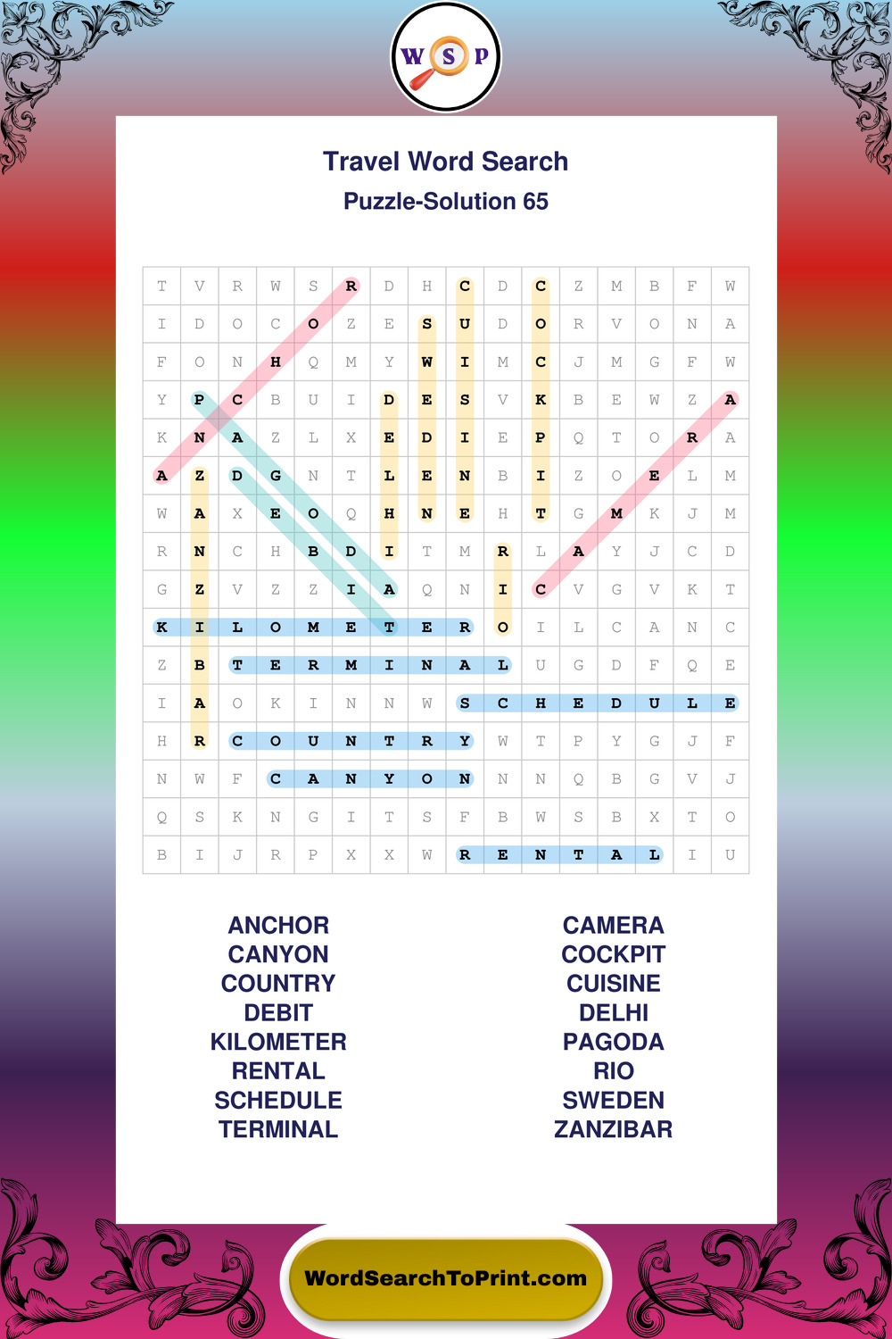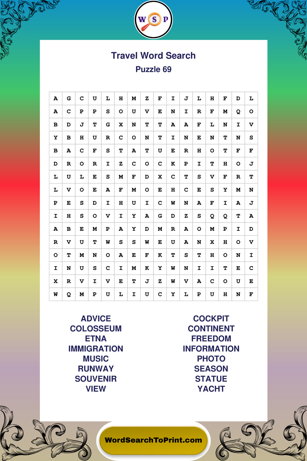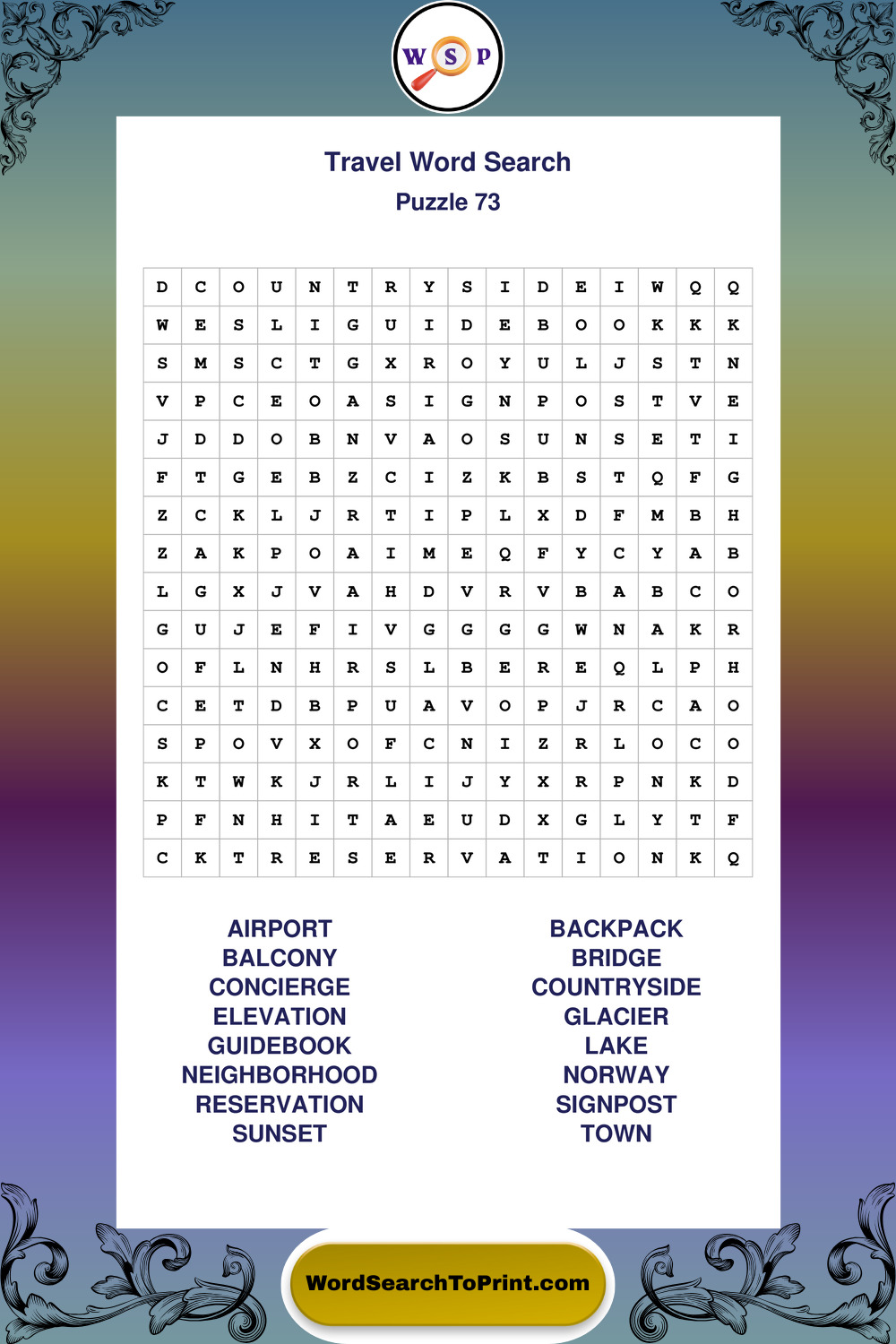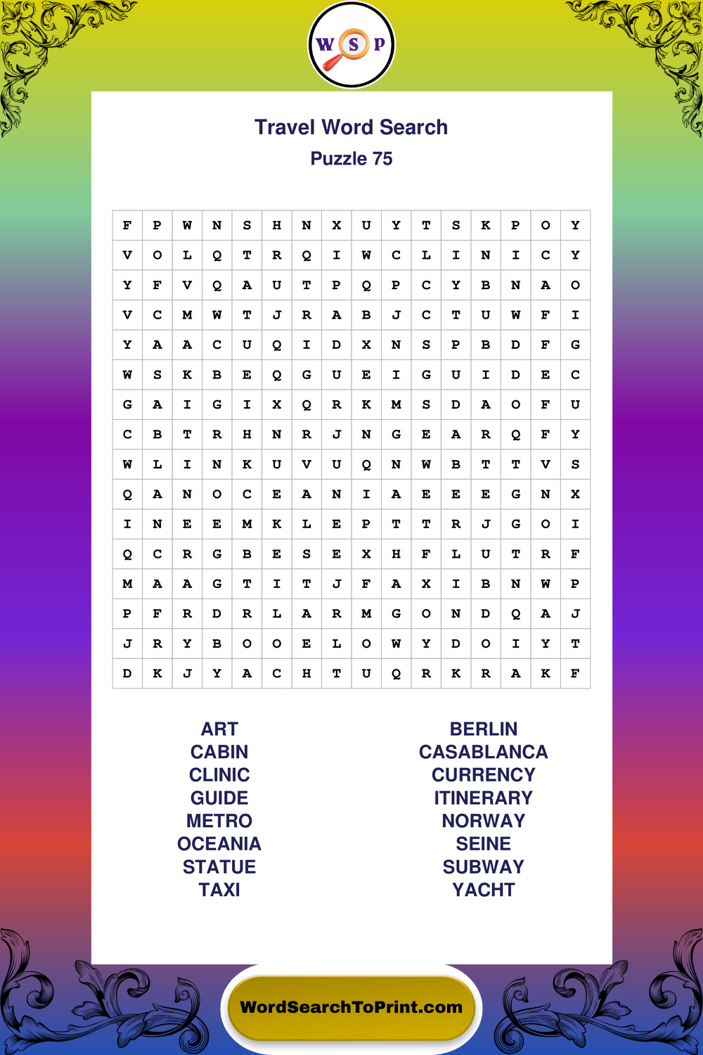 Printable Travel Wordsearch Puzzles