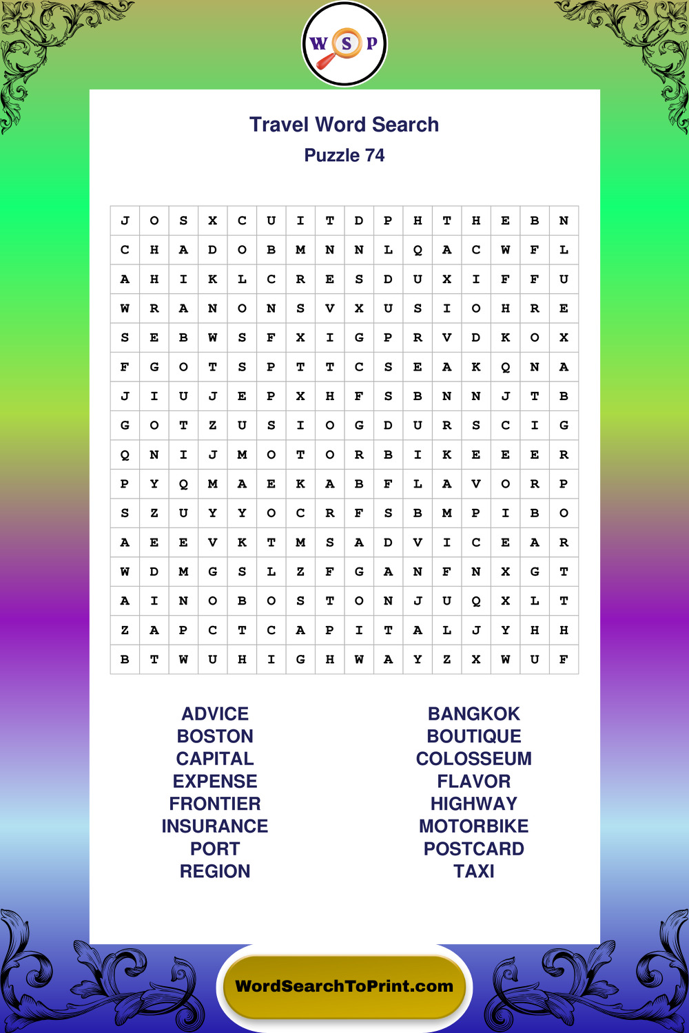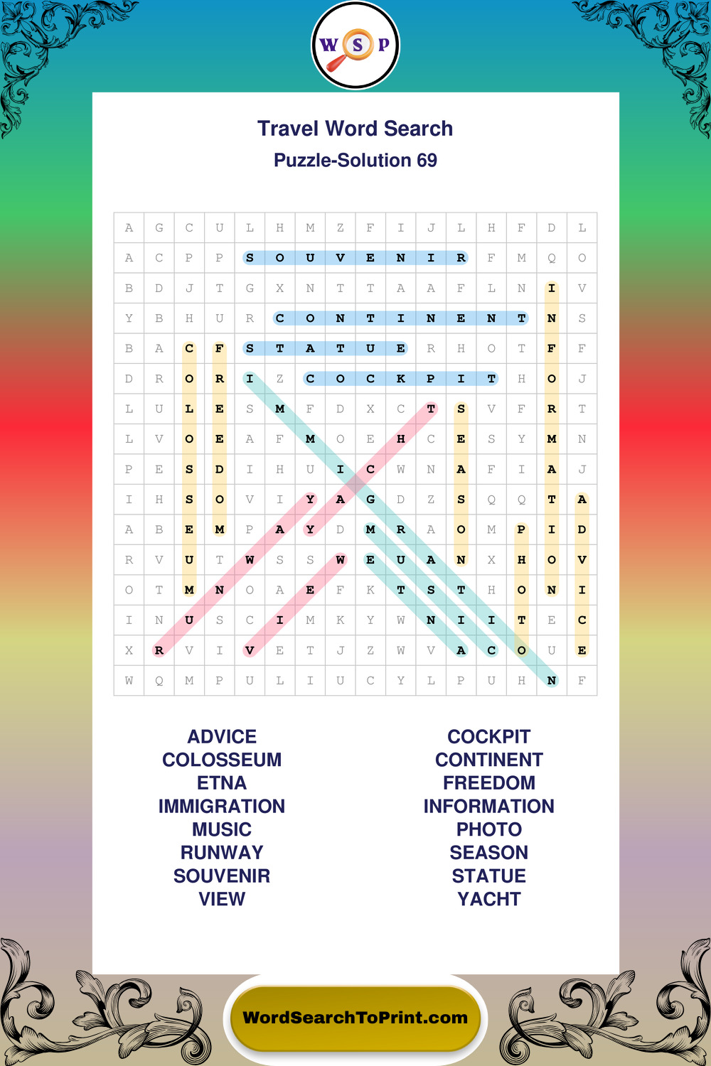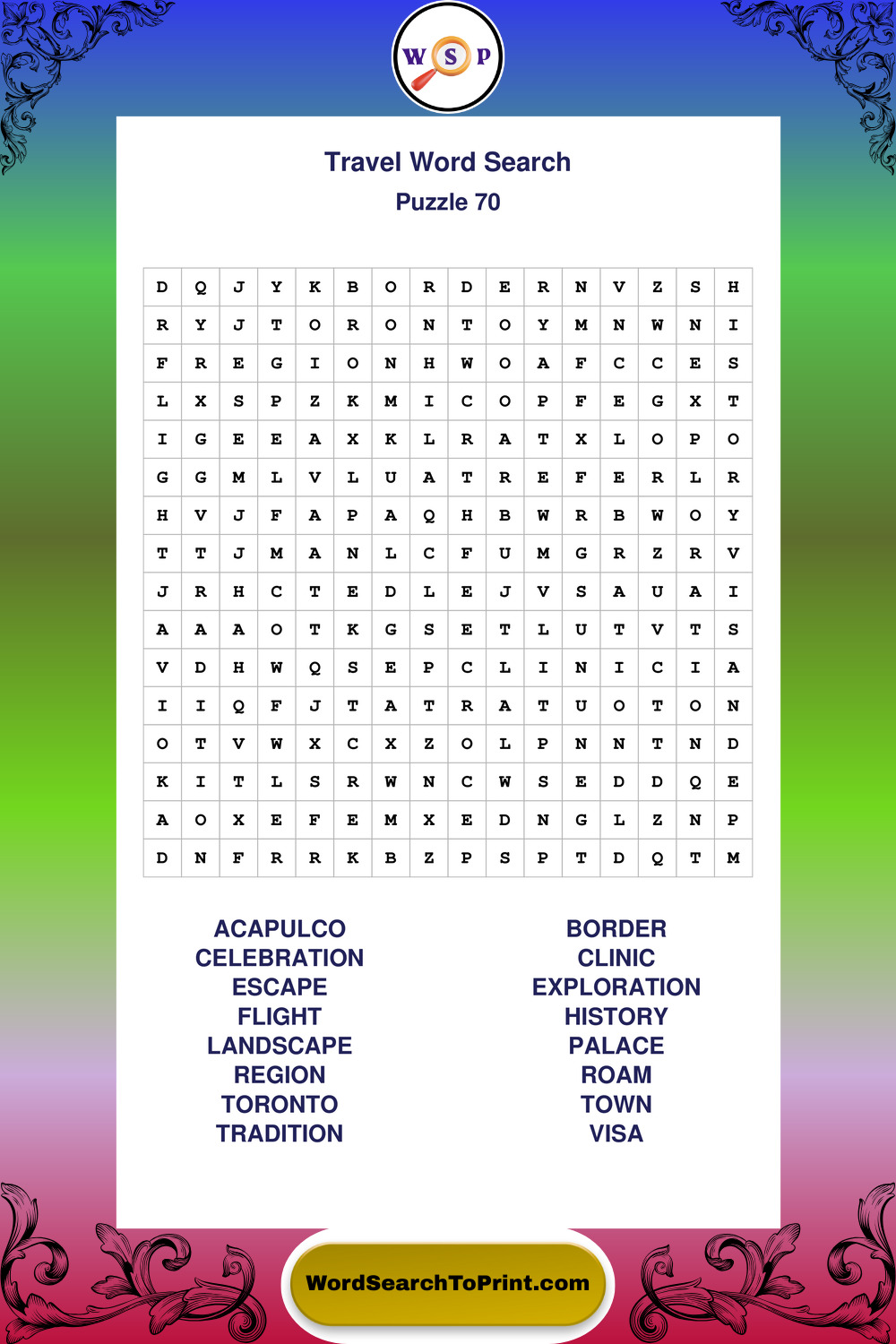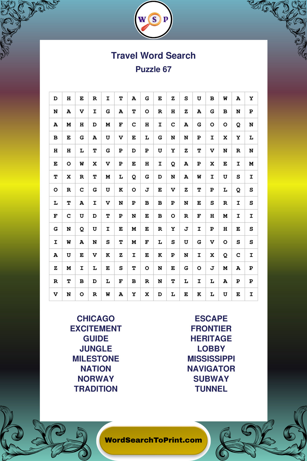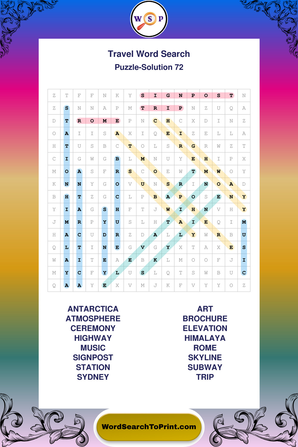 Printable Travel Wordsearch Puzzles