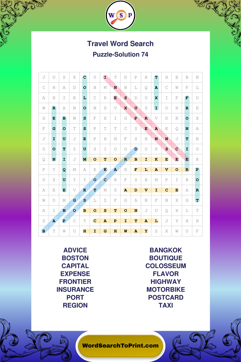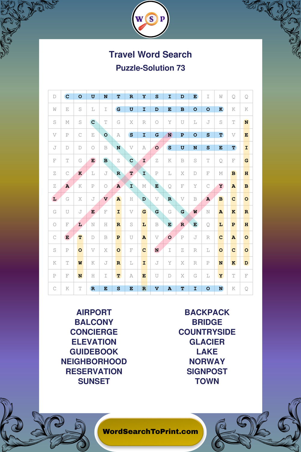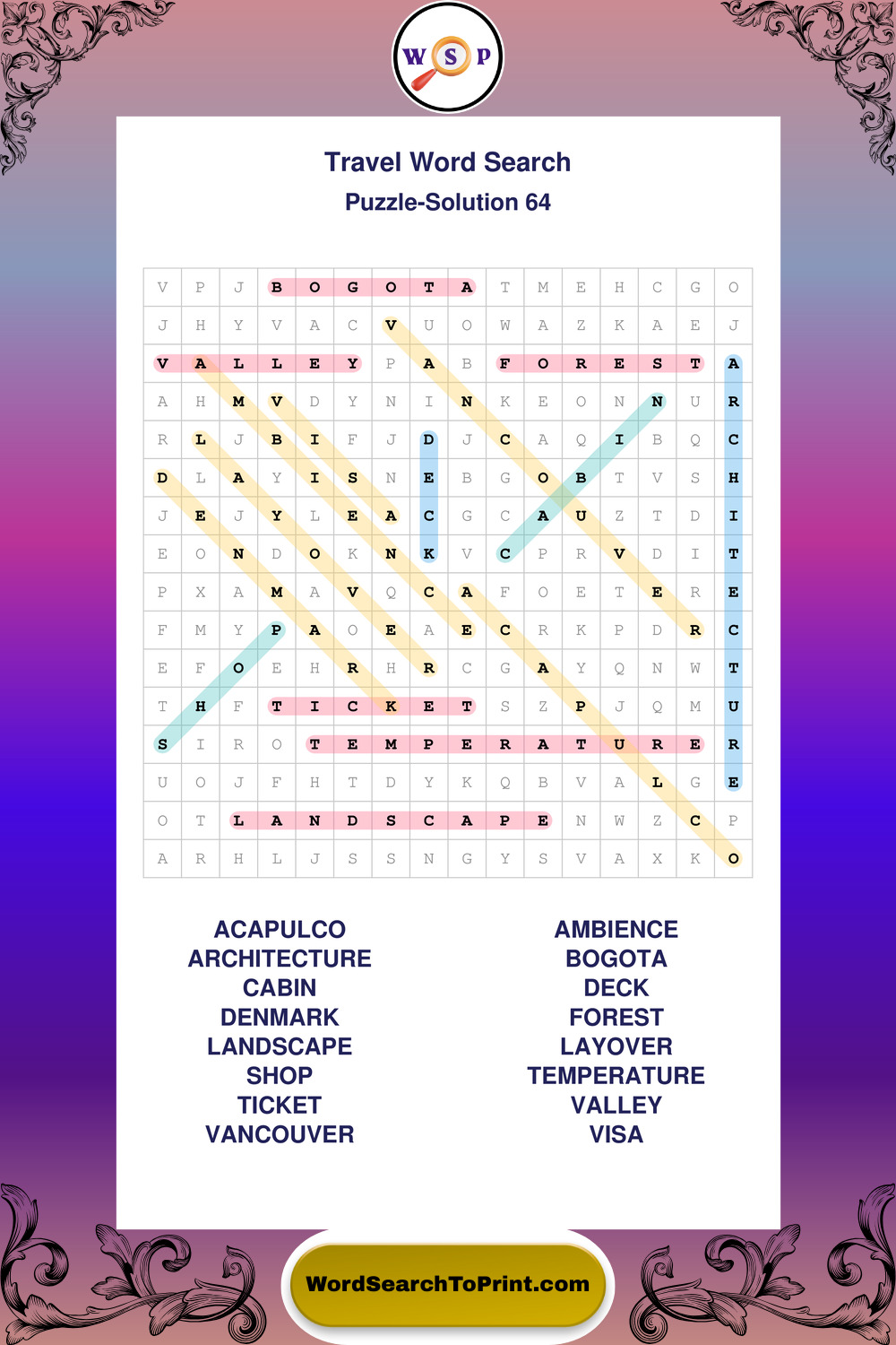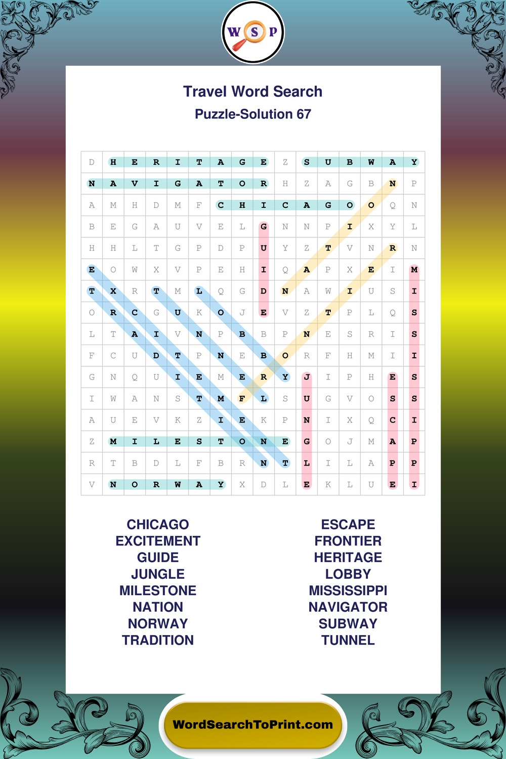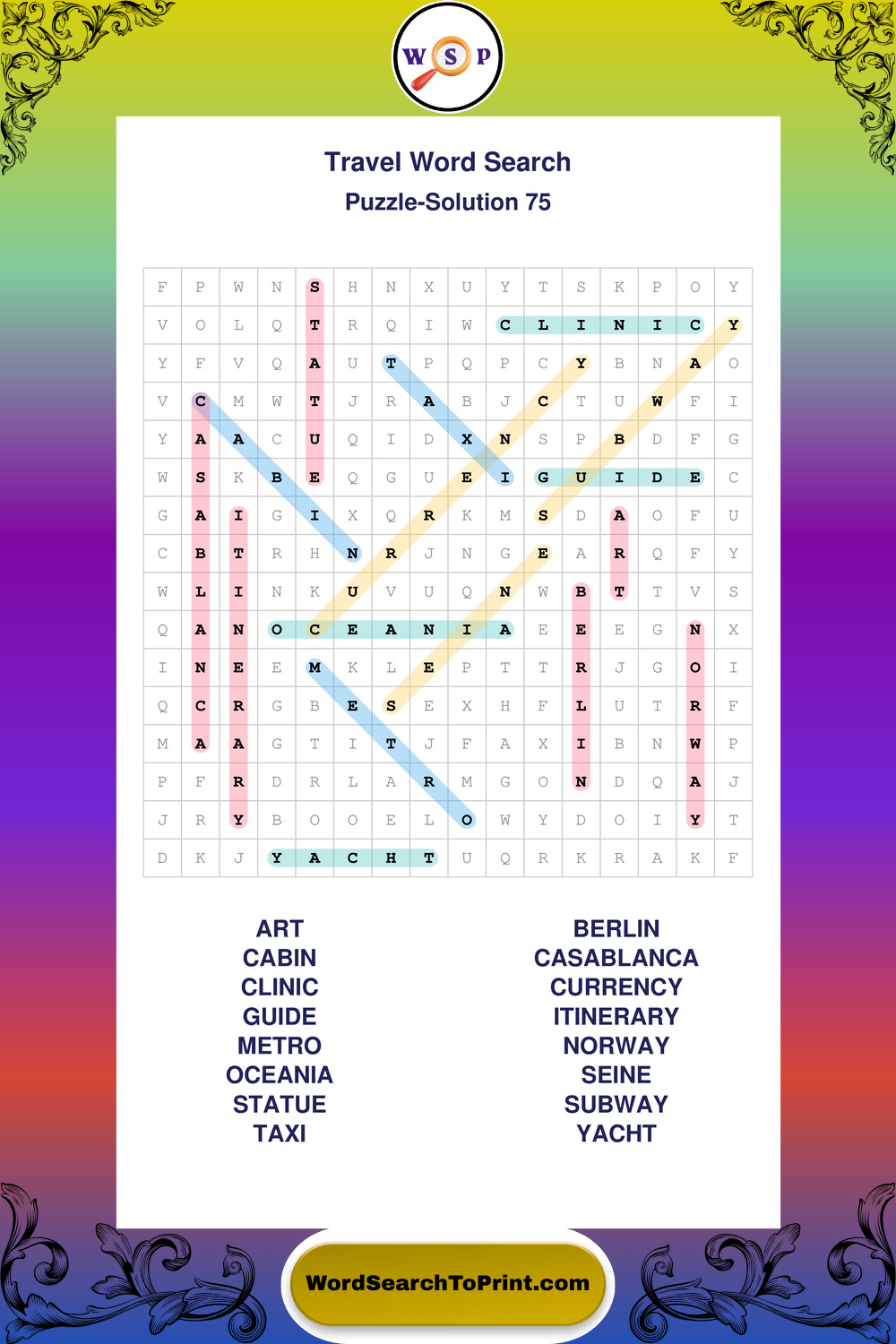 Printable Travel Wordsearch Puzzles