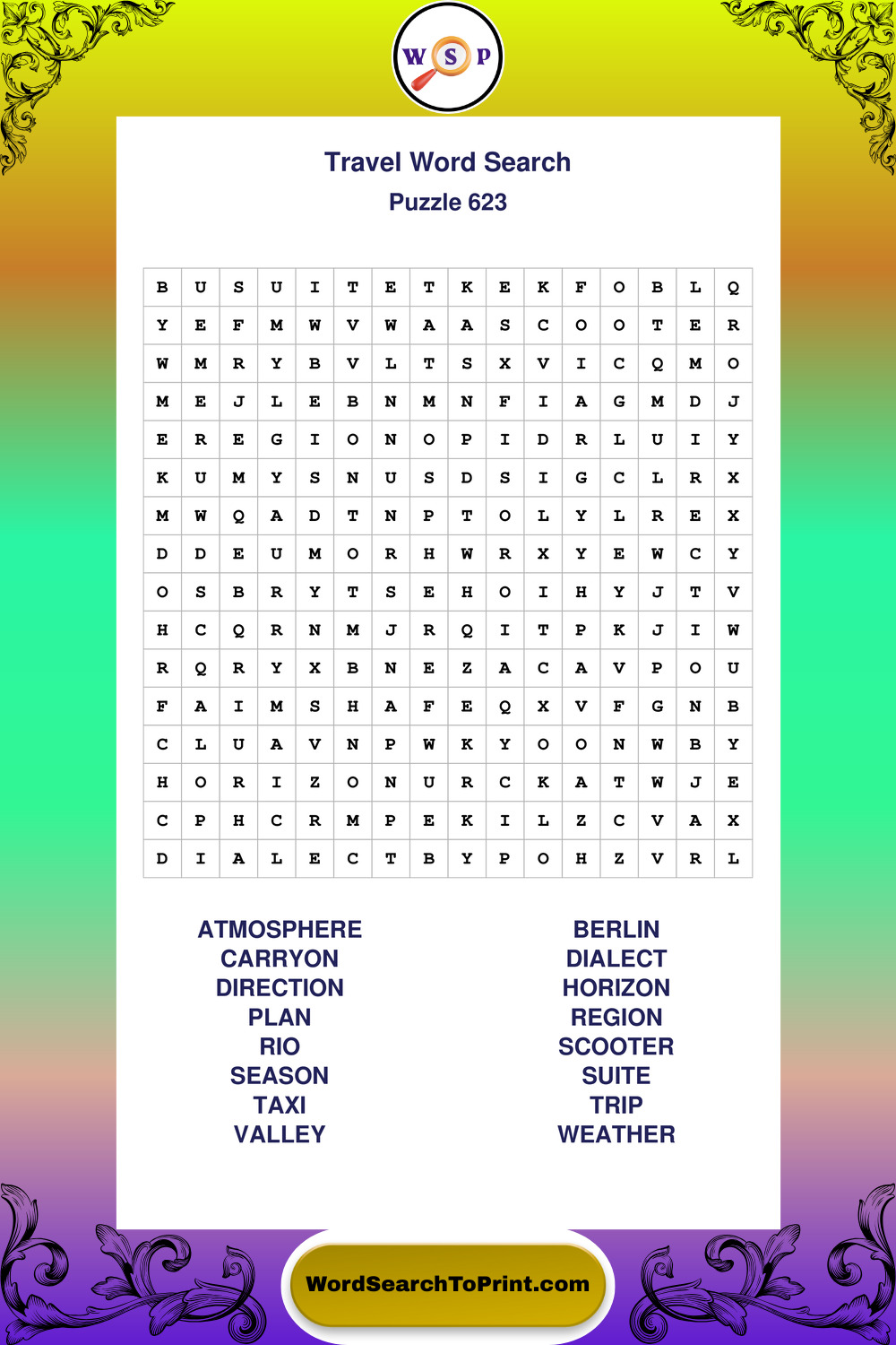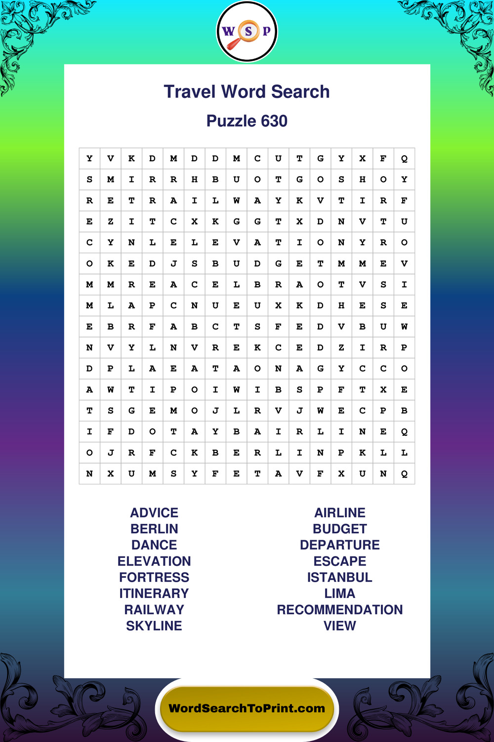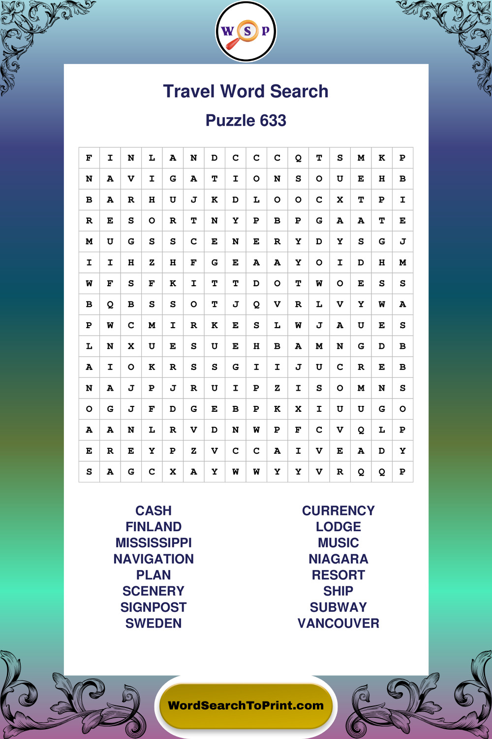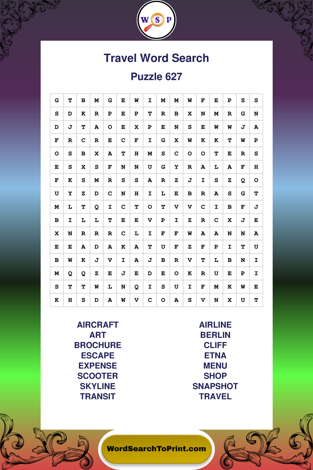 Enjoy these free large print Travel wordsearches designed for easy reading and relaxed puzzle solving. Perfect for teens, adults, and seniors.