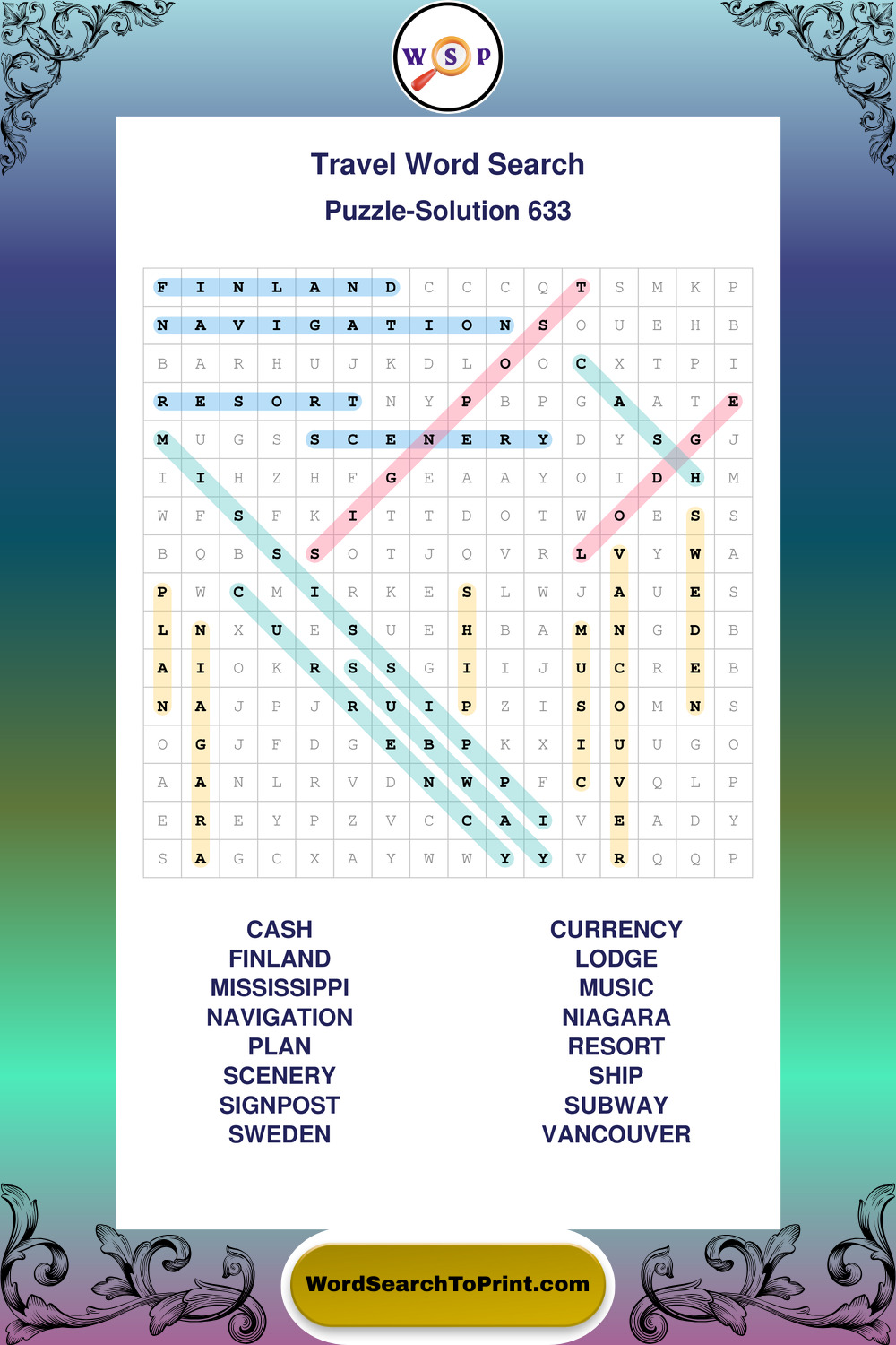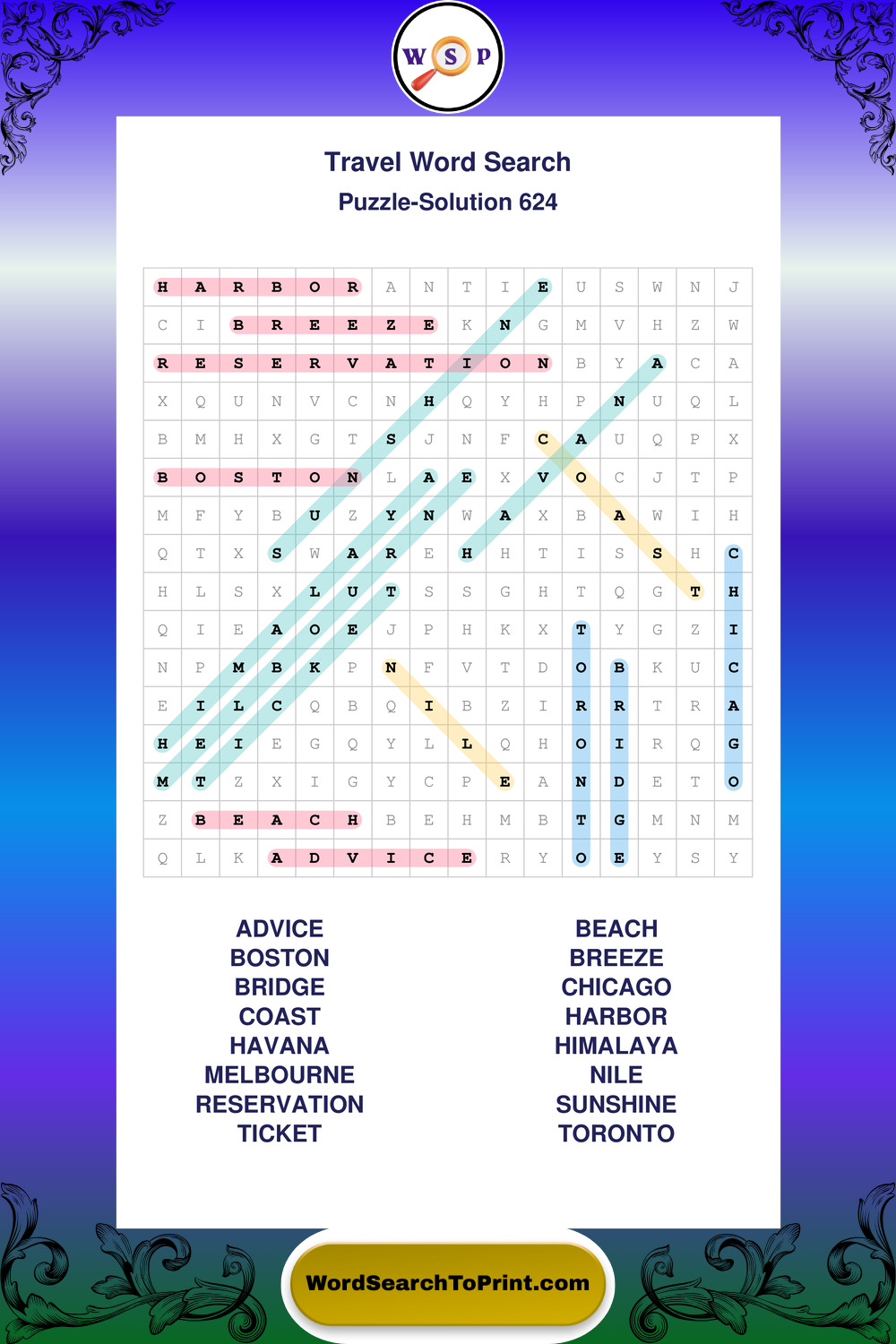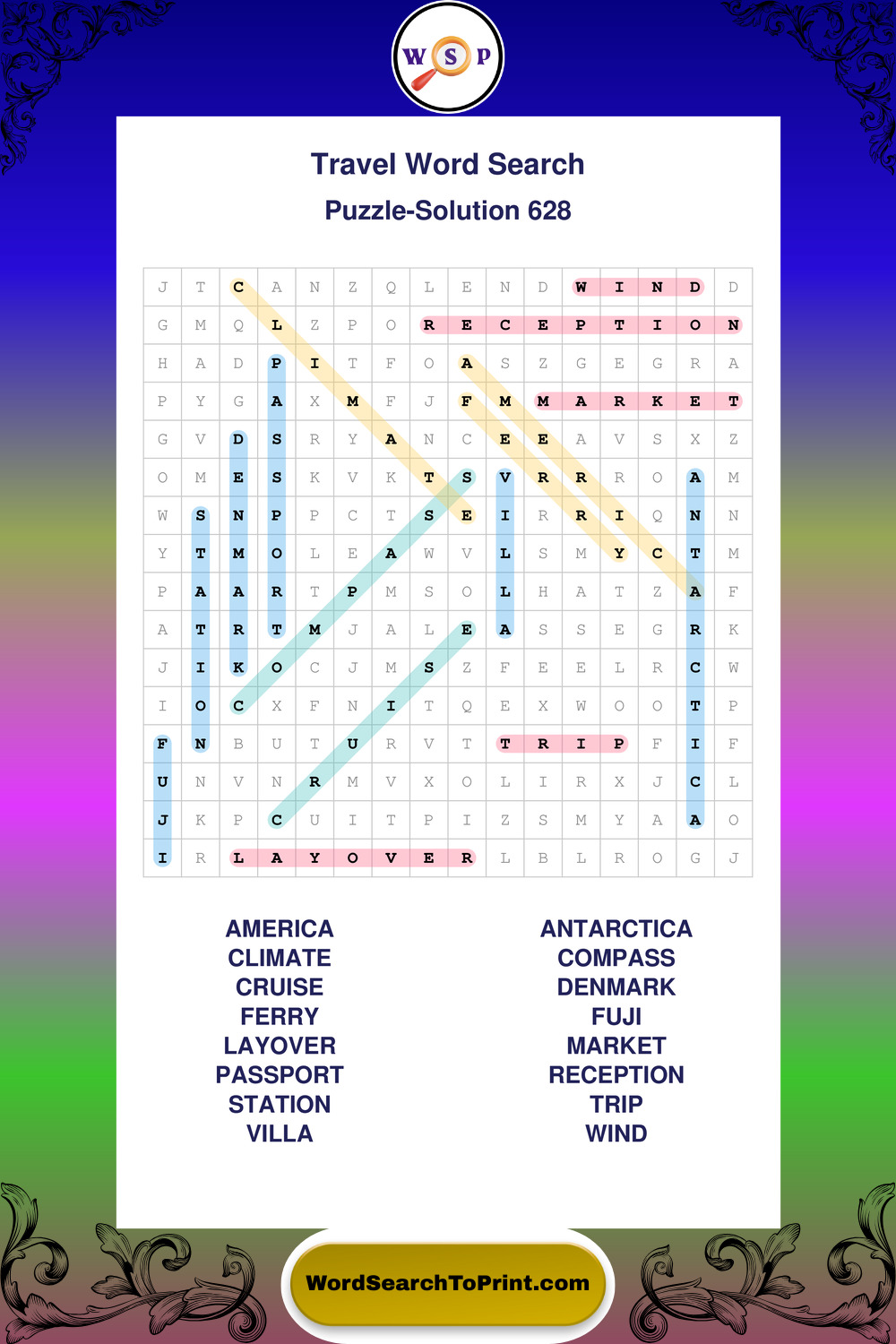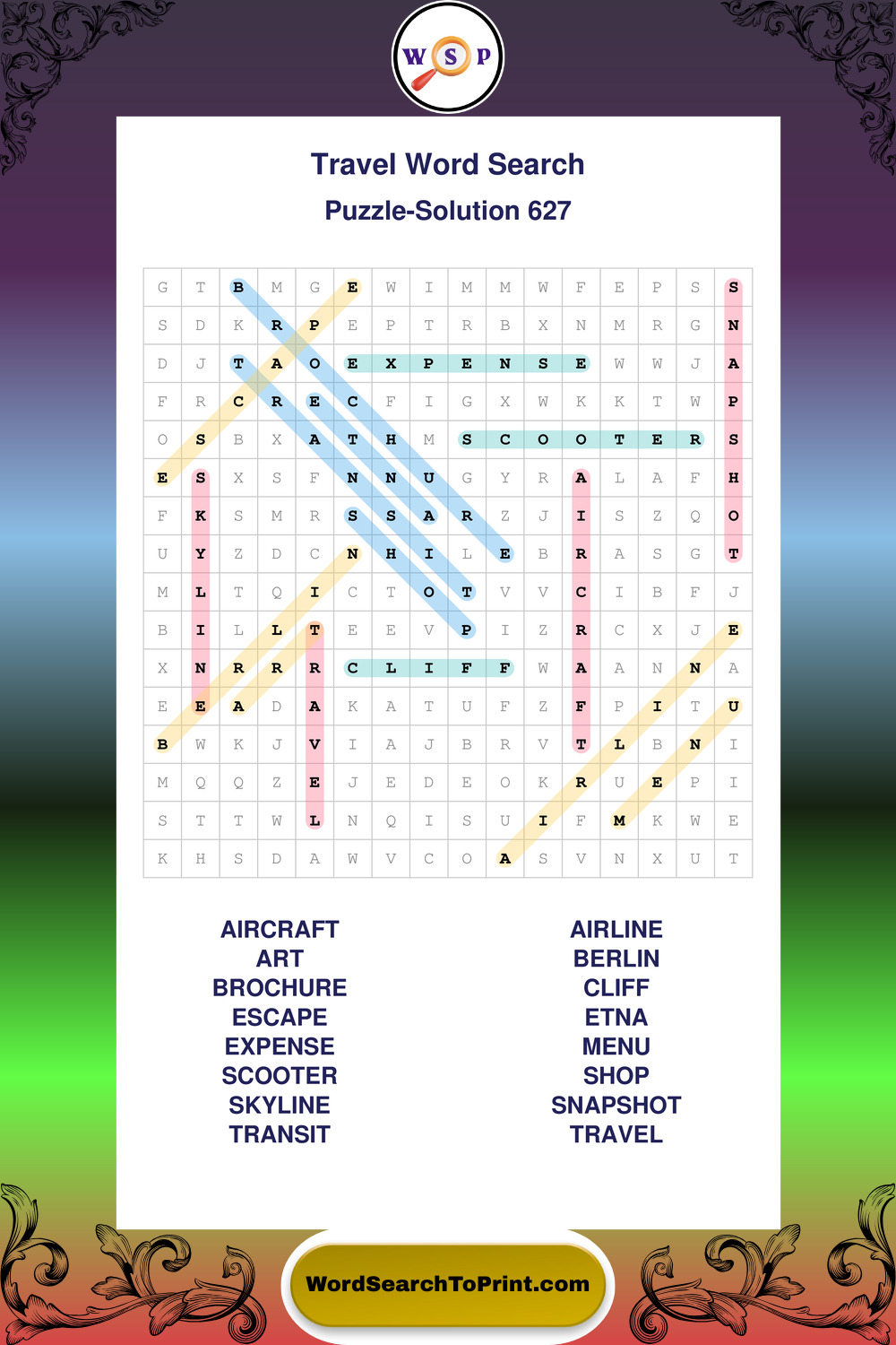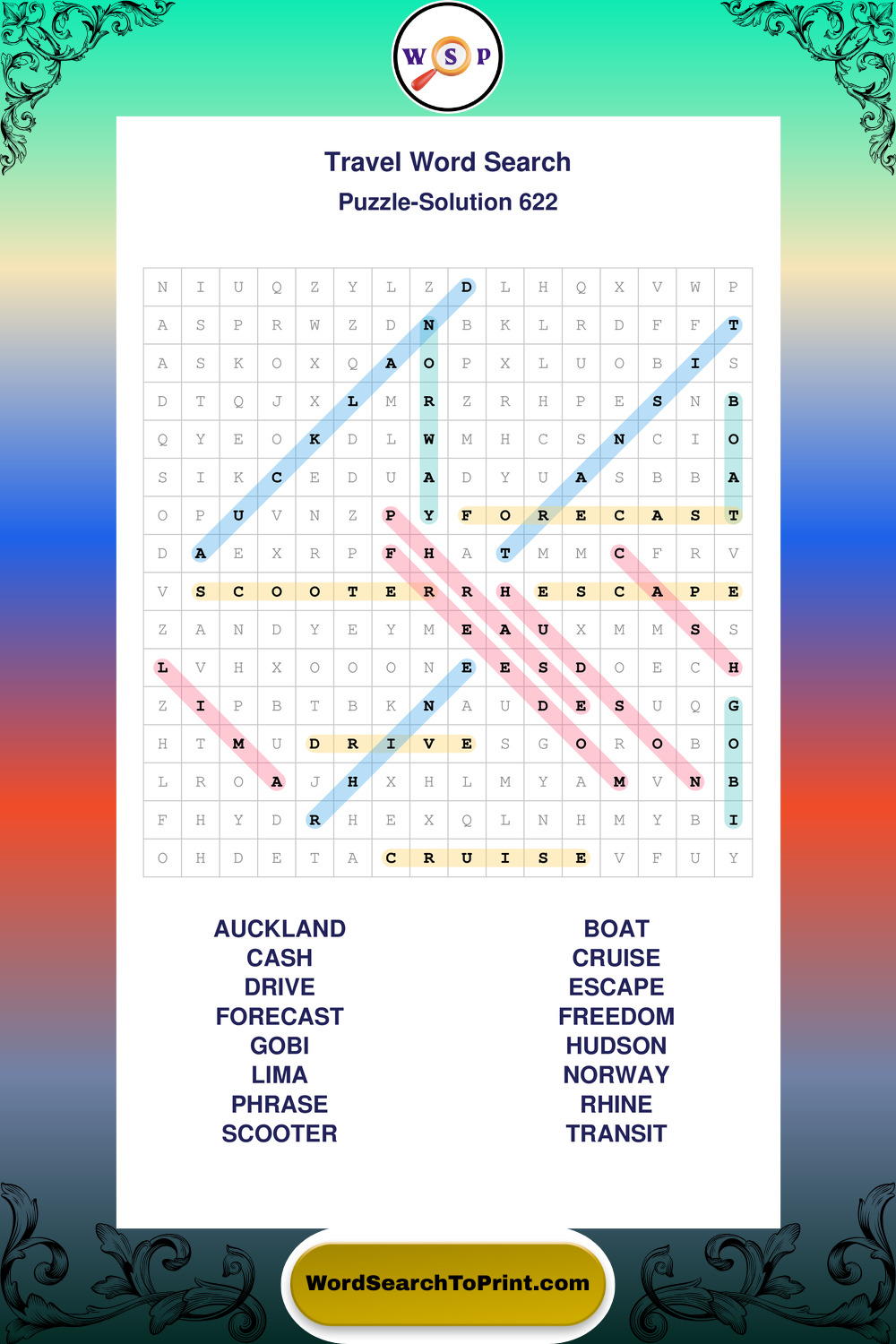 Enjoy these free large print Travel wordsearches designed for easy reading and relaxed puzzle solving. Perfect for teens, adults, and seniors.