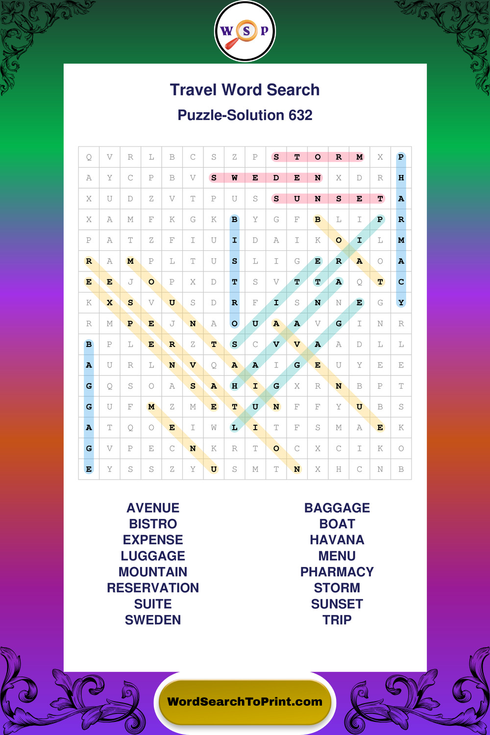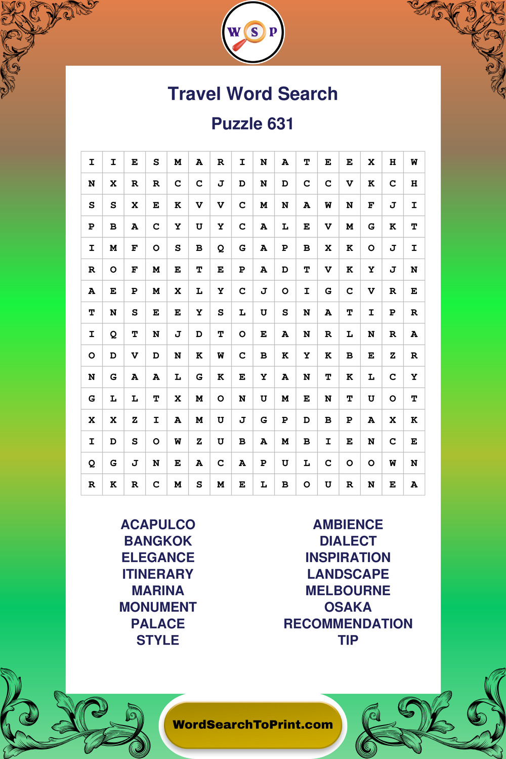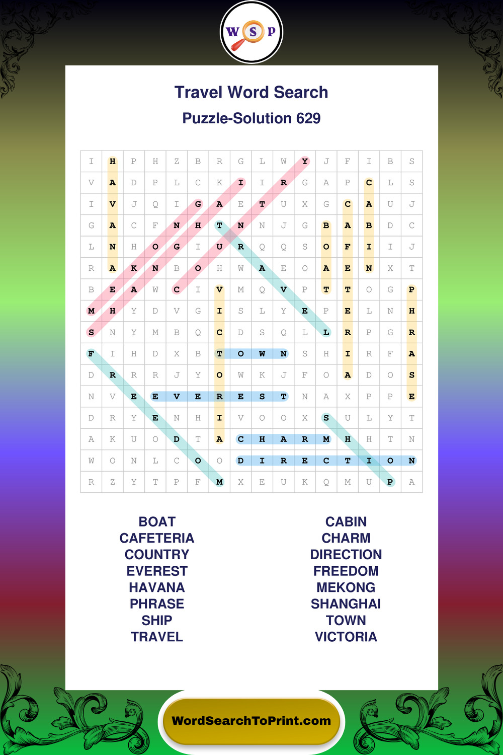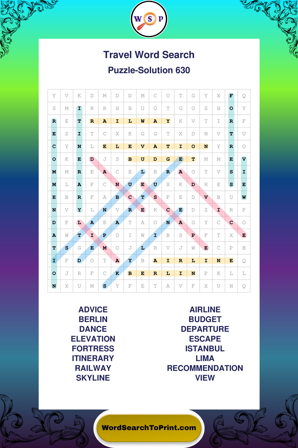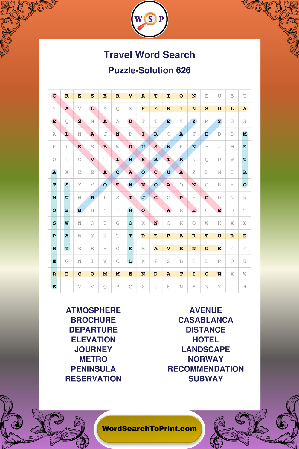 Enjoy these free large print Travel wordsearches designed for easy reading and relaxed puzzle solving. Perfect for teens, adults, and seniors.
