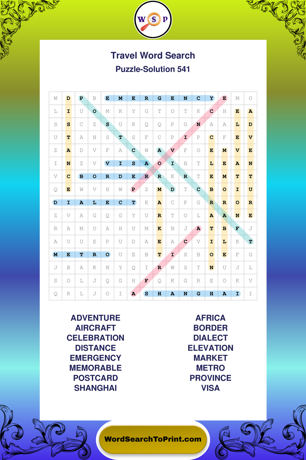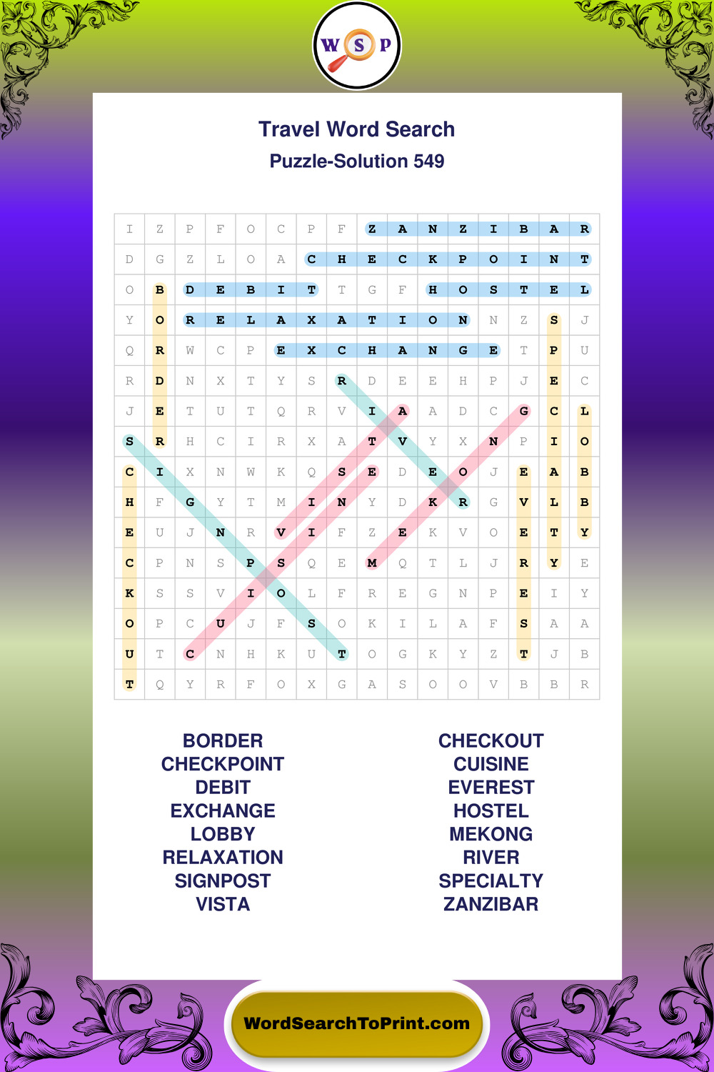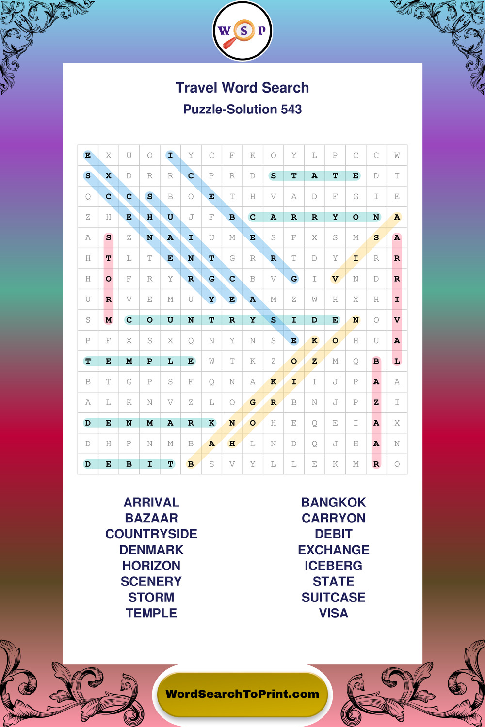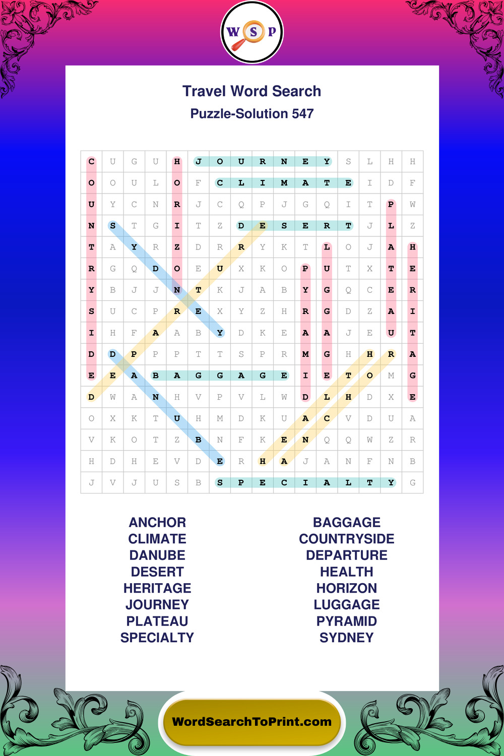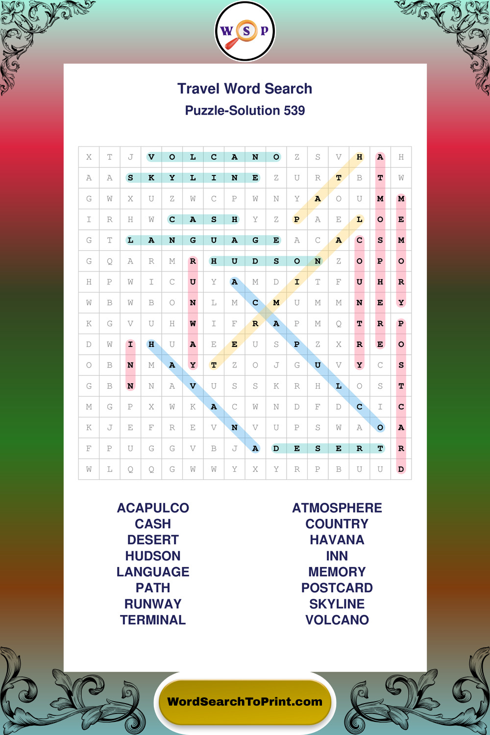 Enjoy these free large print Travel wordsearches designed for easy reading and relaxed puzzle solving. Perfect for teens, adults, and seniors.