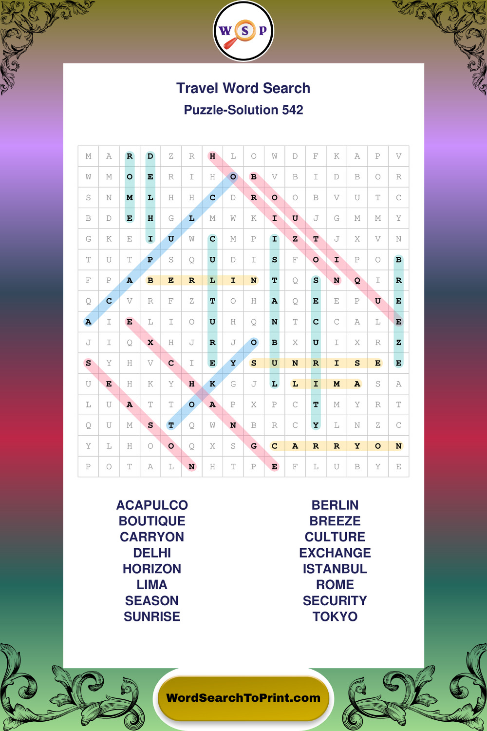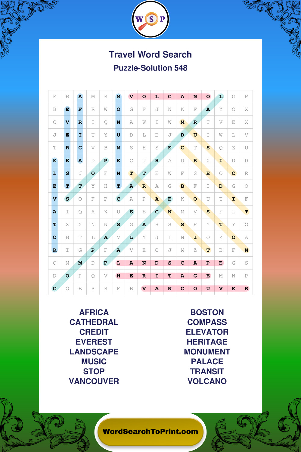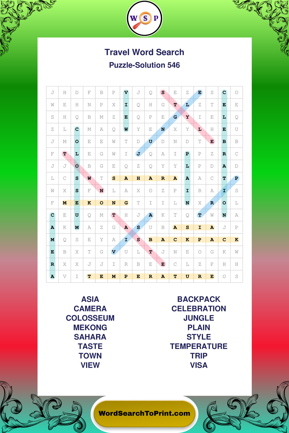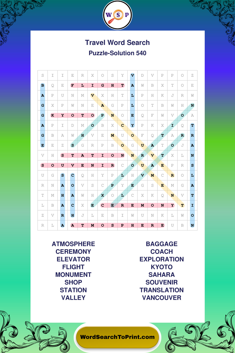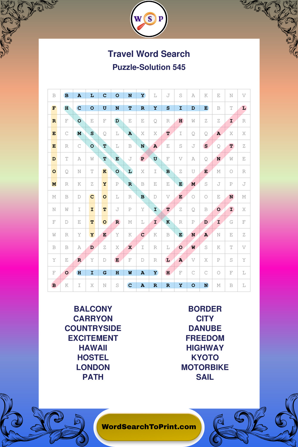 Enjoy these free large print Travel wordsearches designed for easy reading and relaxed puzzle solving. Perfect for teens, adults, and seniors.