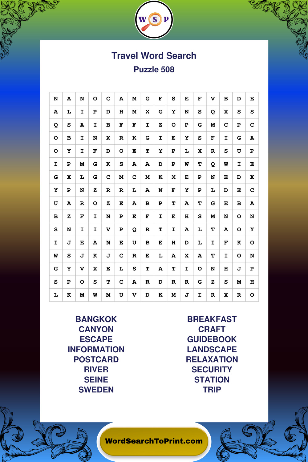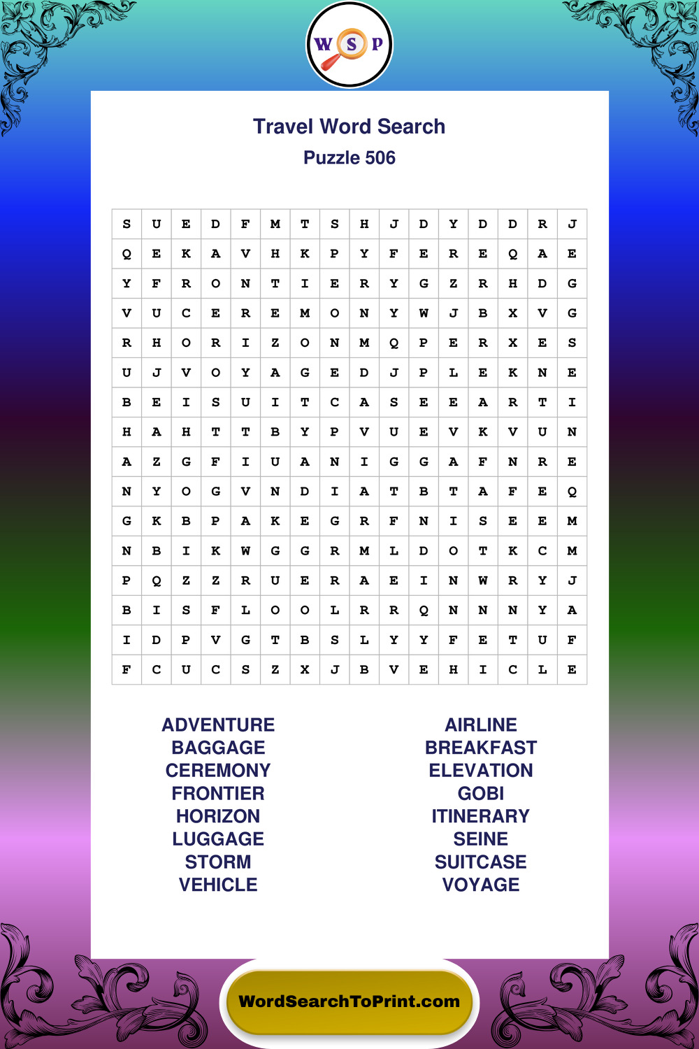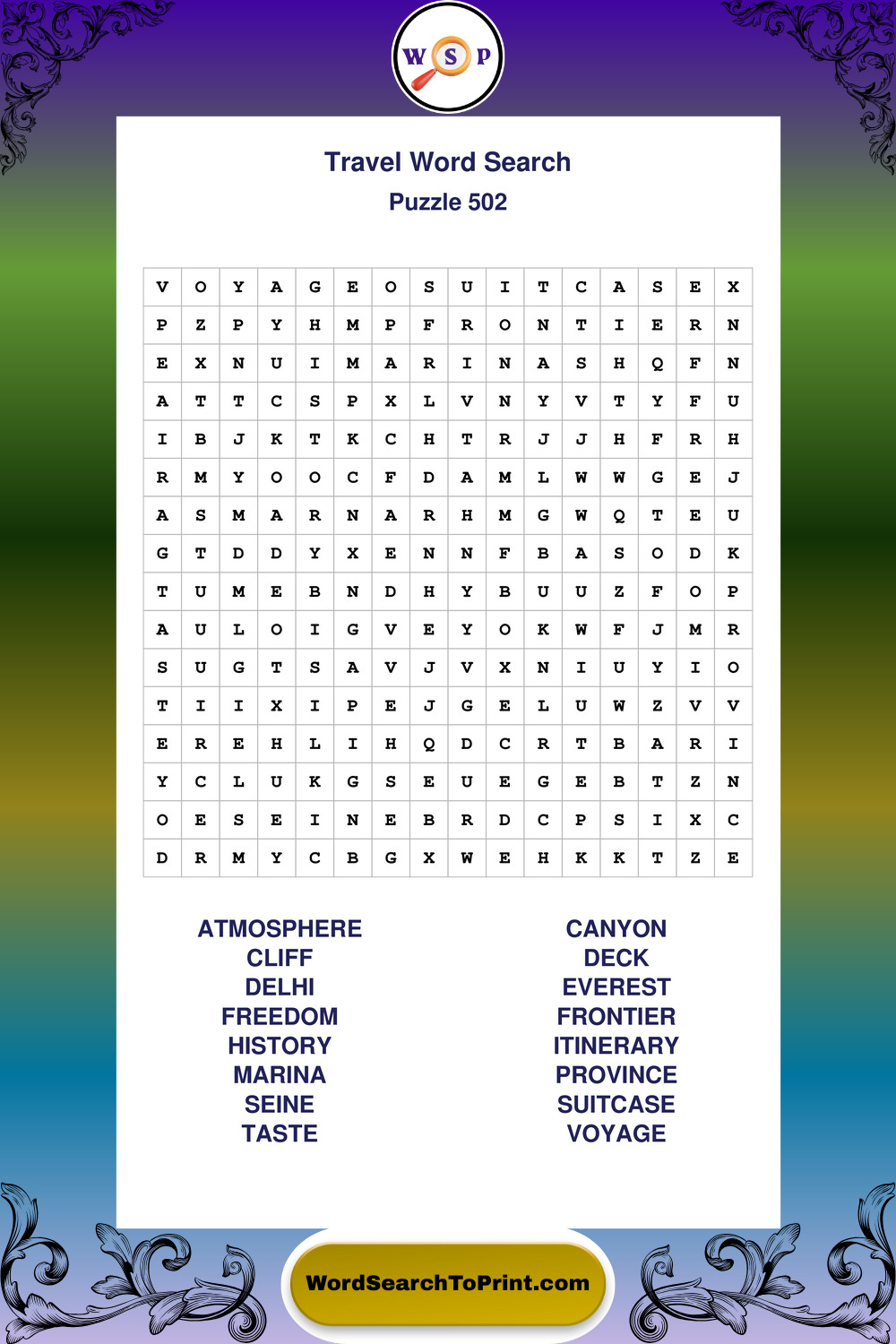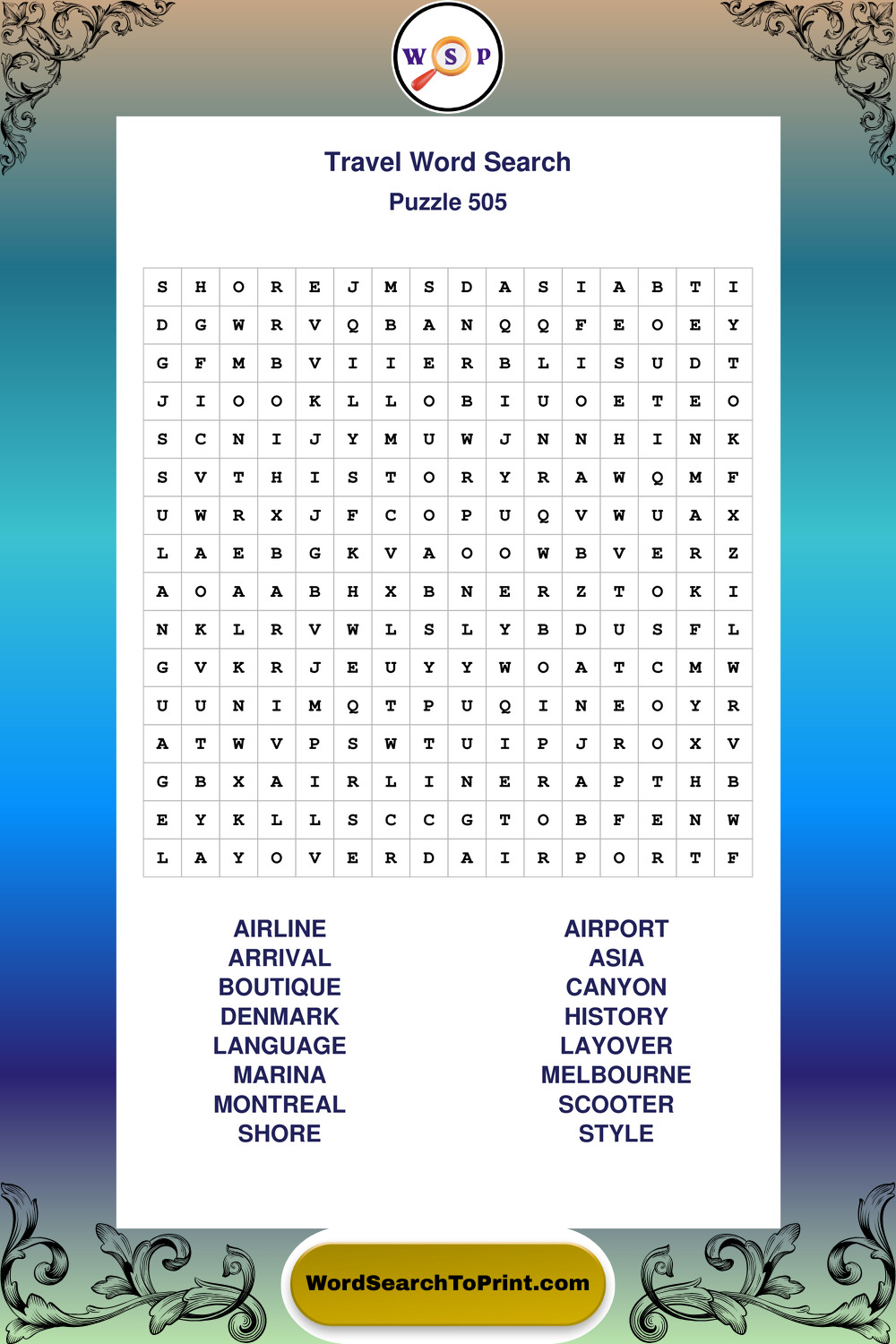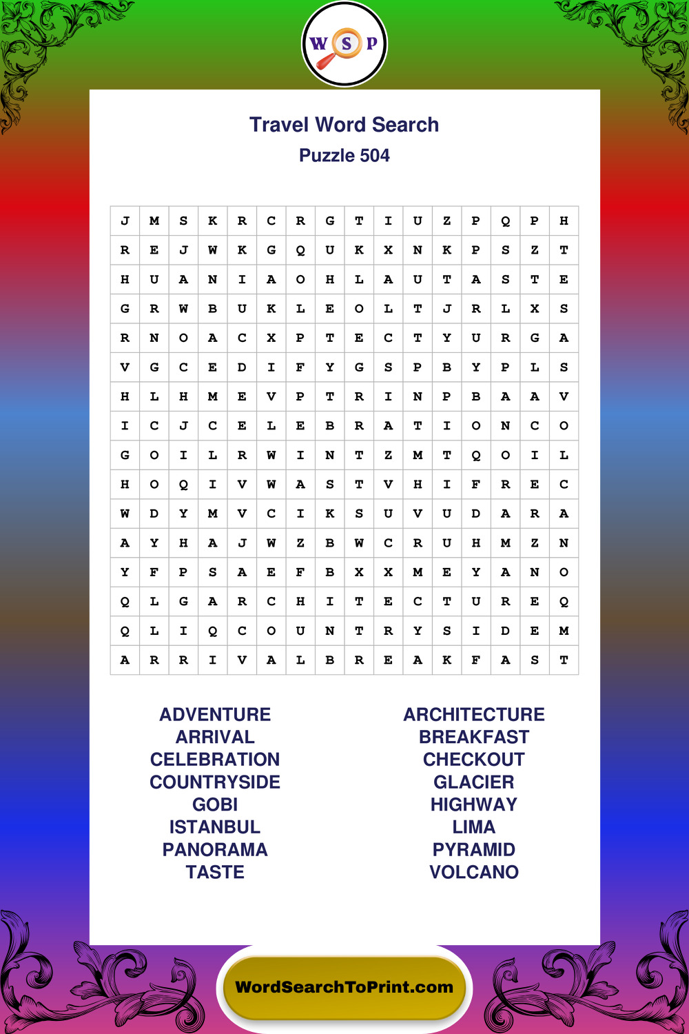 Enjoy these free large print Travel wordsearches designed for easy reading and relaxed puzzle solving. Perfect for teens, adults, and seniors.