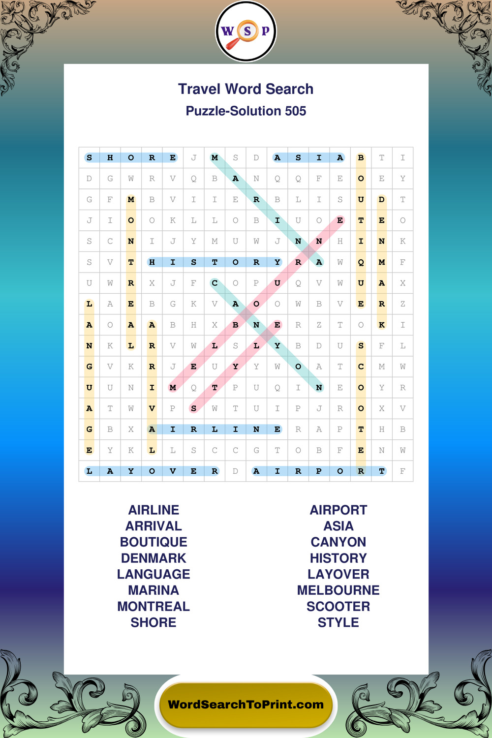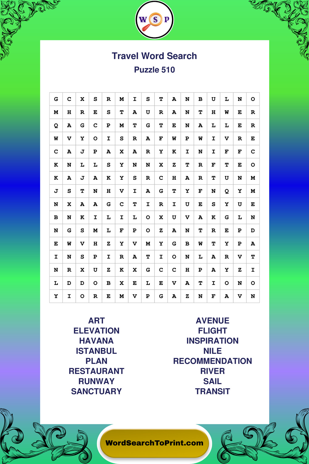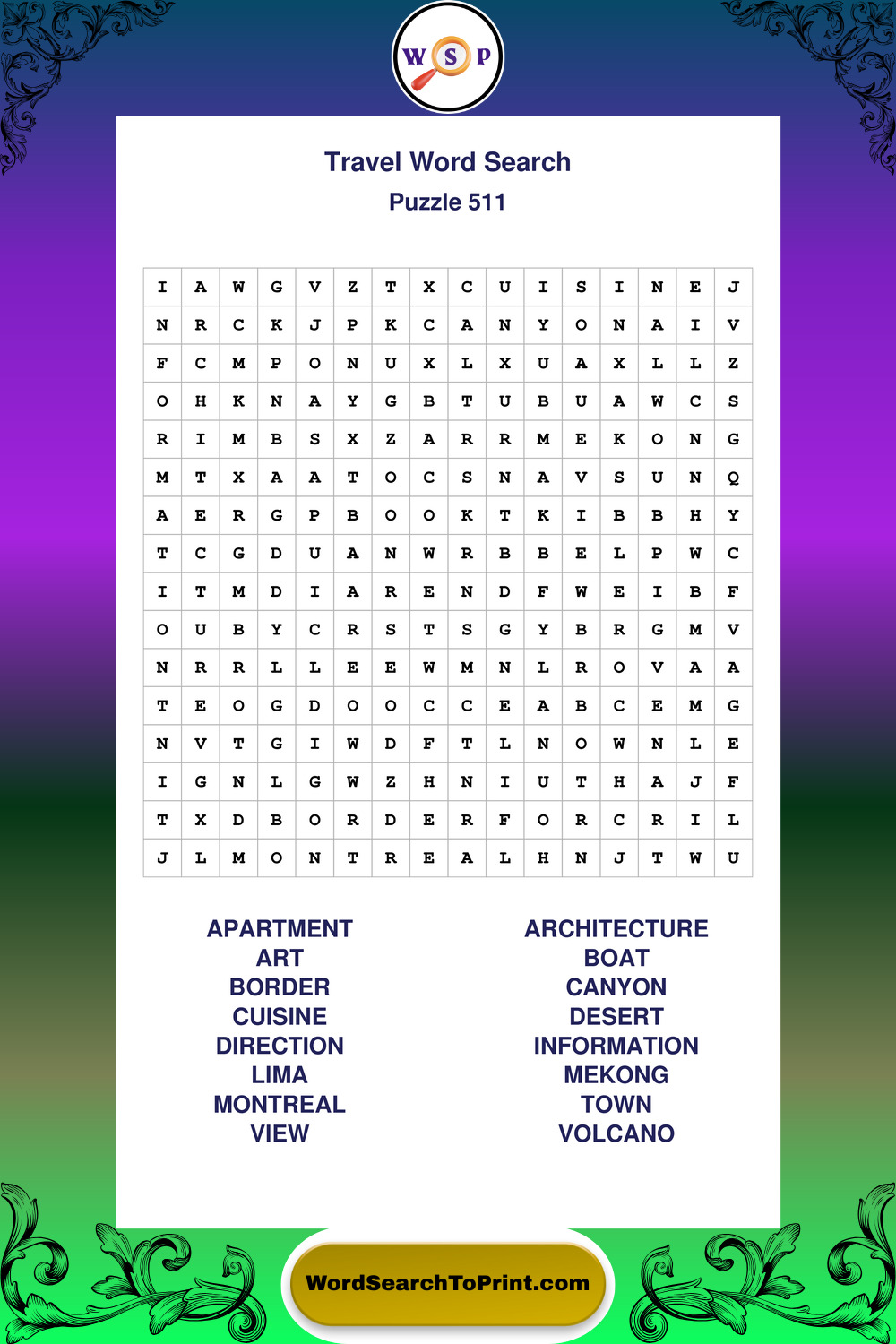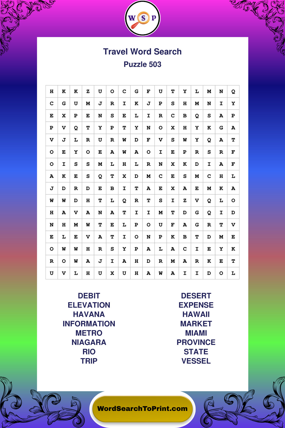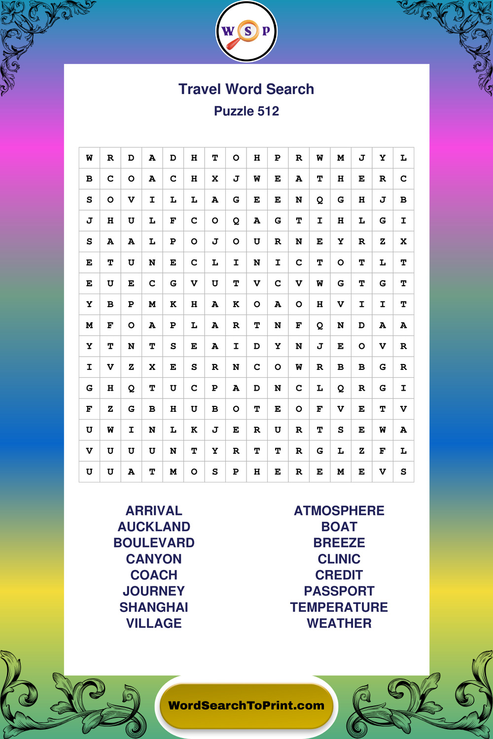 Enjoy these free large print Travel wordsearches designed for easy reading and relaxed puzzle solving. Perfect for teens, adults, and seniors.