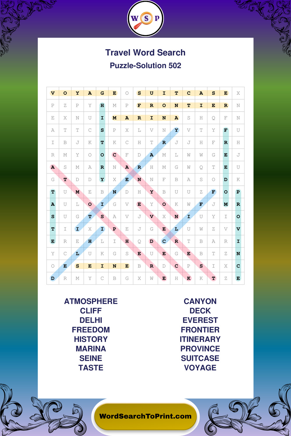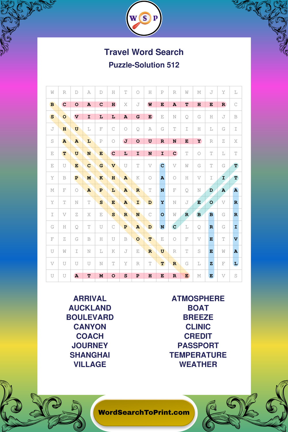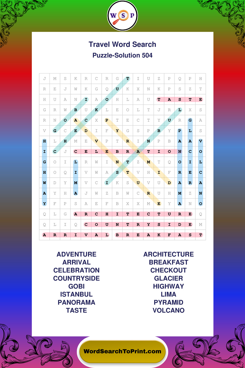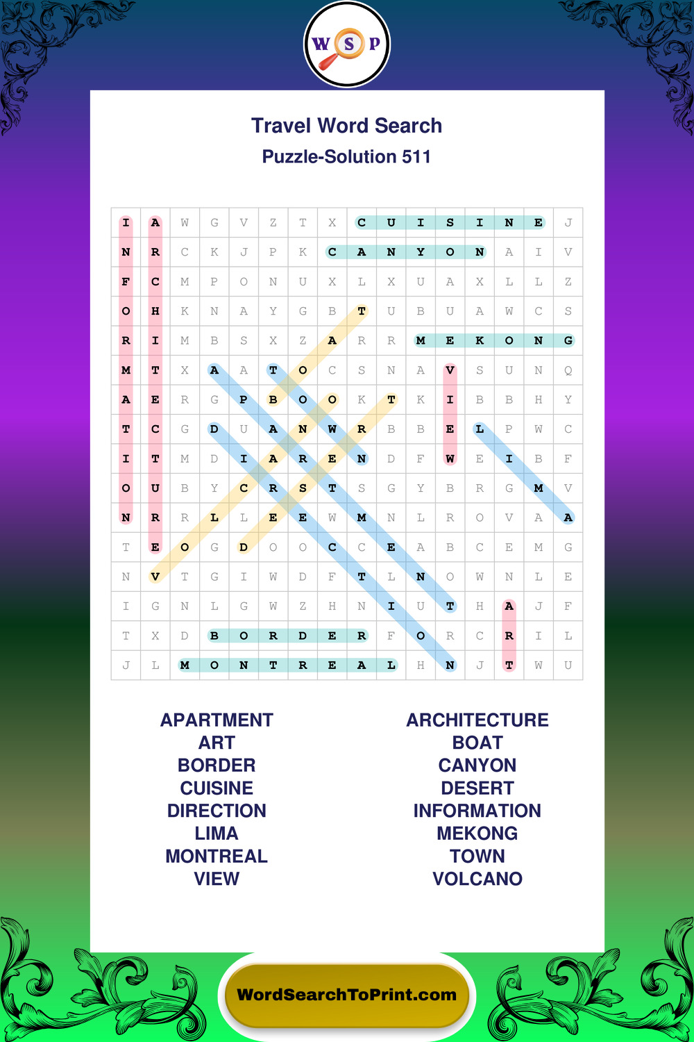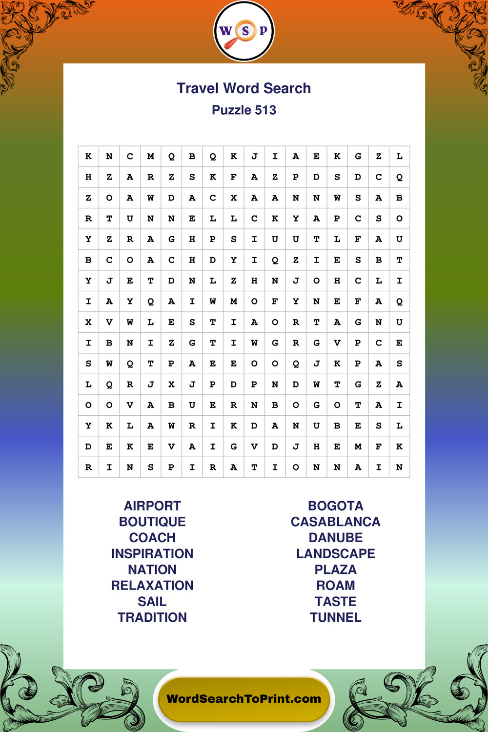 Enjoy these free large print Travel wordsearches designed for easy reading and relaxed puzzle solving. Perfect for teens, adults, and seniors.