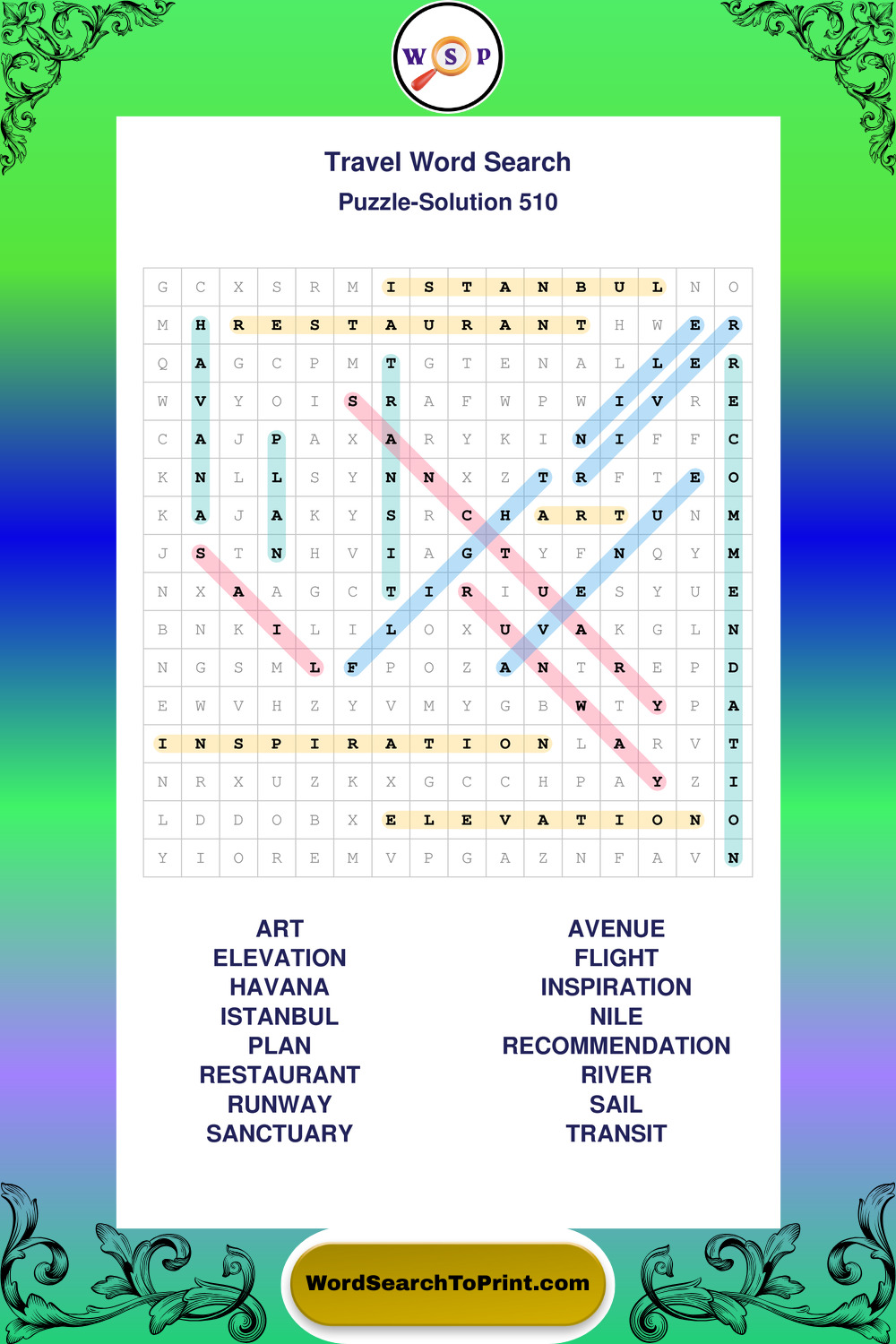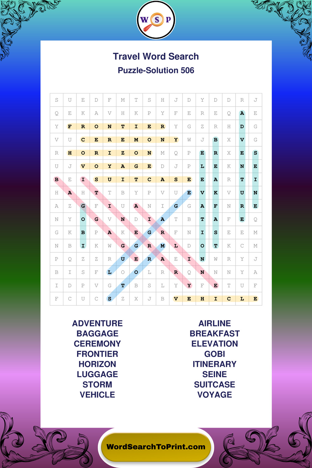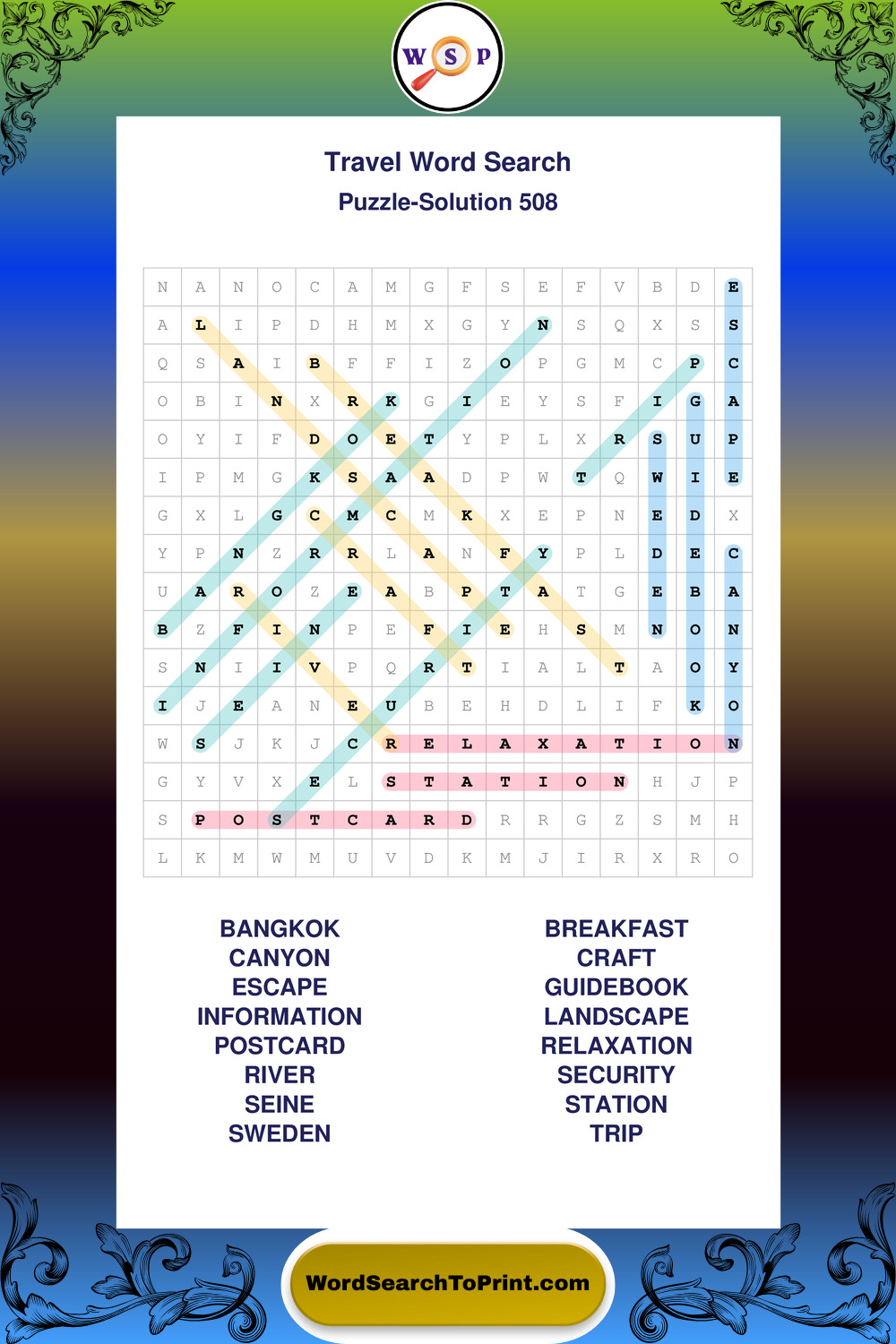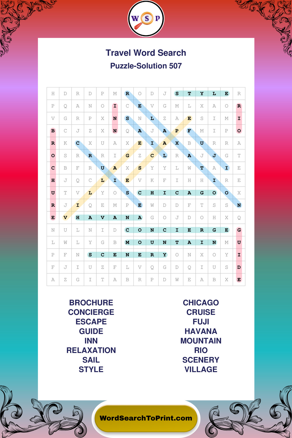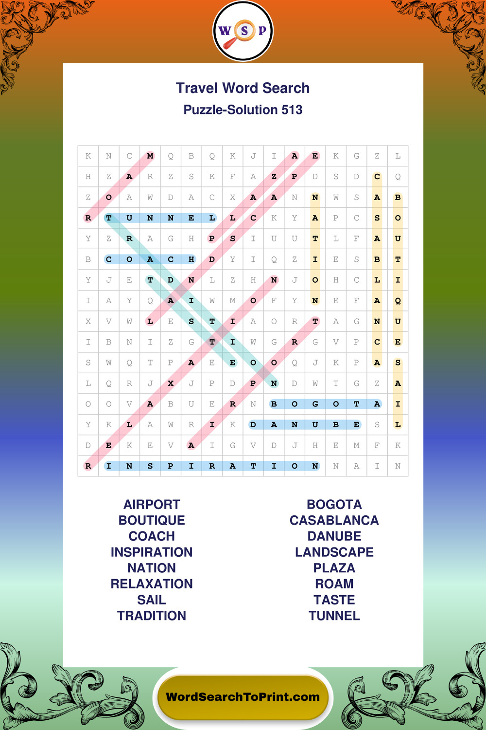 Enjoy these free large print Travel wordsearches designed for easy reading and relaxed puzzle solving. Perfect for teens, adults, and seniors.